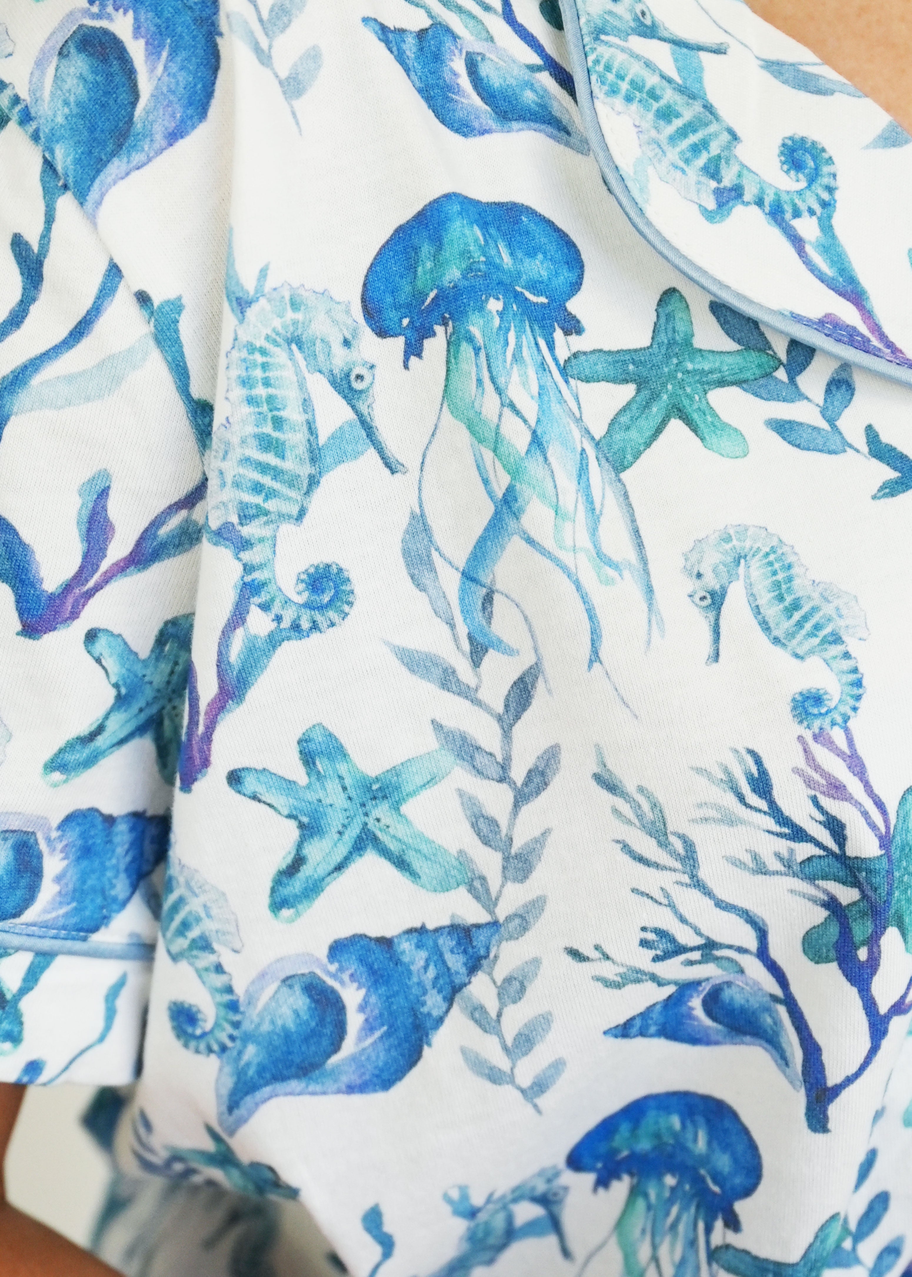 Just keep swimming with our whimsical Sea Life Cotton Pyjamas. Beautifully detailed with deep pockets, adorable buttons, and an extra stretchy drawstring waistband for most comfortable sleep experience.