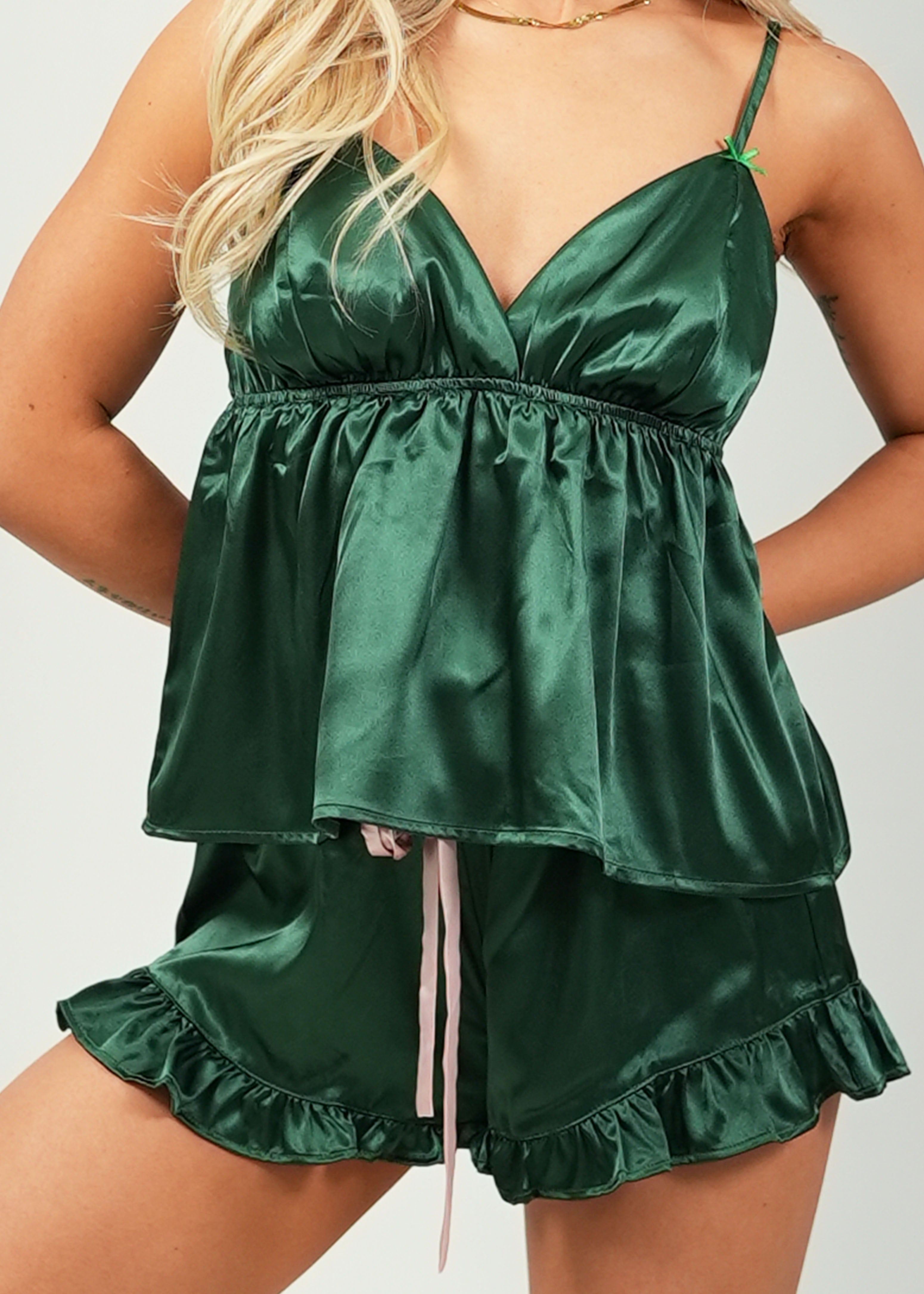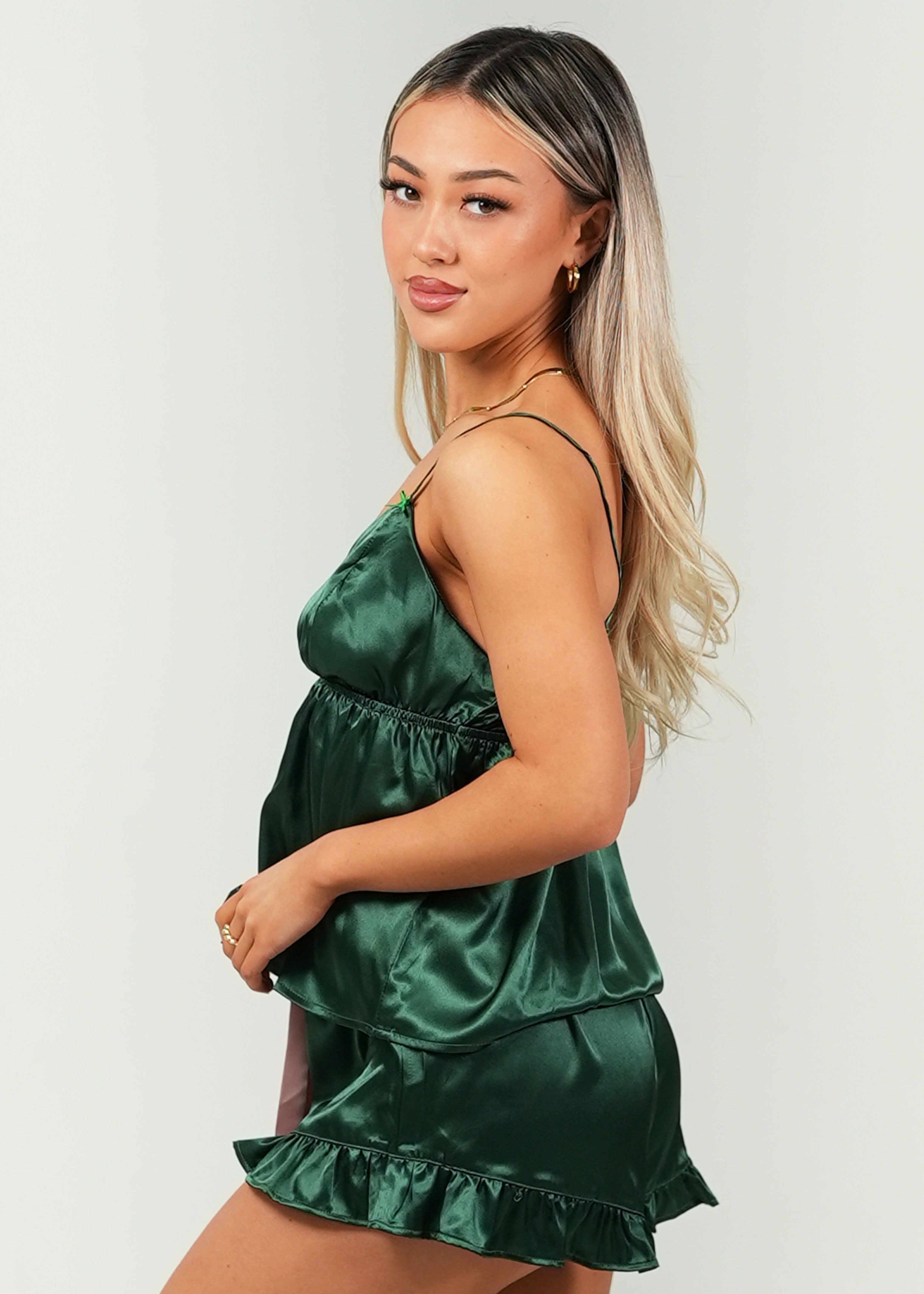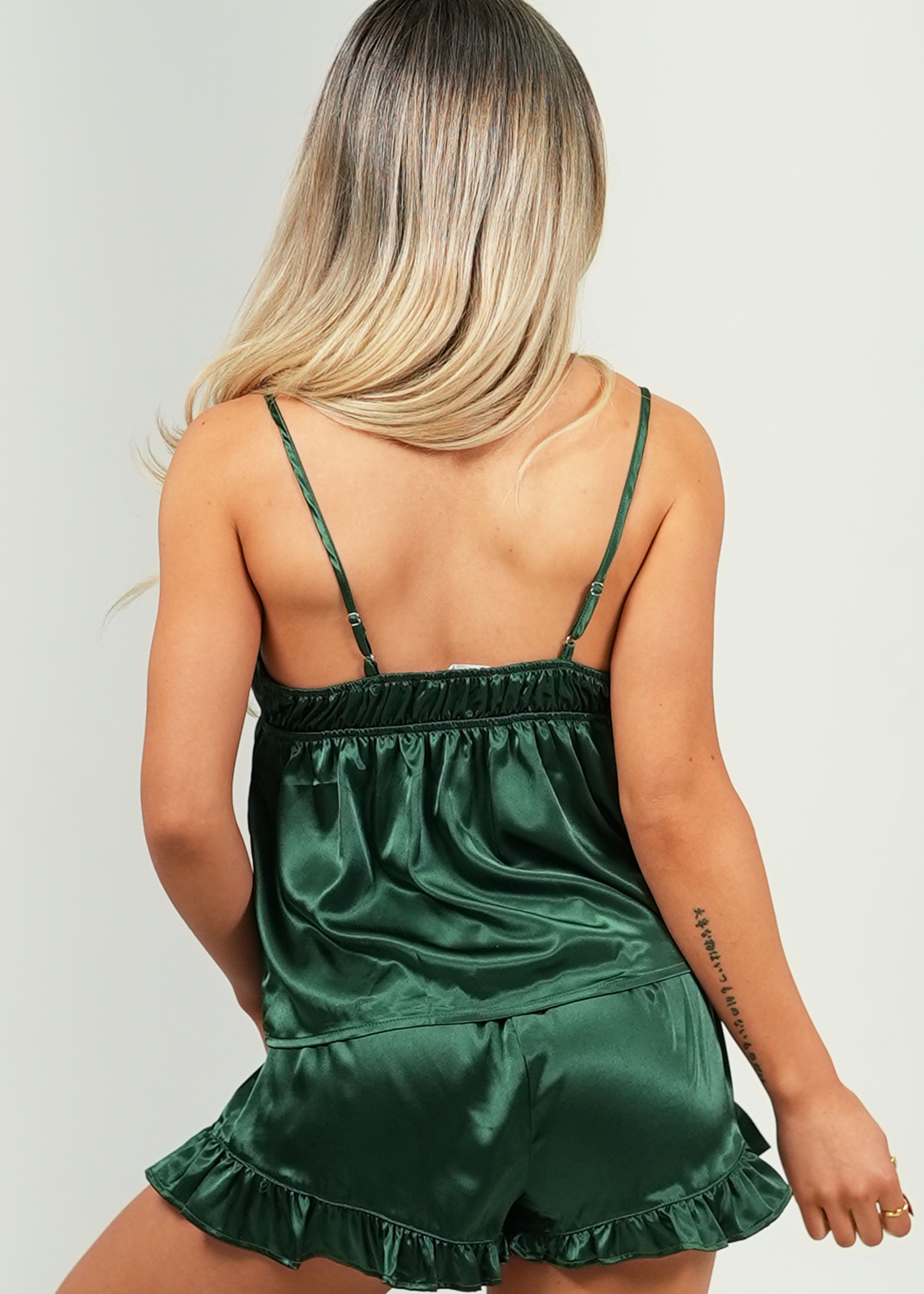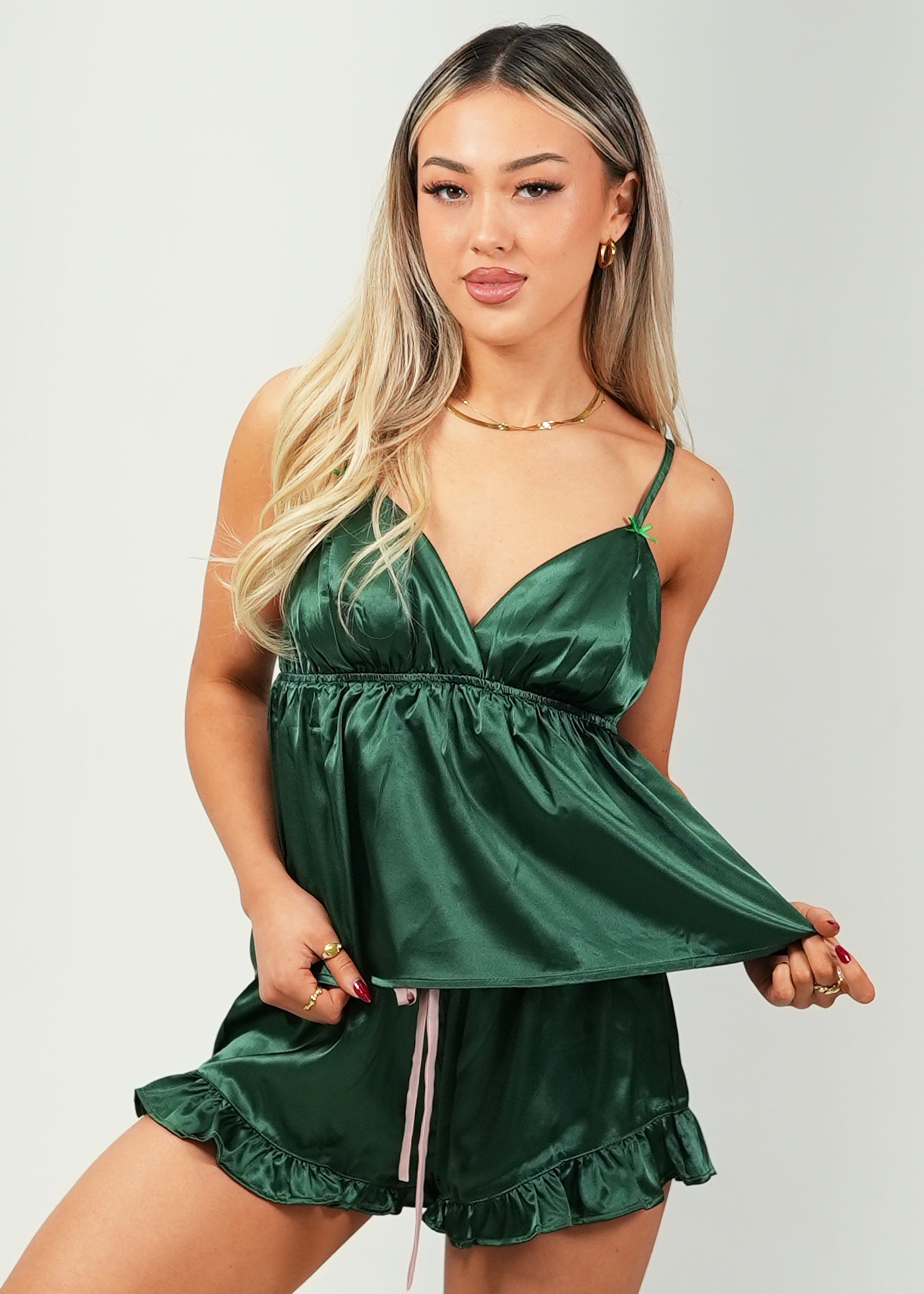 Add a touch of summer goodness to your bedtime with our gorgeous Satin Camisole Pyjamas. Fashioned with the cutest frill detailed shorts, adjustable straps and flattering neckline, you are sure to have the sweetest sleep!