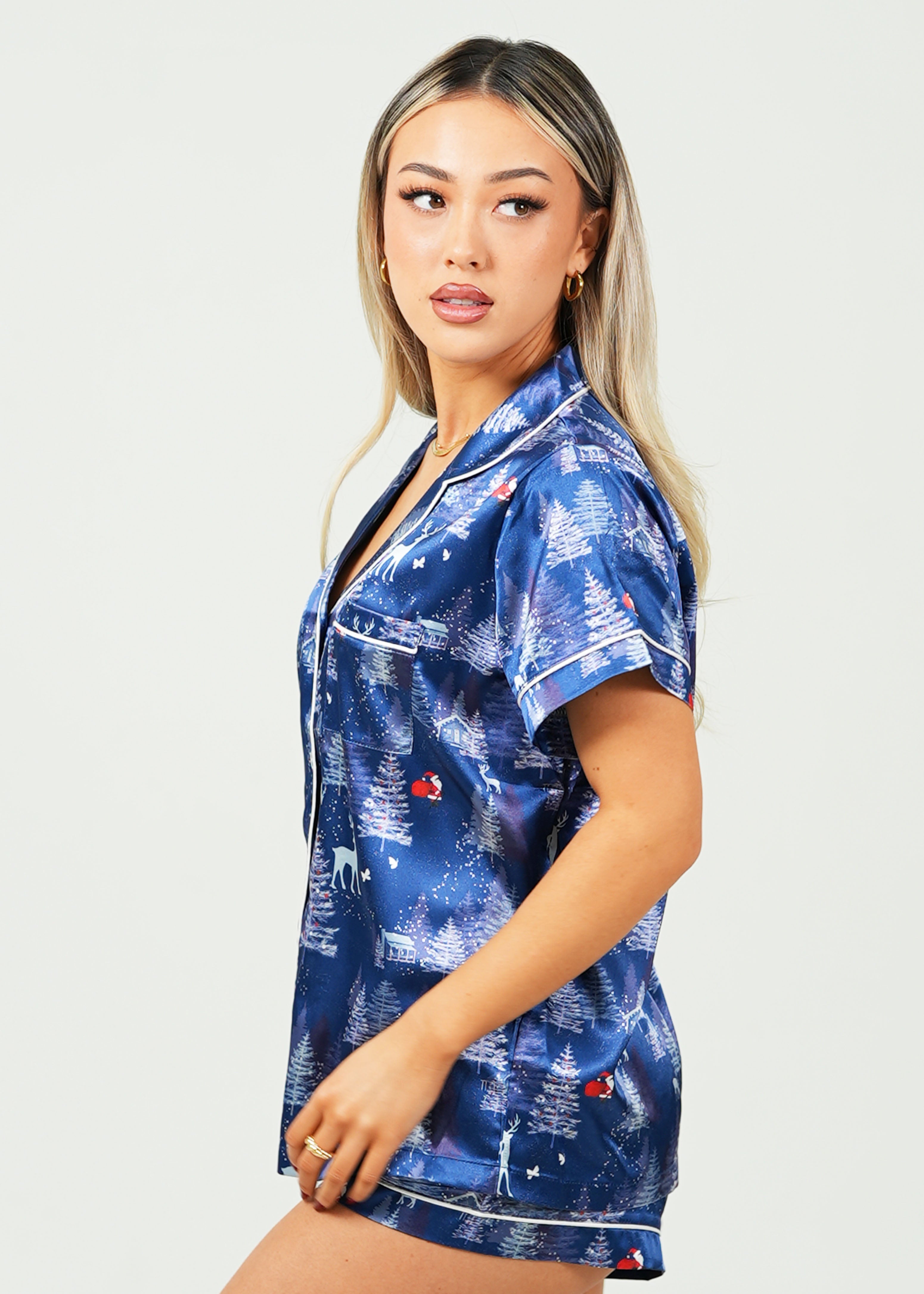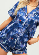 Snowy Night Christmas Satin Short Pyjama Set Womens