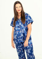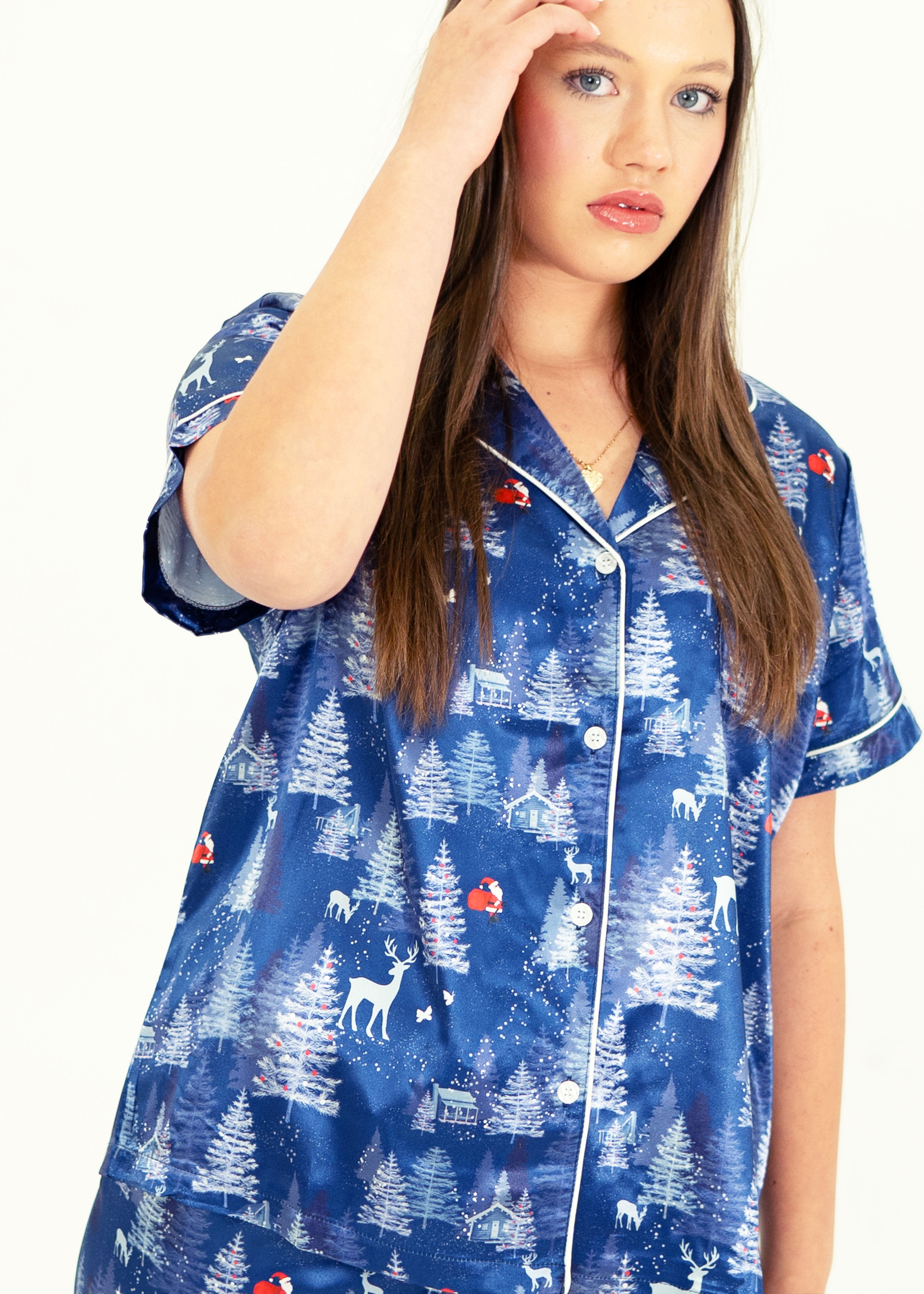 Snowy Night Satin Short Top/ Long Pants Pyjama Set