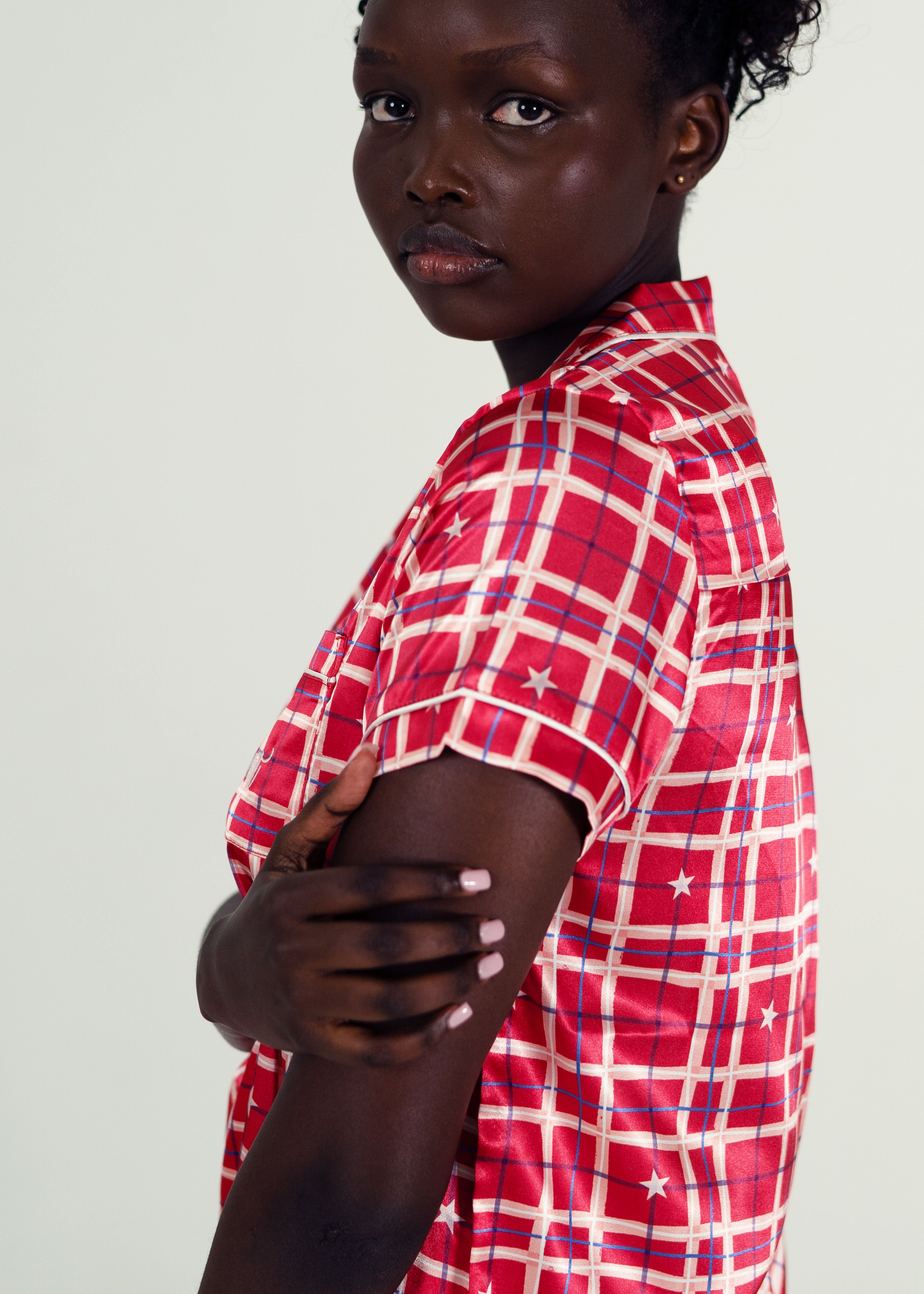 Add a touch of comfy to your bedtime with our gorgeous Starry Tartan Red Satin Night Shirts. Beautifully detailed, you are sure to have the sweetest sleep!