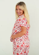 Sweet Christmas White Jersey Knit Cotton - Short Top/Long Pants PJ Set