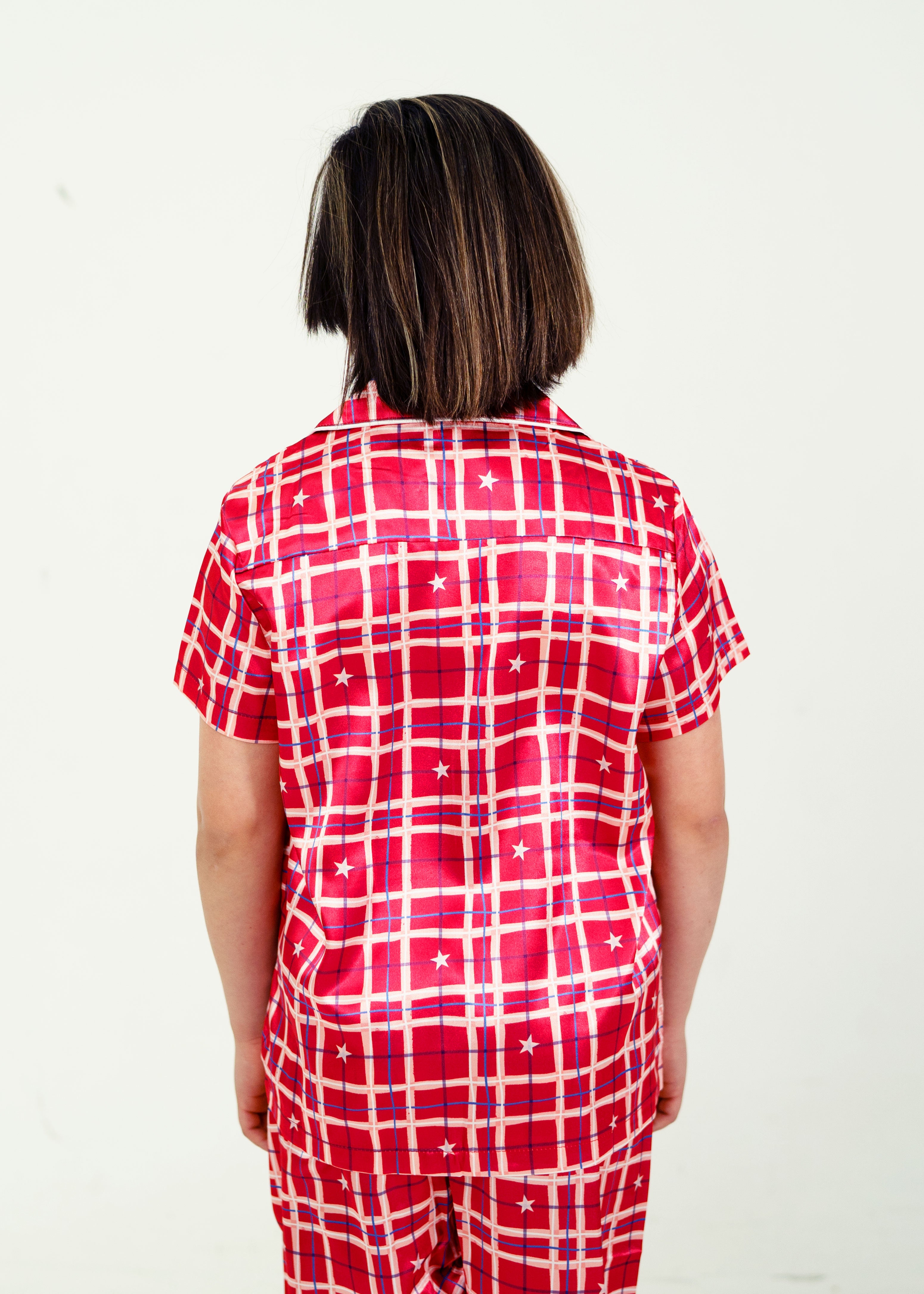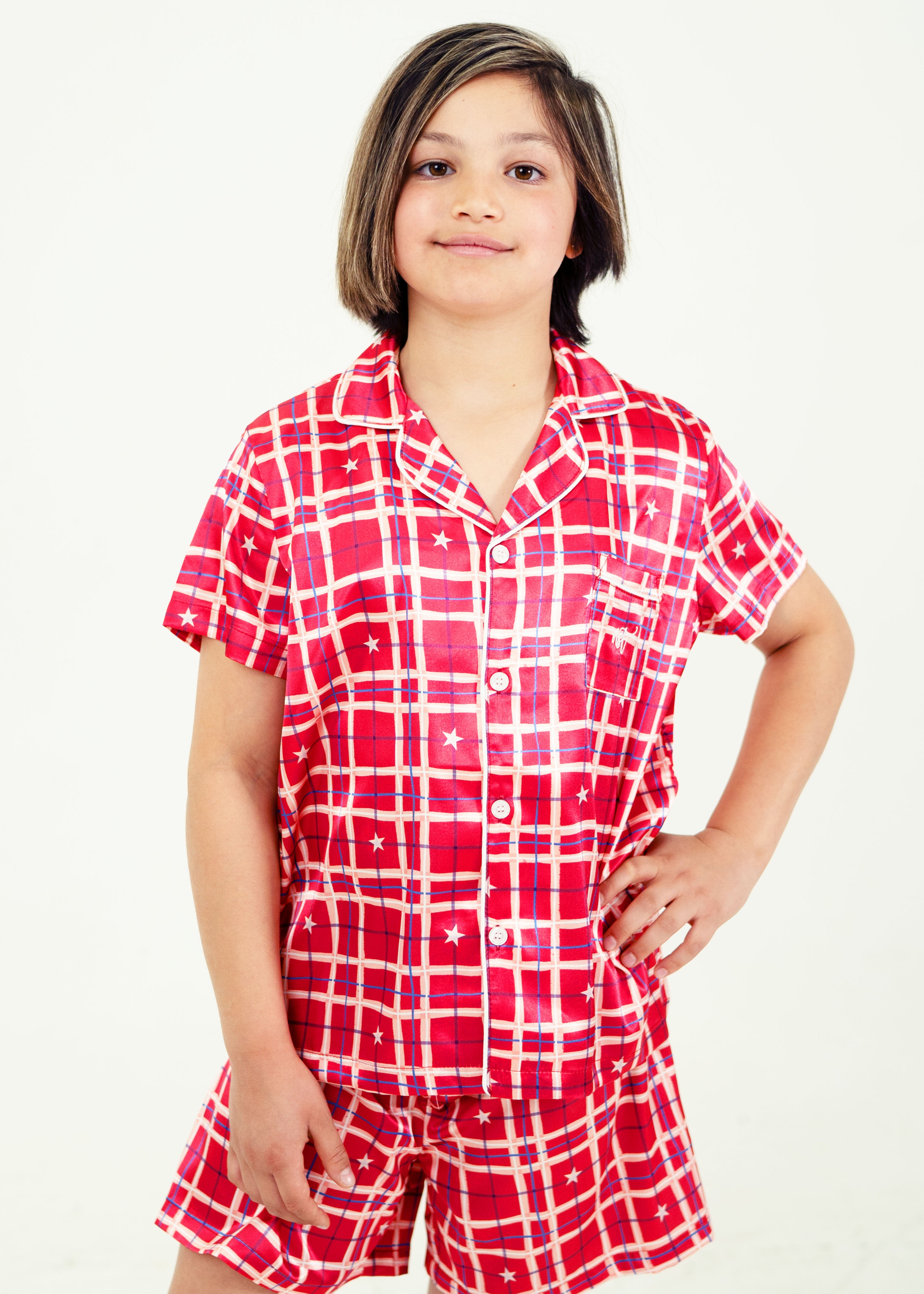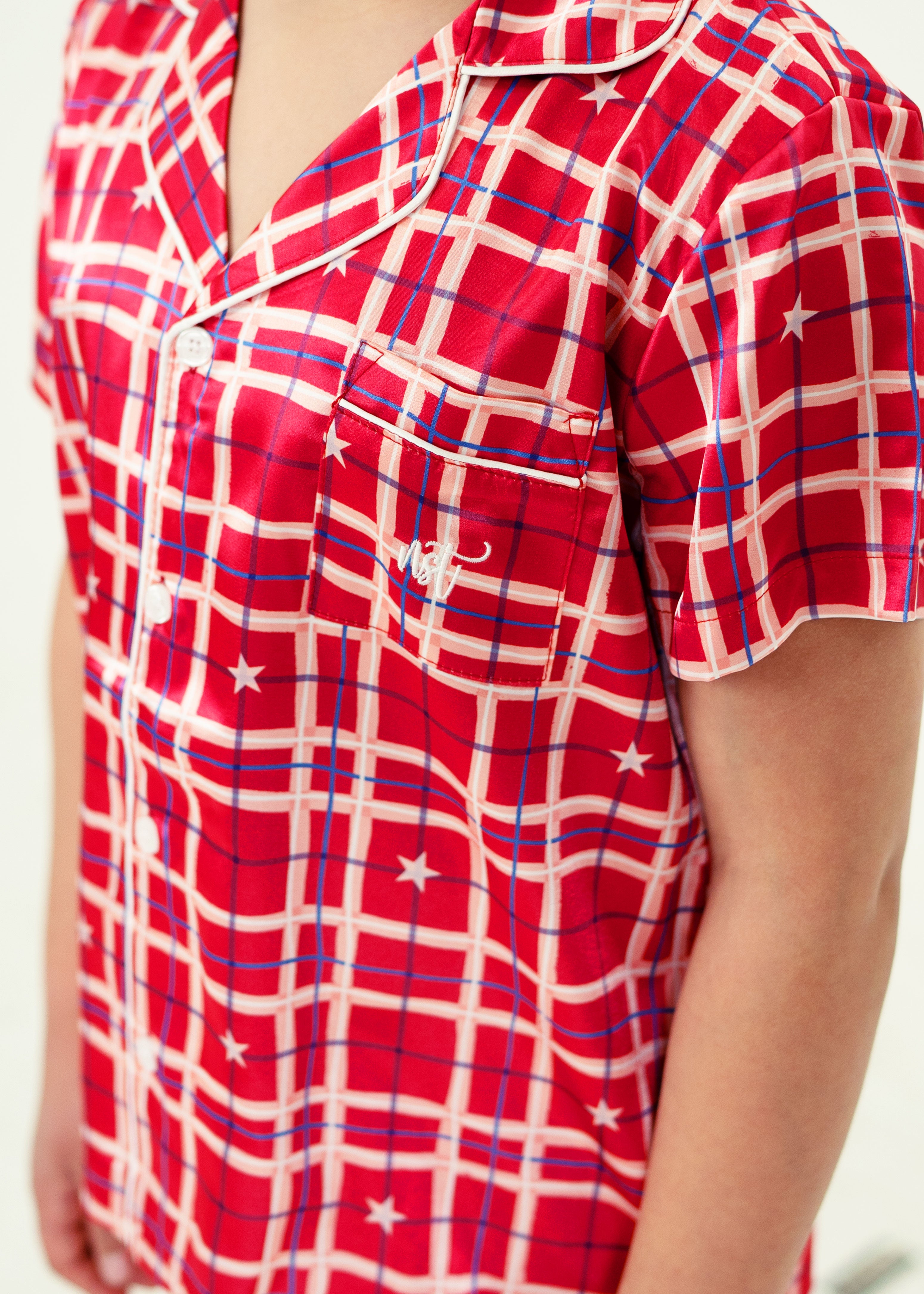 Boys Starry Tartan Red Satin Short Pyjama Set