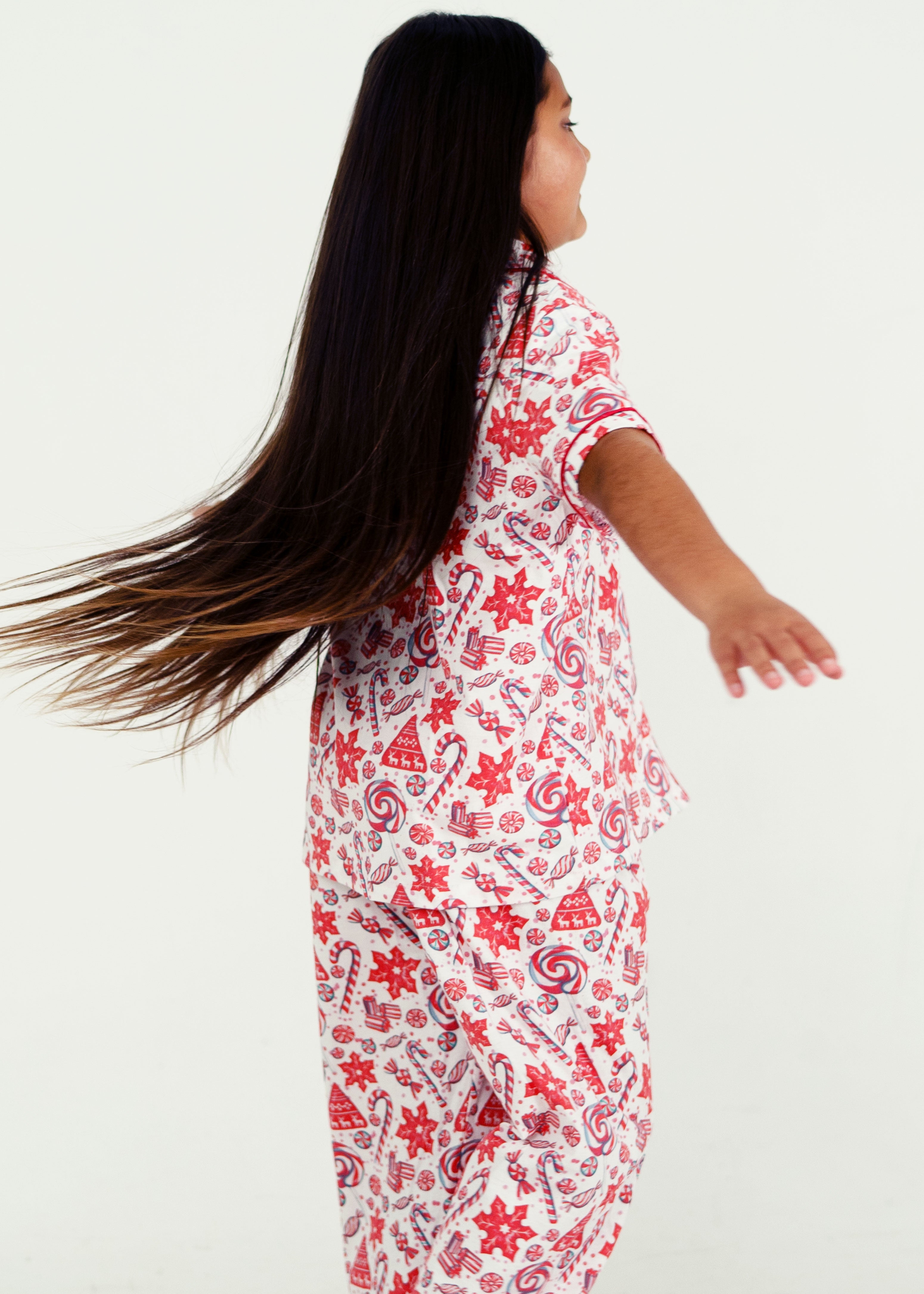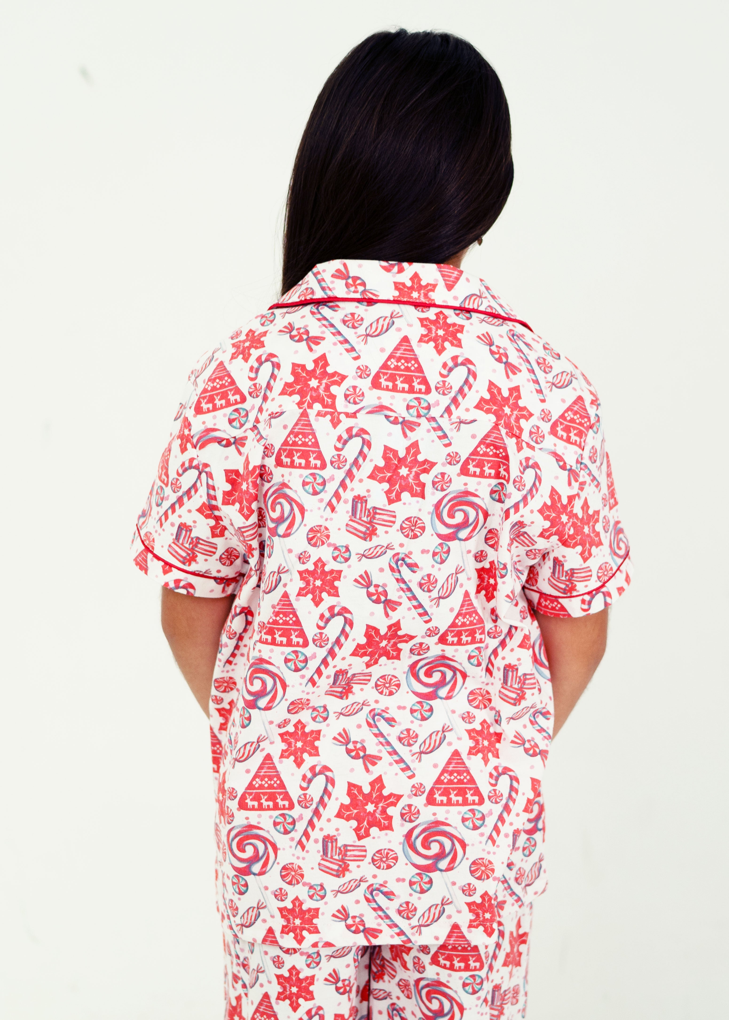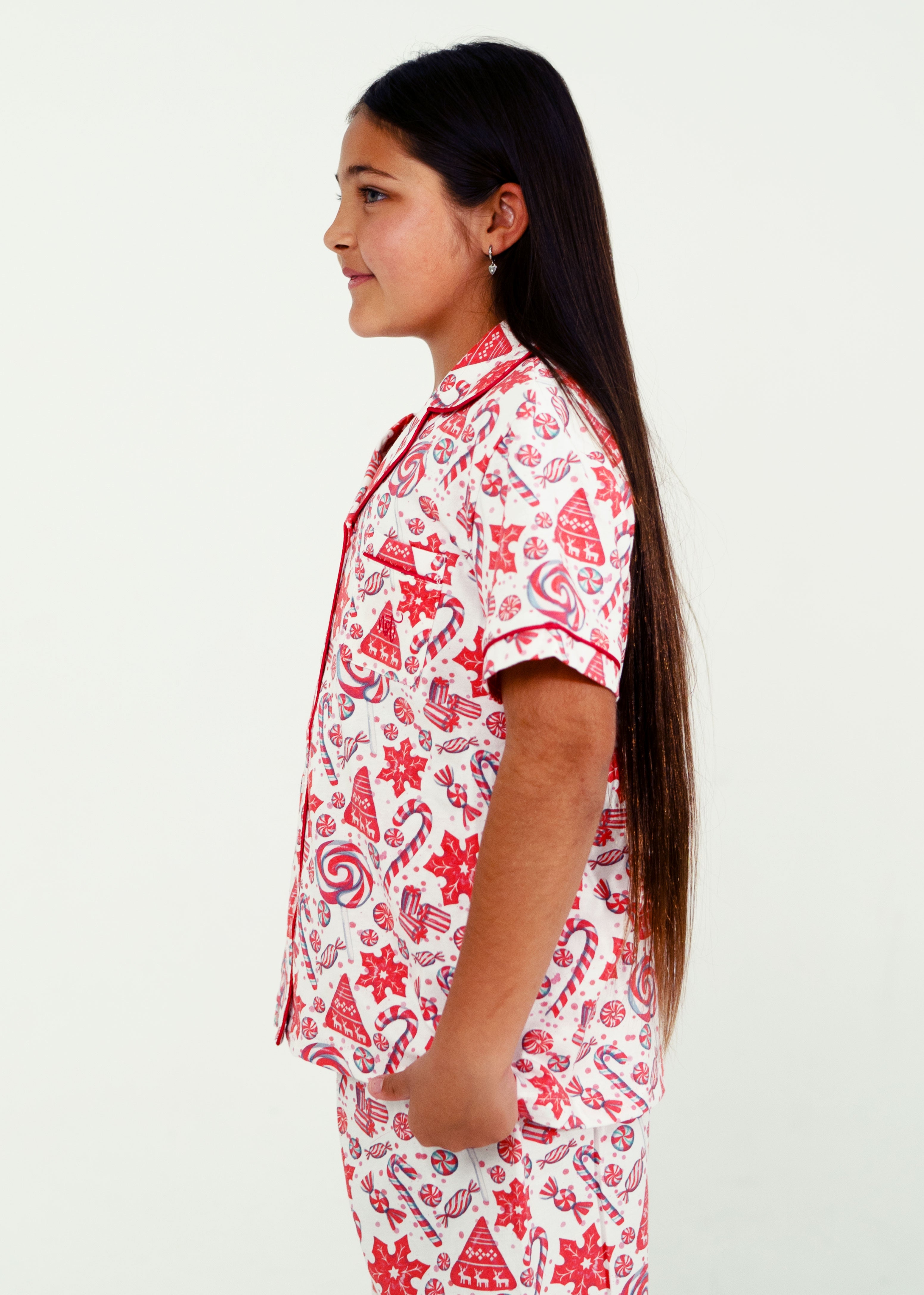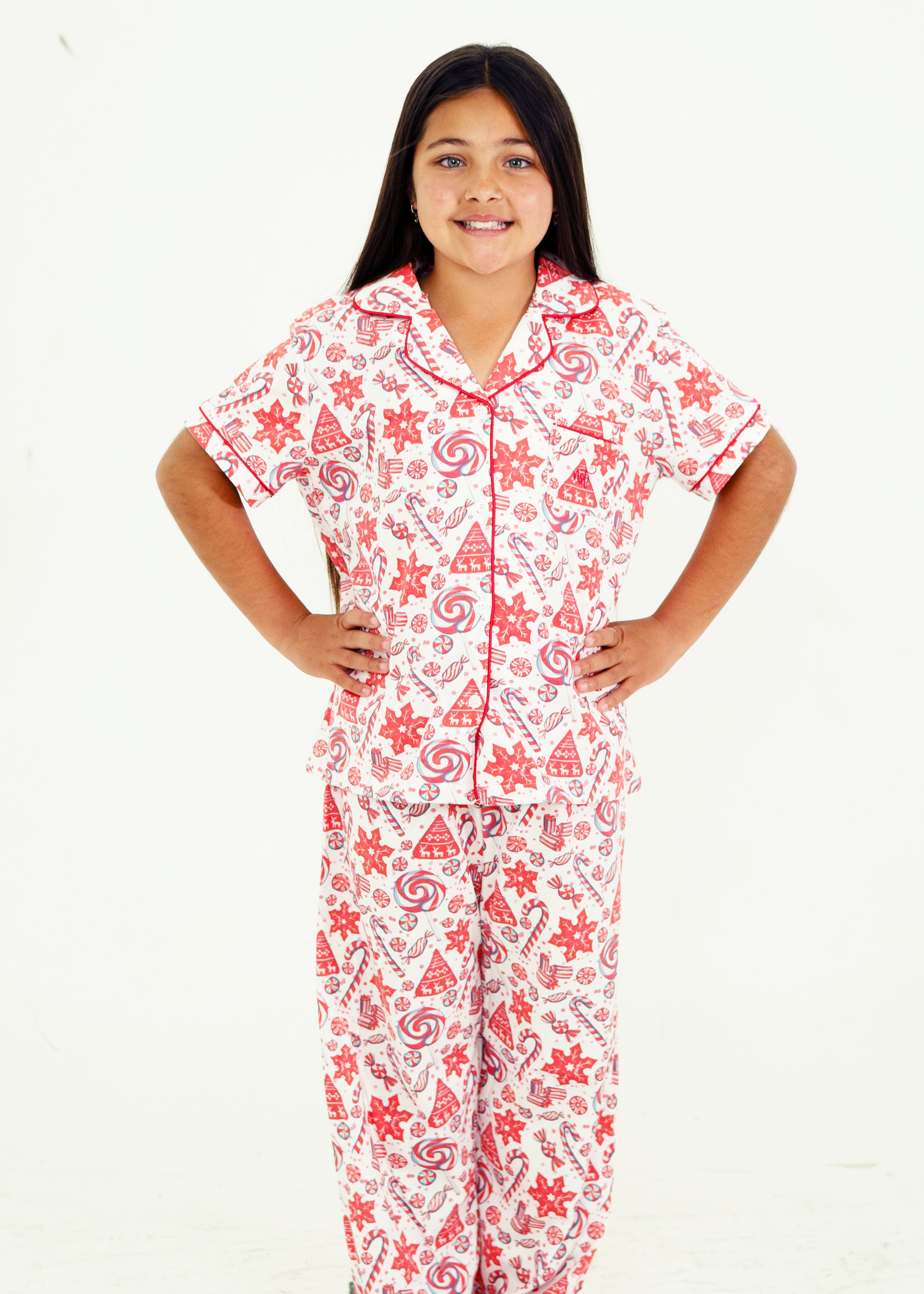 Girls - Sweet Christmas White Jersey Knit Cotton - Short Top/Long Pants PJ Set