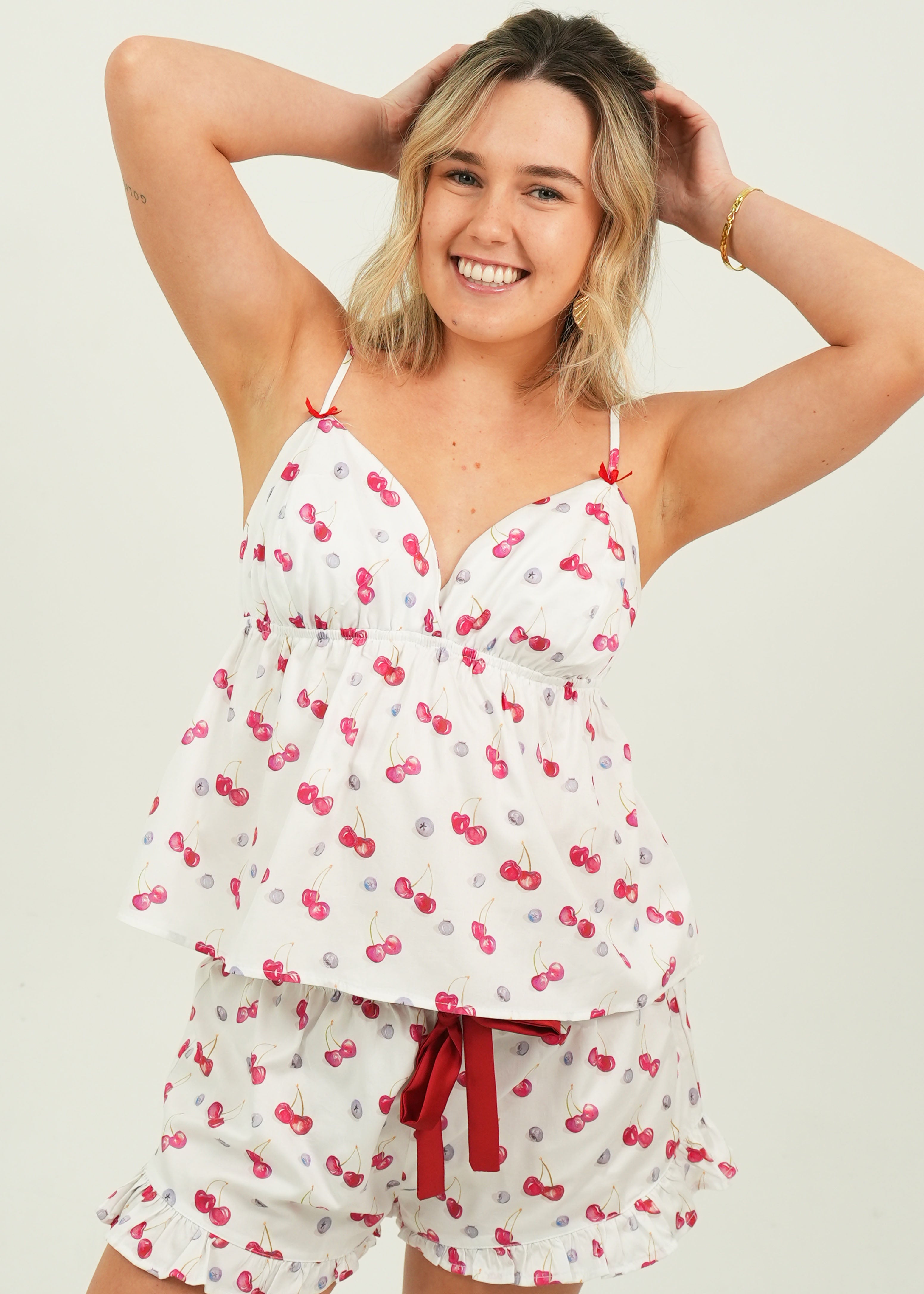 Add a touch of goodness to your bedtime with our gorgeous Cotton Camisole Pyjamas. Fashioned with the cutest frill detailed shorts, adjustable straps and flattering neckline, you are sure to have the sweetest sleep!