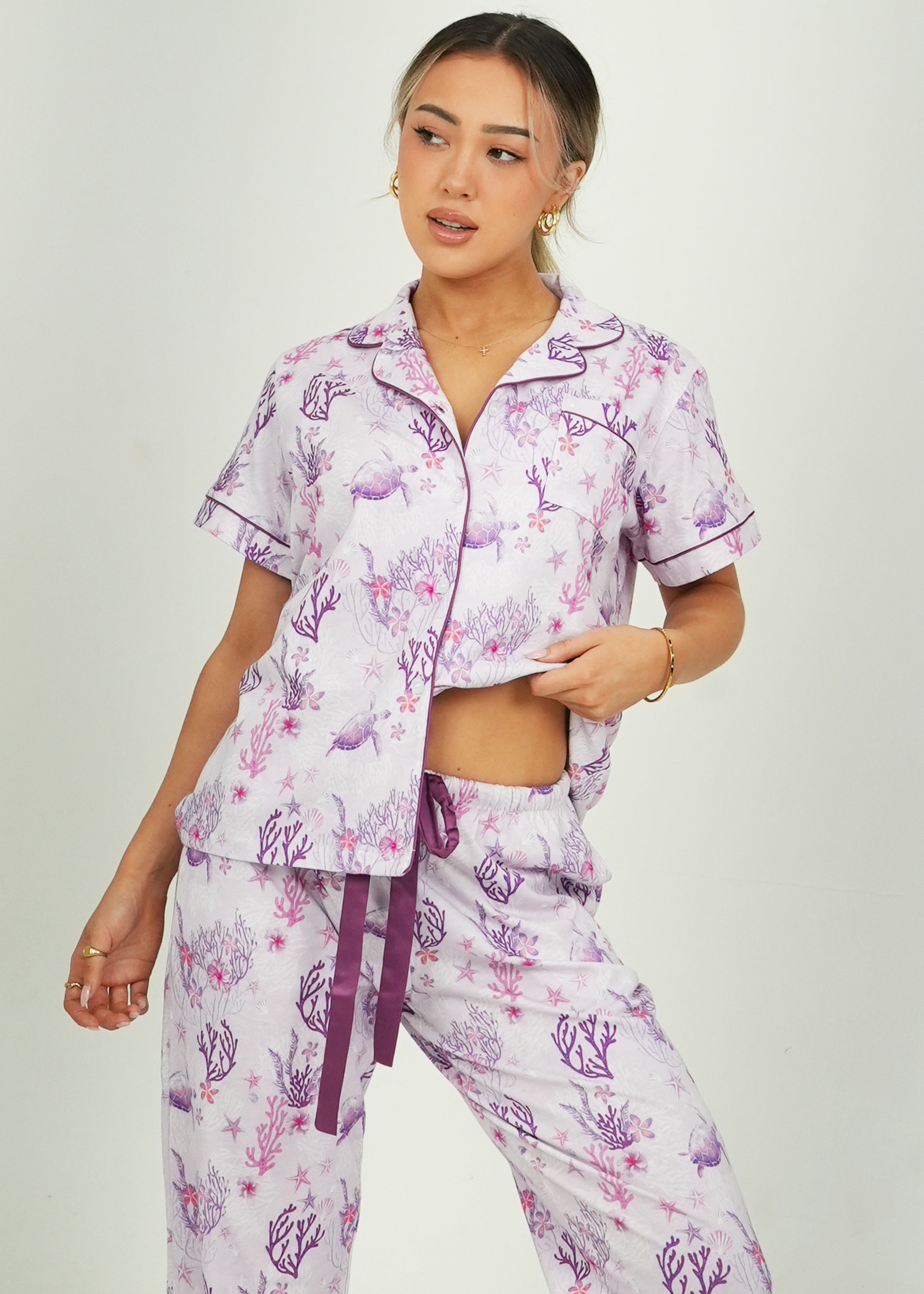 Lilac Garden Under the Sea Jersey Knit Cotton Short Top / Long Pants PJ Set
