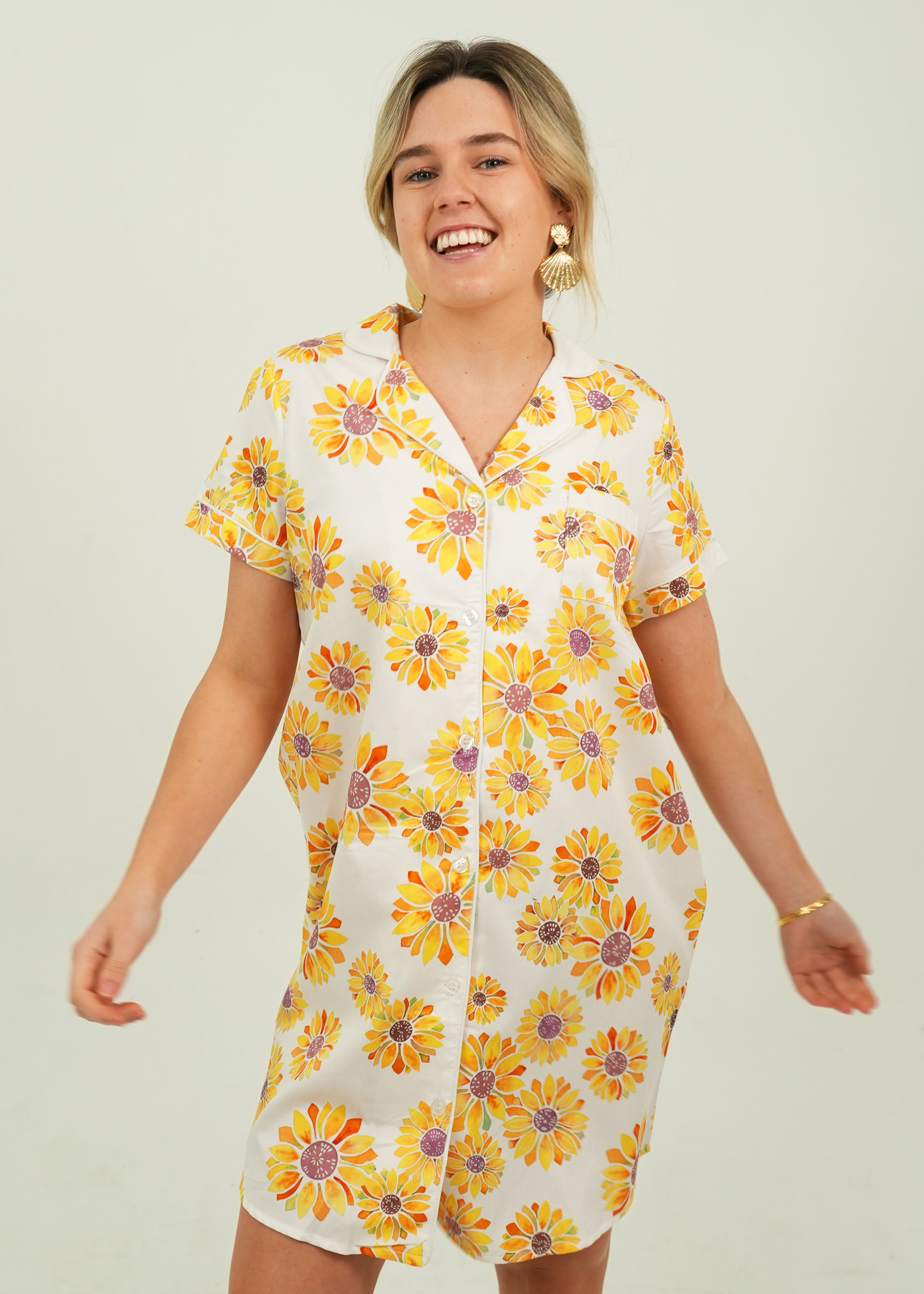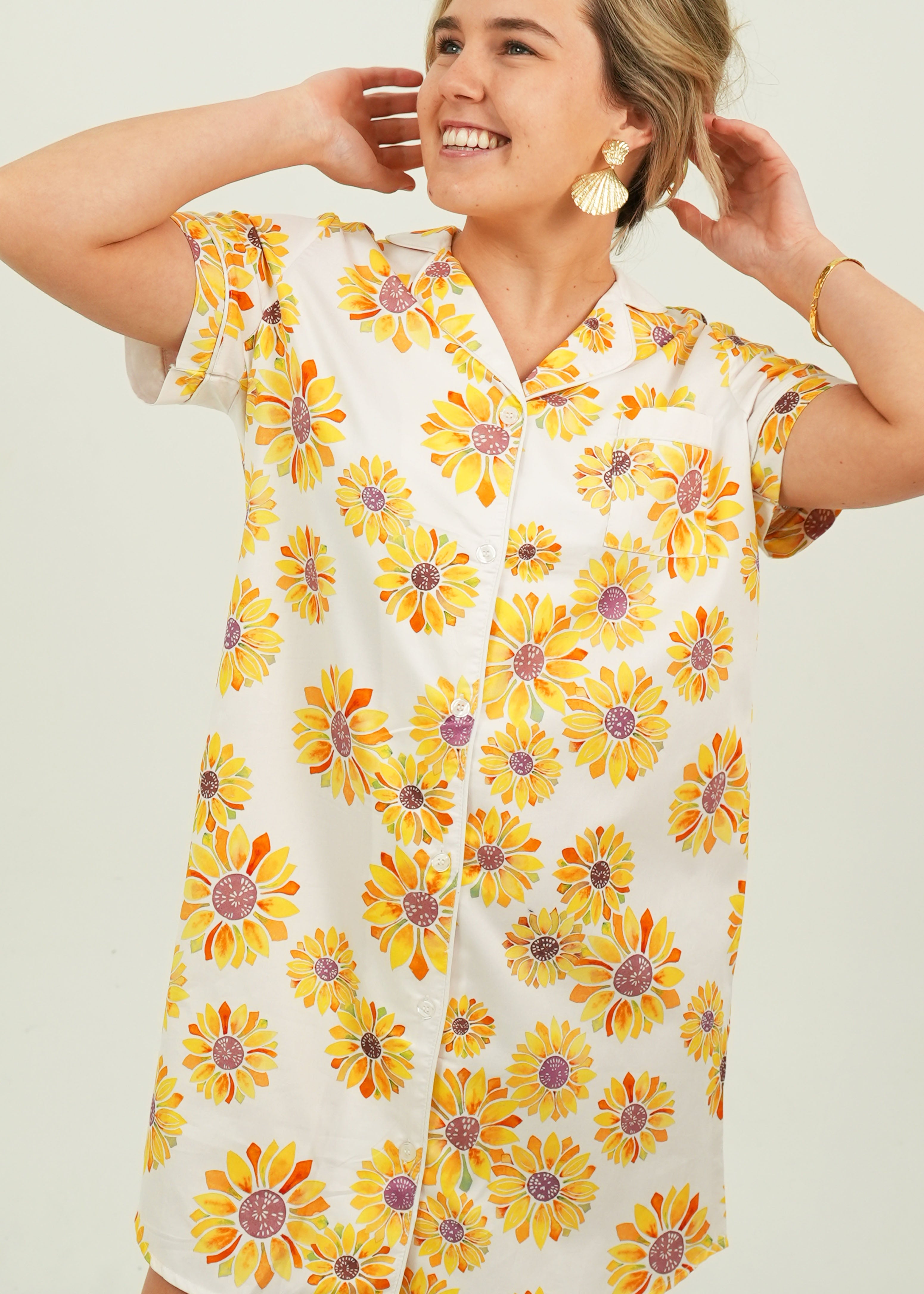 Keep sunshine in your pocket all year round with our gorgeous Sunflower Cotton Night Shirt. Lovingly detailed for the ultimate comfort experience.