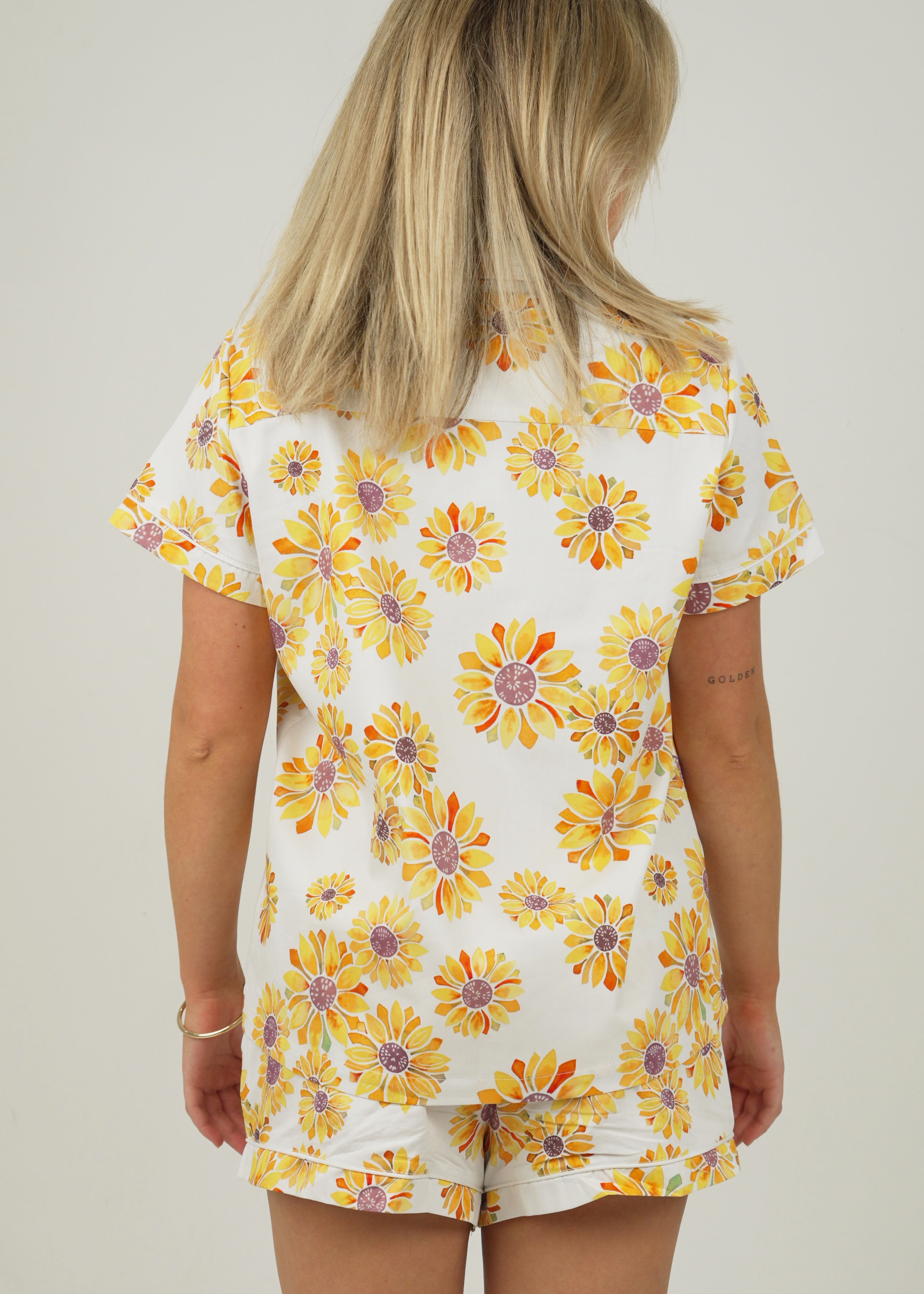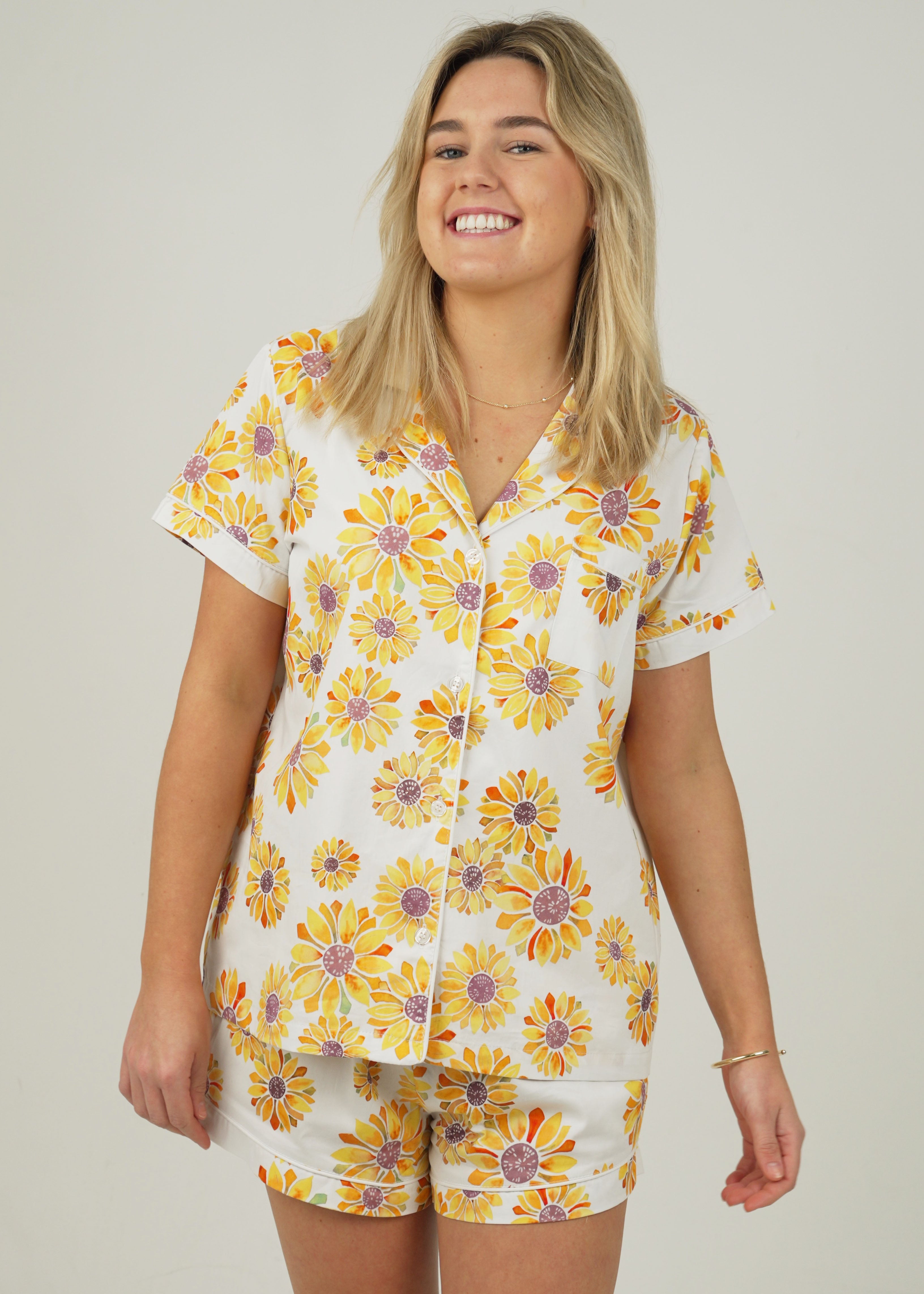 Keep sunshine in your pocket all year round with our gorgeous Sunflower Cotton Pyjamas. Lovingly detailed with deep pockets, adorable buttons, and an extra stretchy drawstring waistband for the ultimate comfort experience.