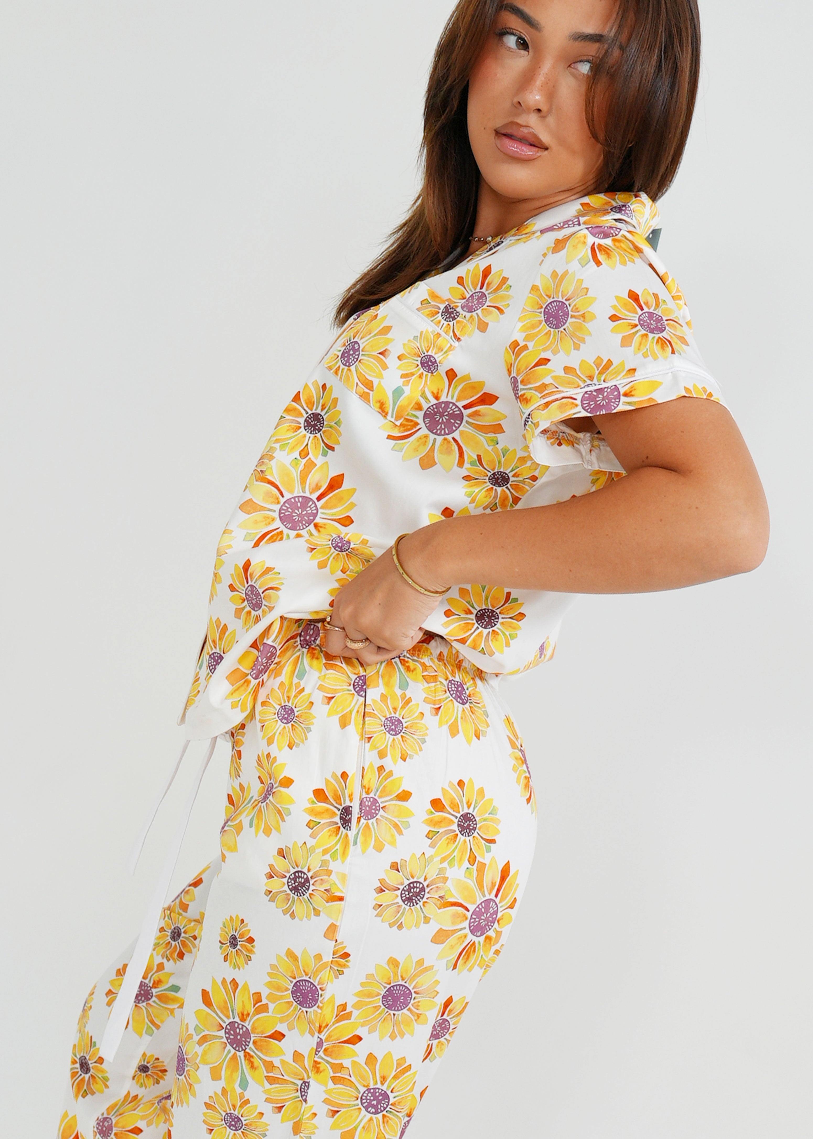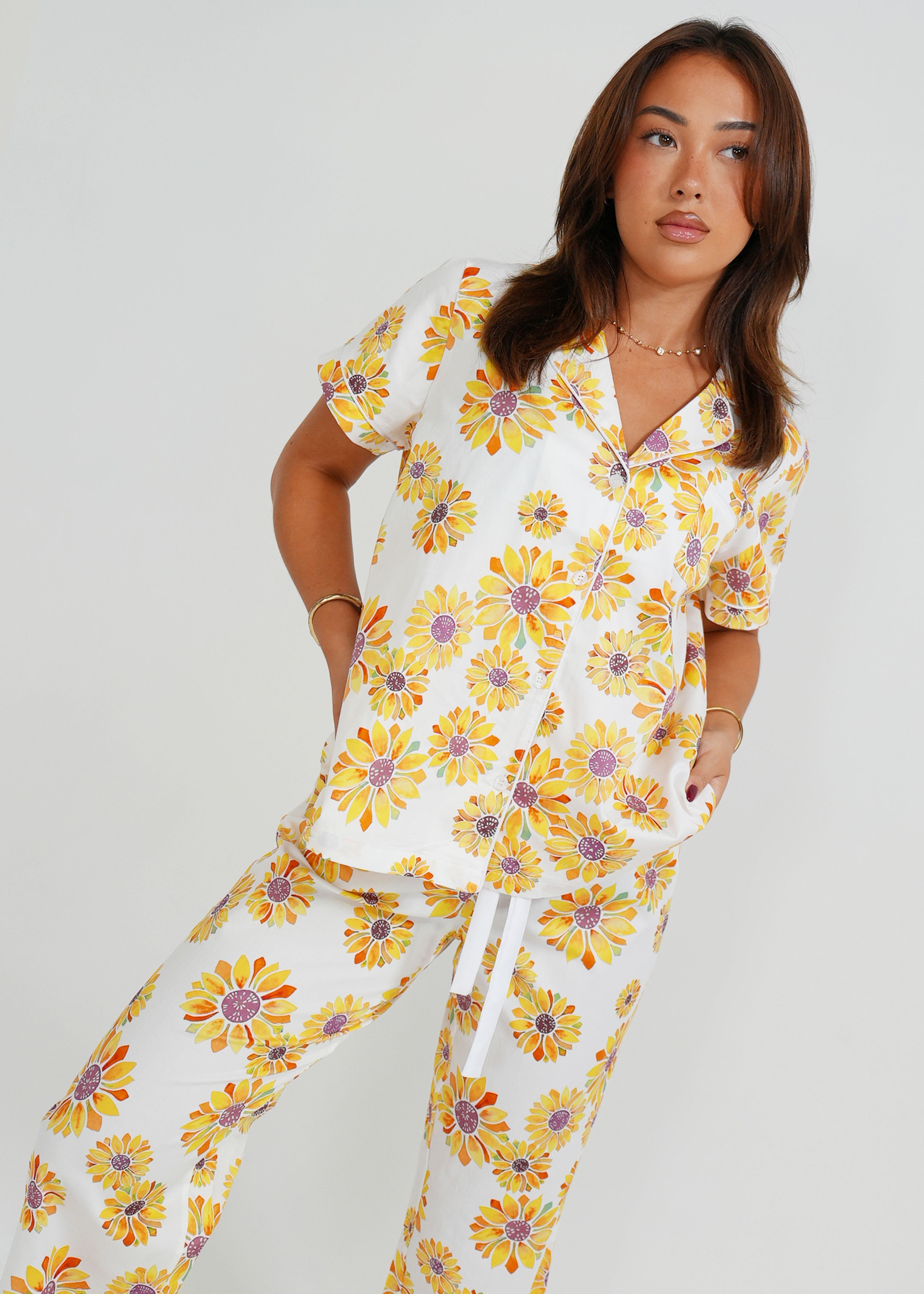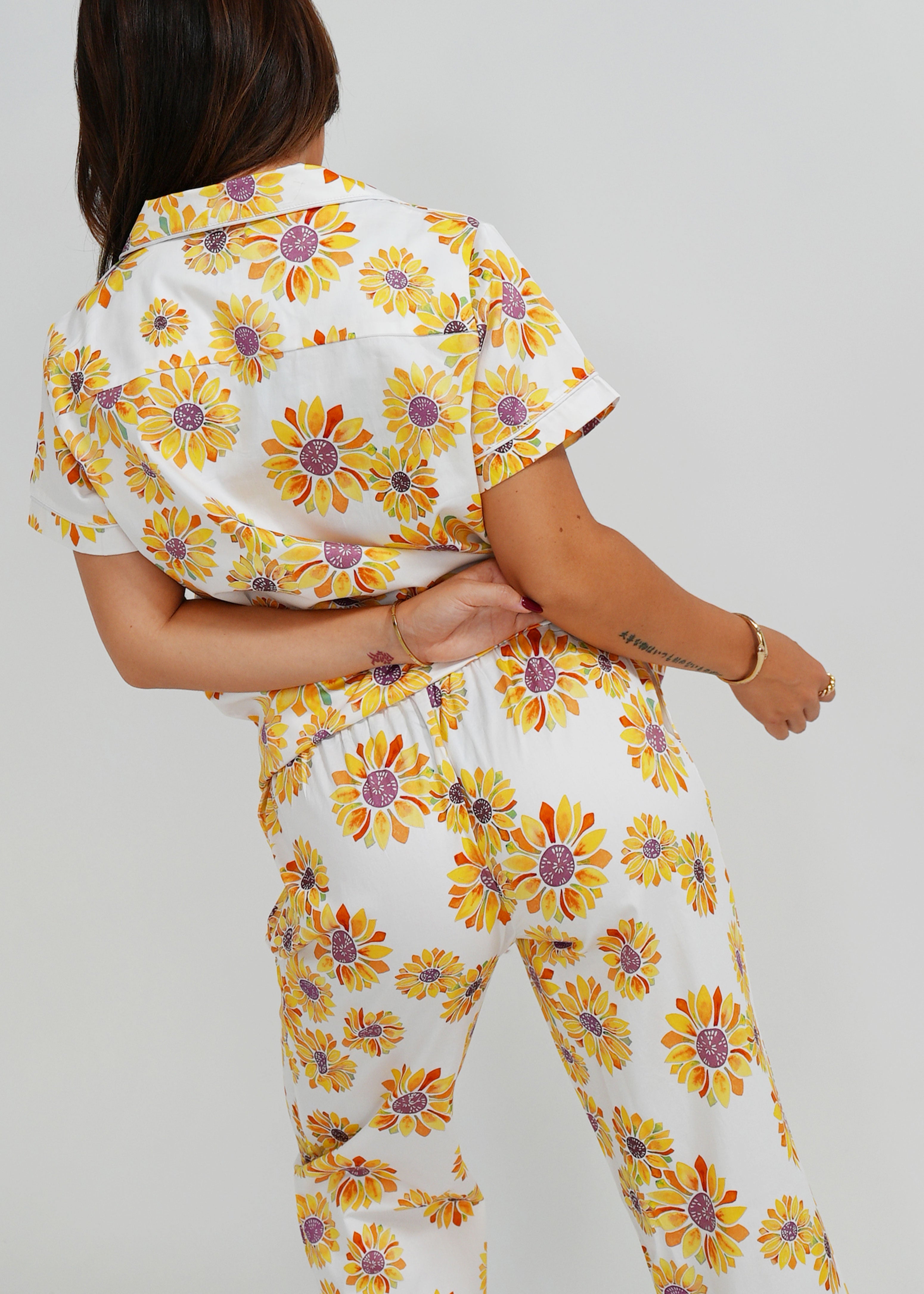 Keep sunshine in your pocket all year round with our gorgeous Sunflower Cotton Pyjamas. Lovingly detailed with deep pockets, adorable buttons, and an extra stretchy drawstring waistband for the ultimate comfort experience.