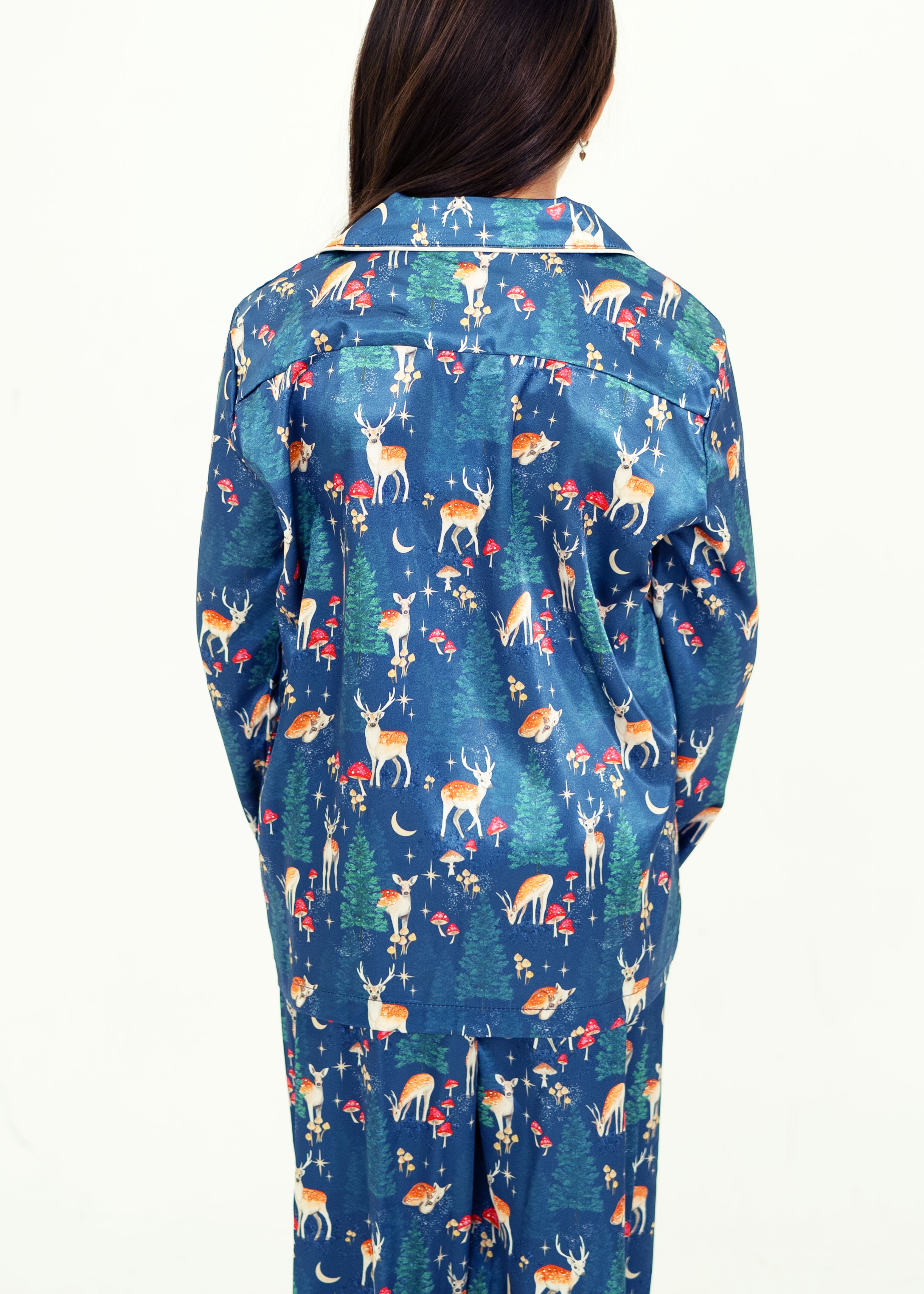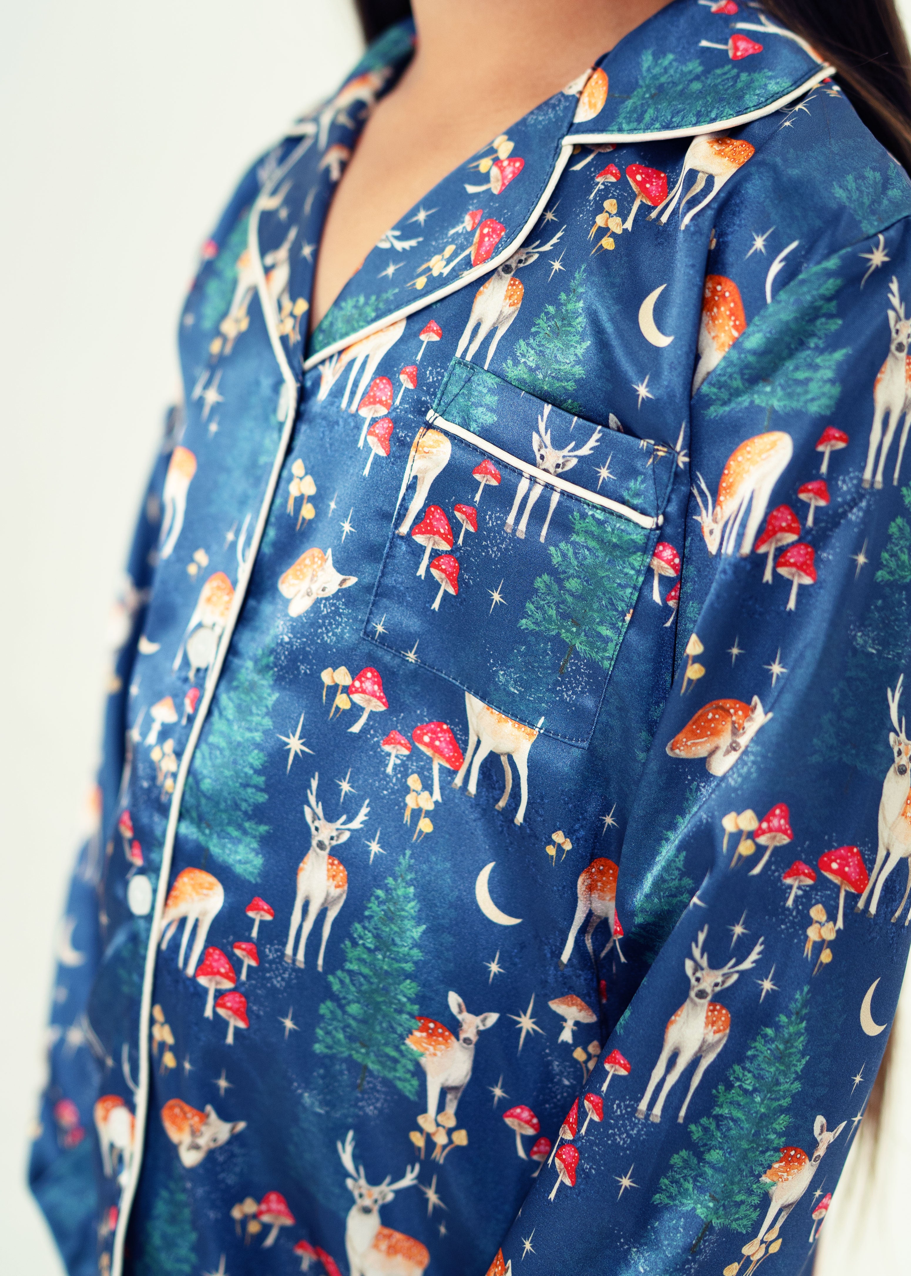 Add a touch of goodness to your bedtime with our gorgeous Woodland Dreams Satin Pyjamas. Beautifully detailed with adorable buttons, and an extra stretchy waistband, you are sure to have the sweetest sleep!