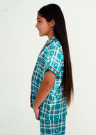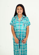 Girls - Starry Tartan Green Satin - Short Top/Long Pants PJ Set