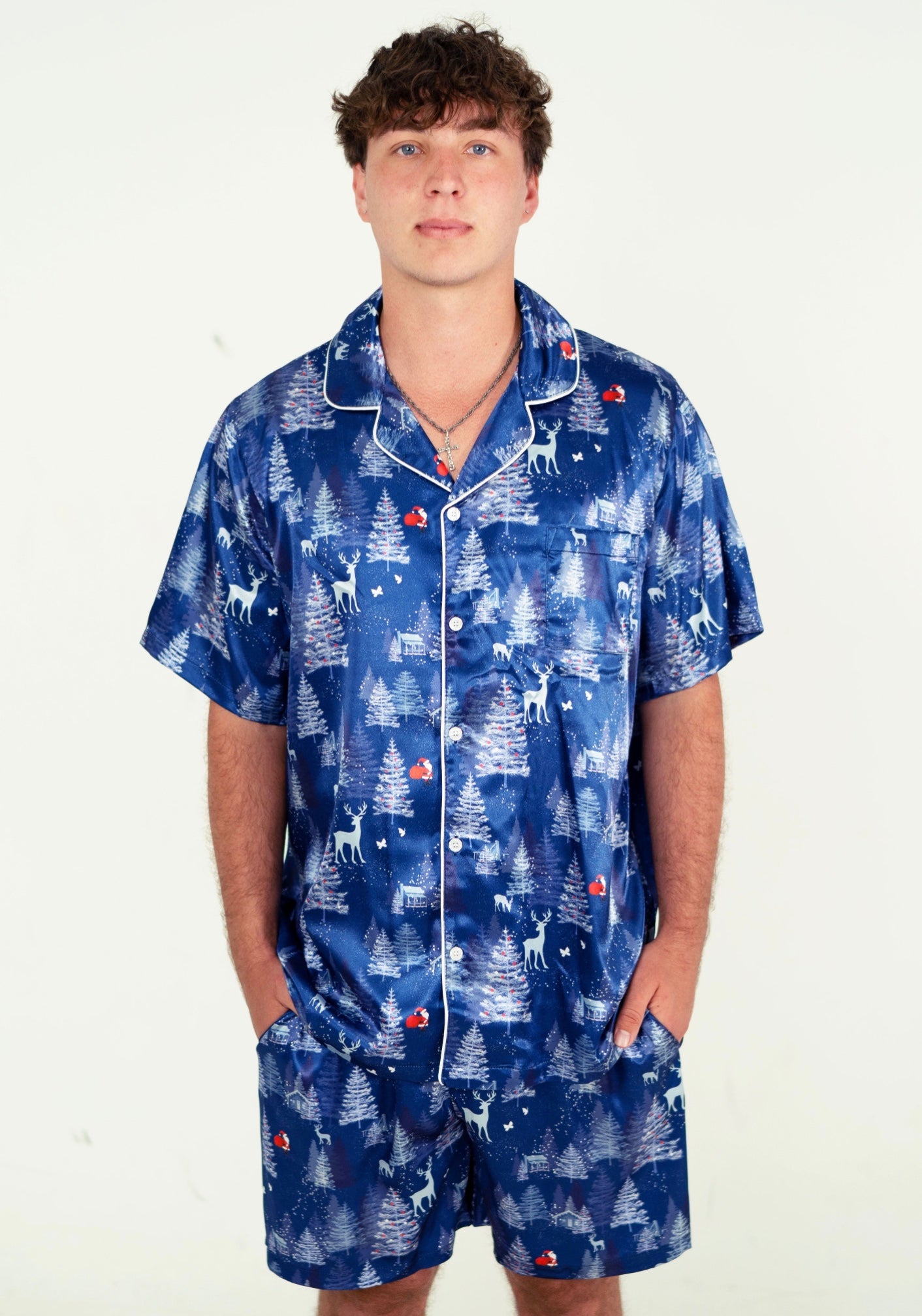 Elevate your sleep game instantly with our cosy Snowy Night Satin Pyjamas. Made with your comfort in mind, these adorable pyjamas feature buttery soft fabric and a stretchy waistband for the ultimate comfort experience.