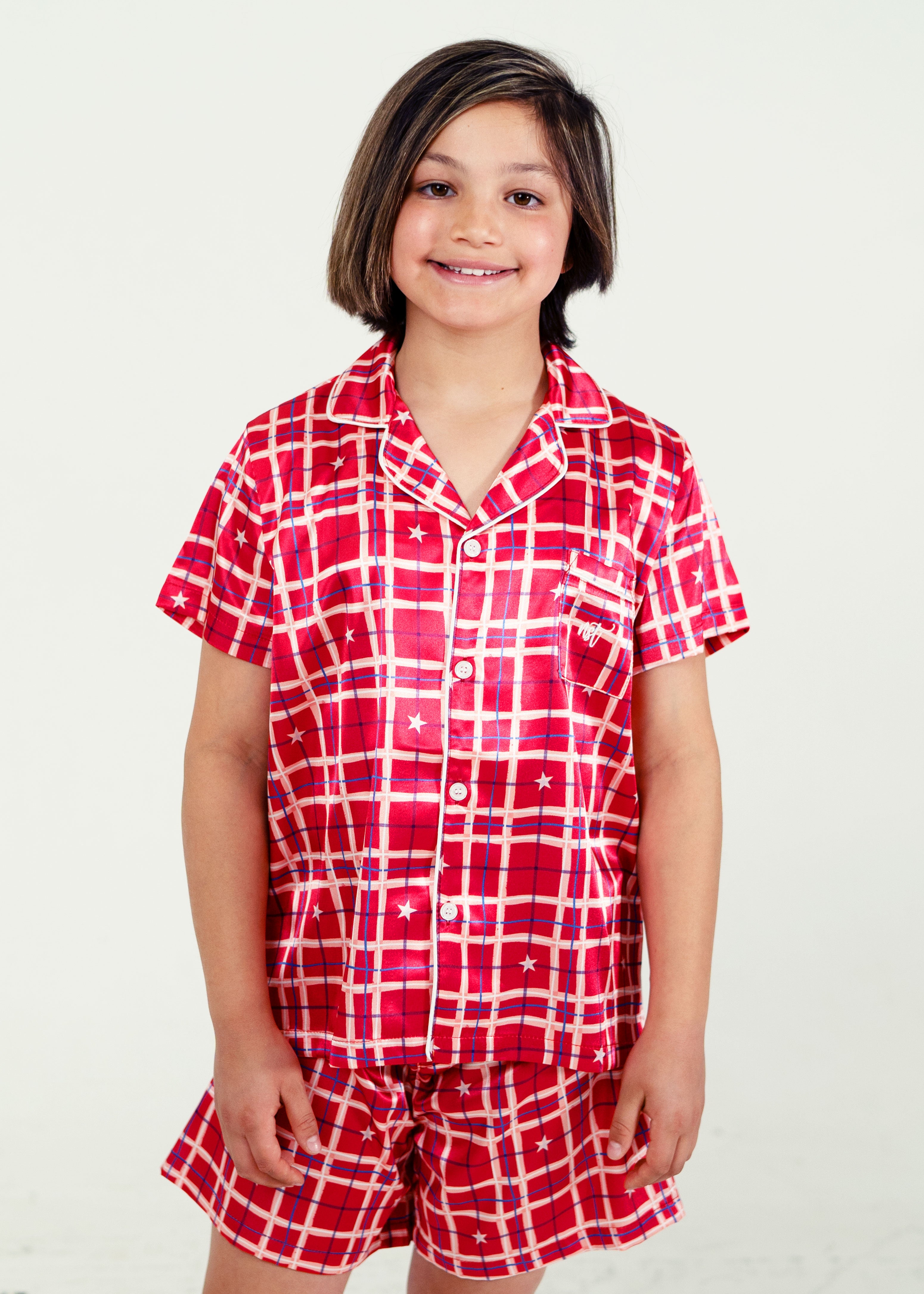 Boys Starry Tartan Red Satin Short Pyjama Set
