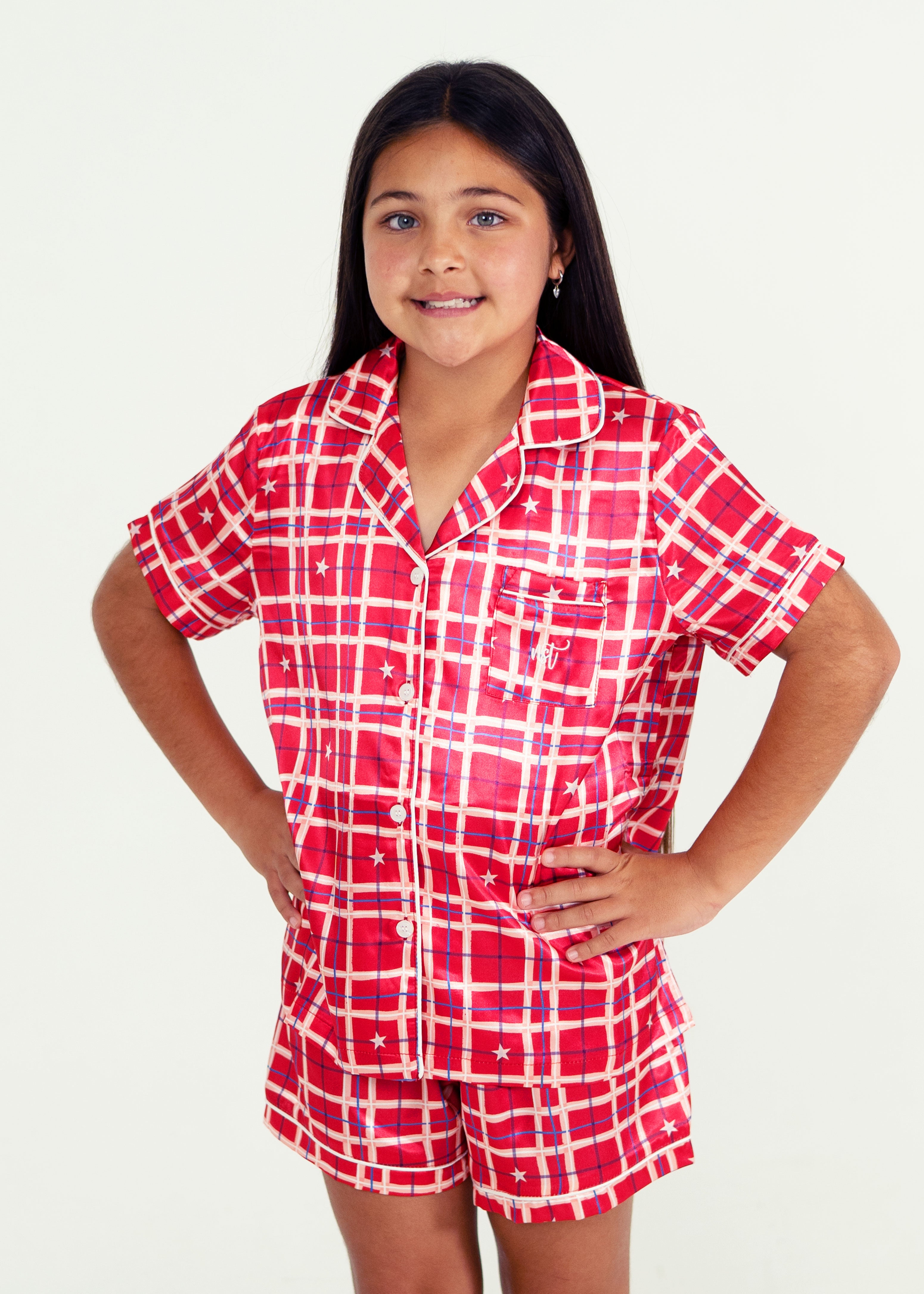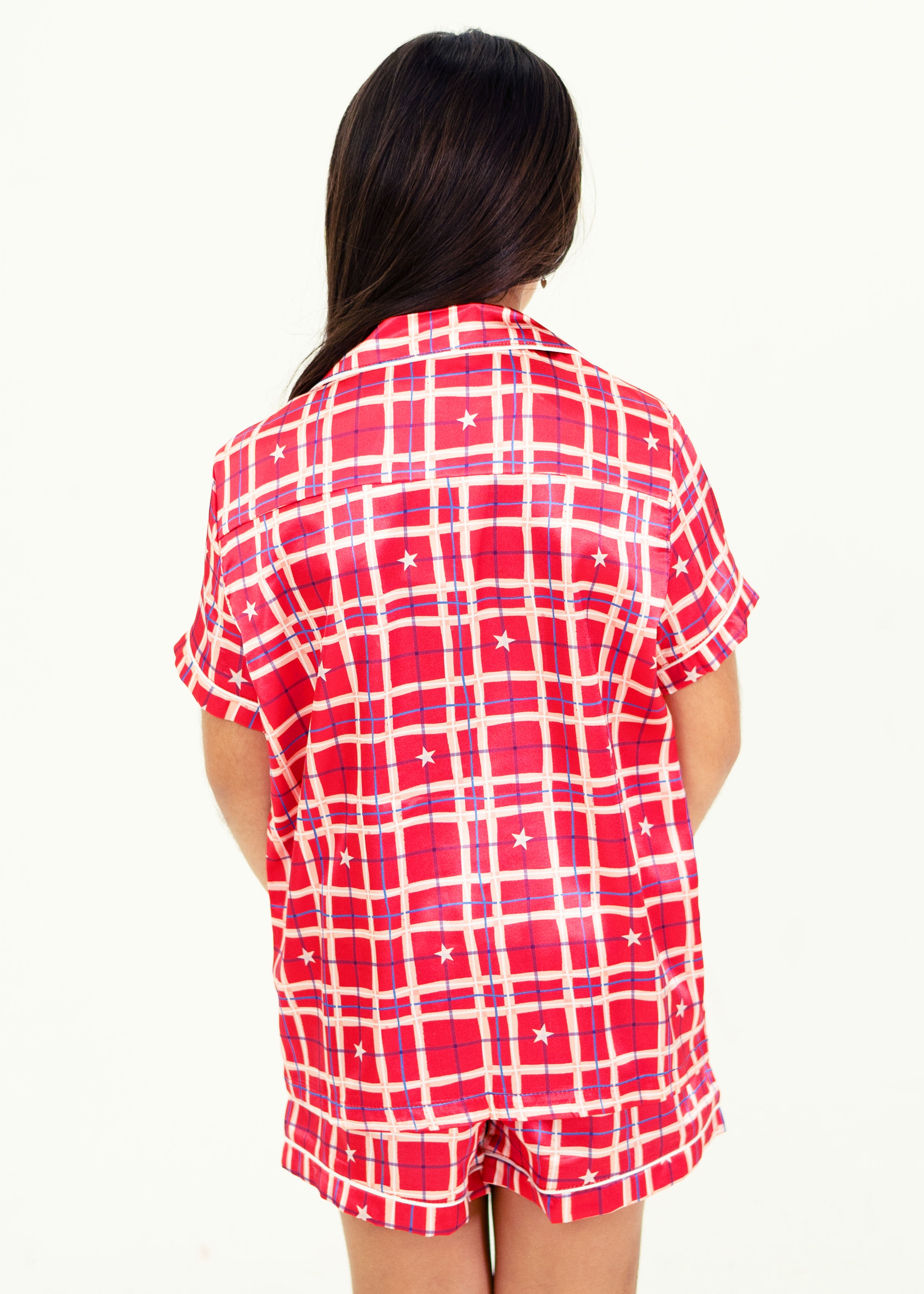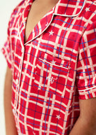 Girls - Starry Tartan Red Satin Short PJ Set