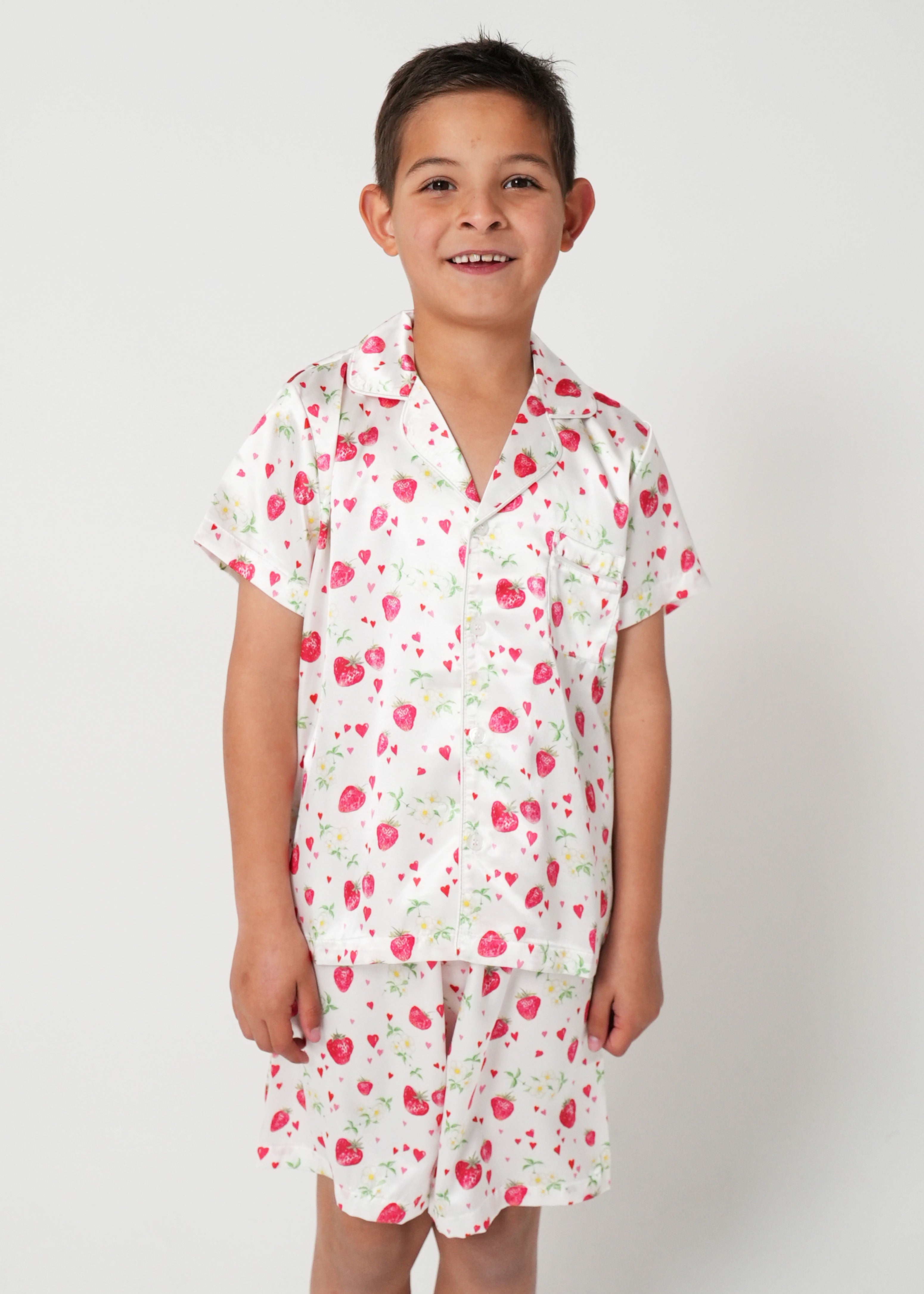 Boys Strawberries Satin Short Pyjama Set