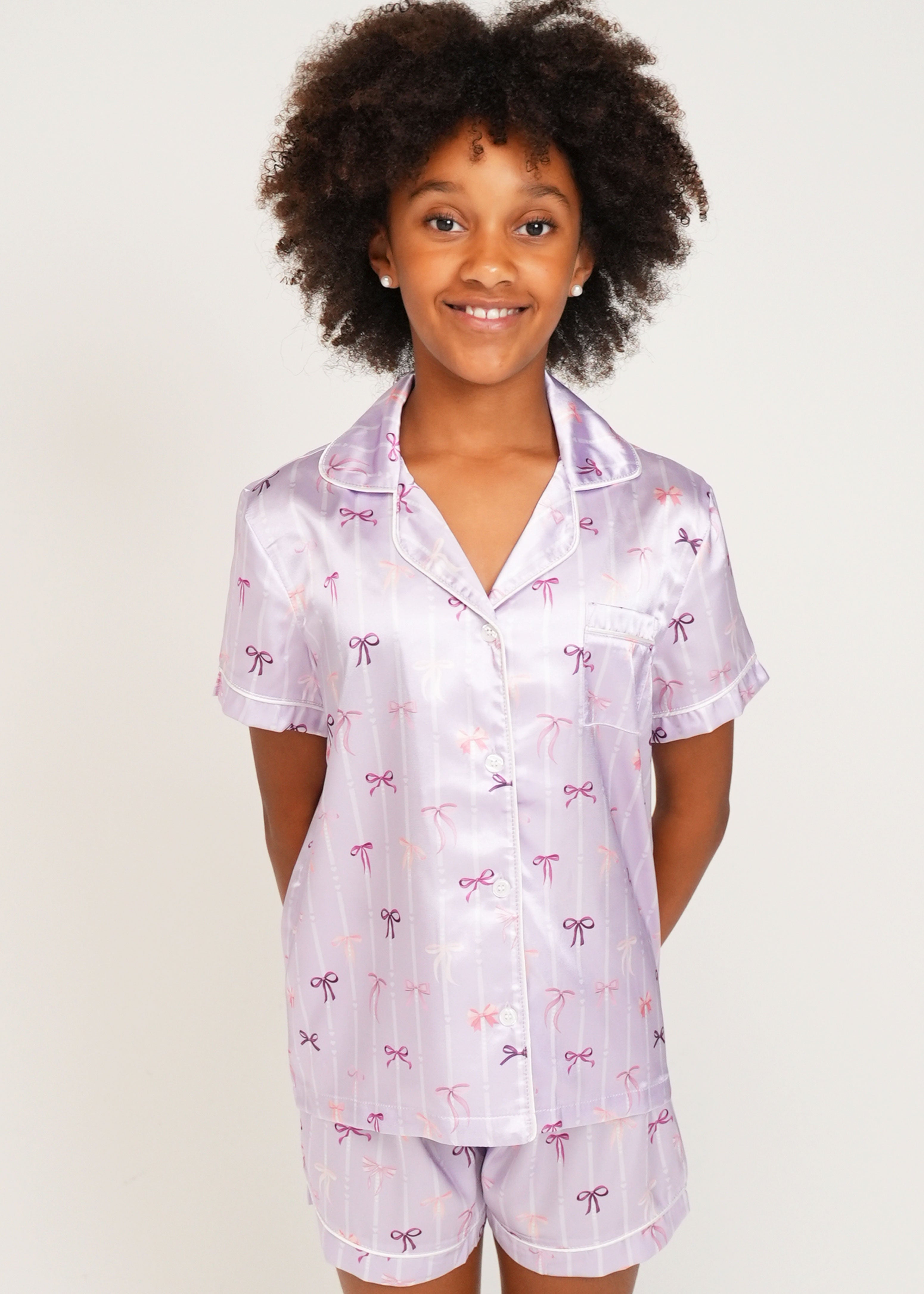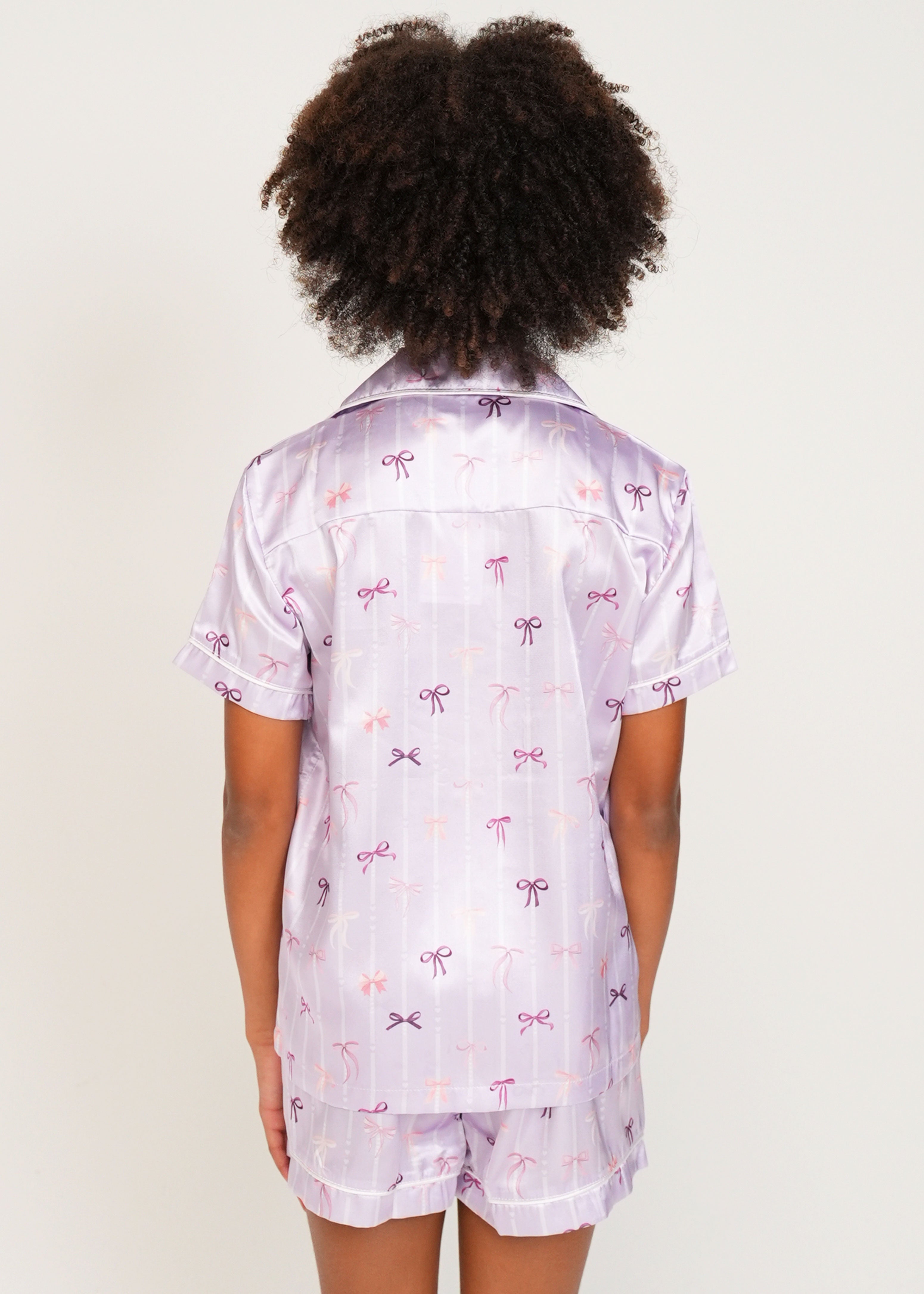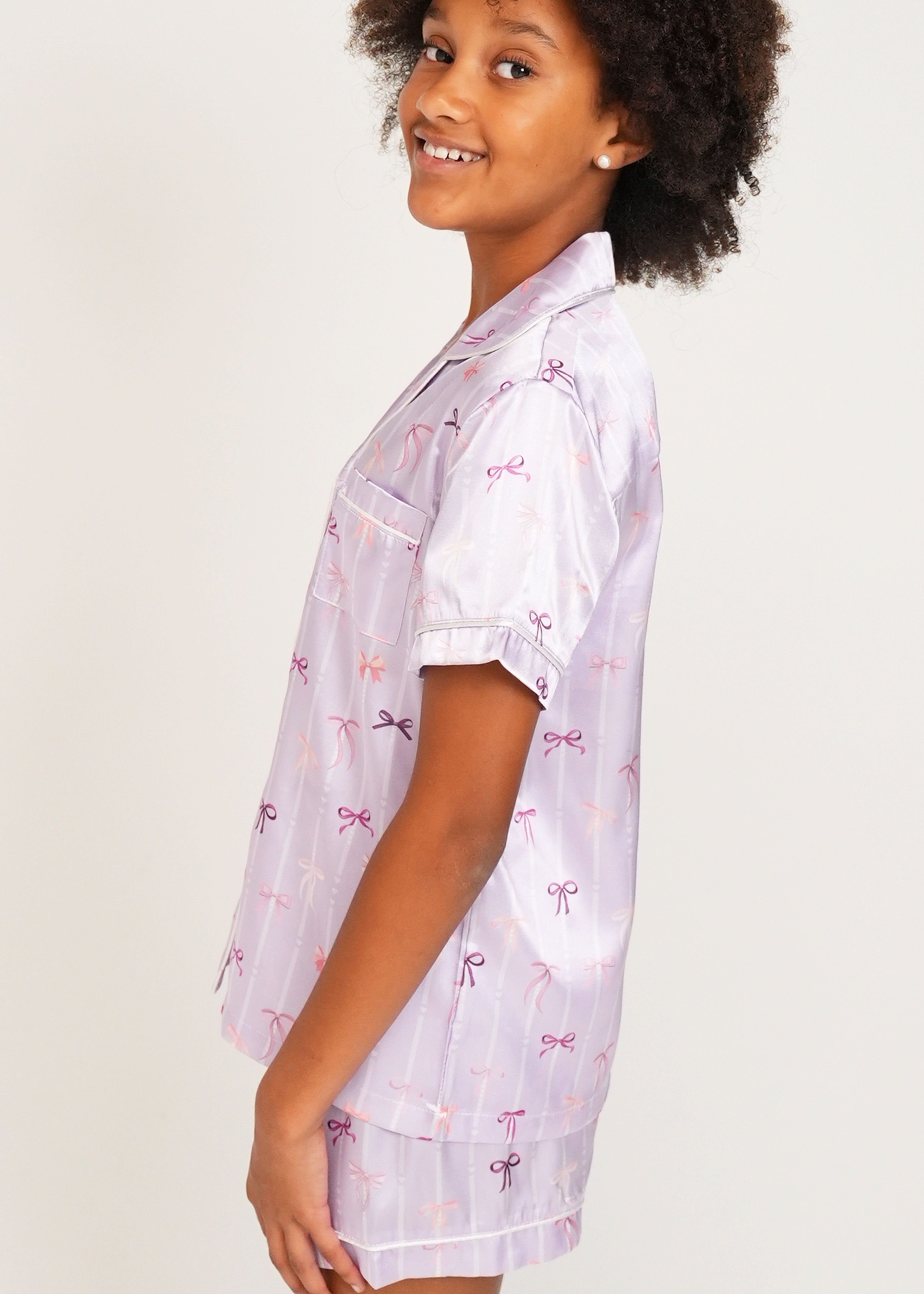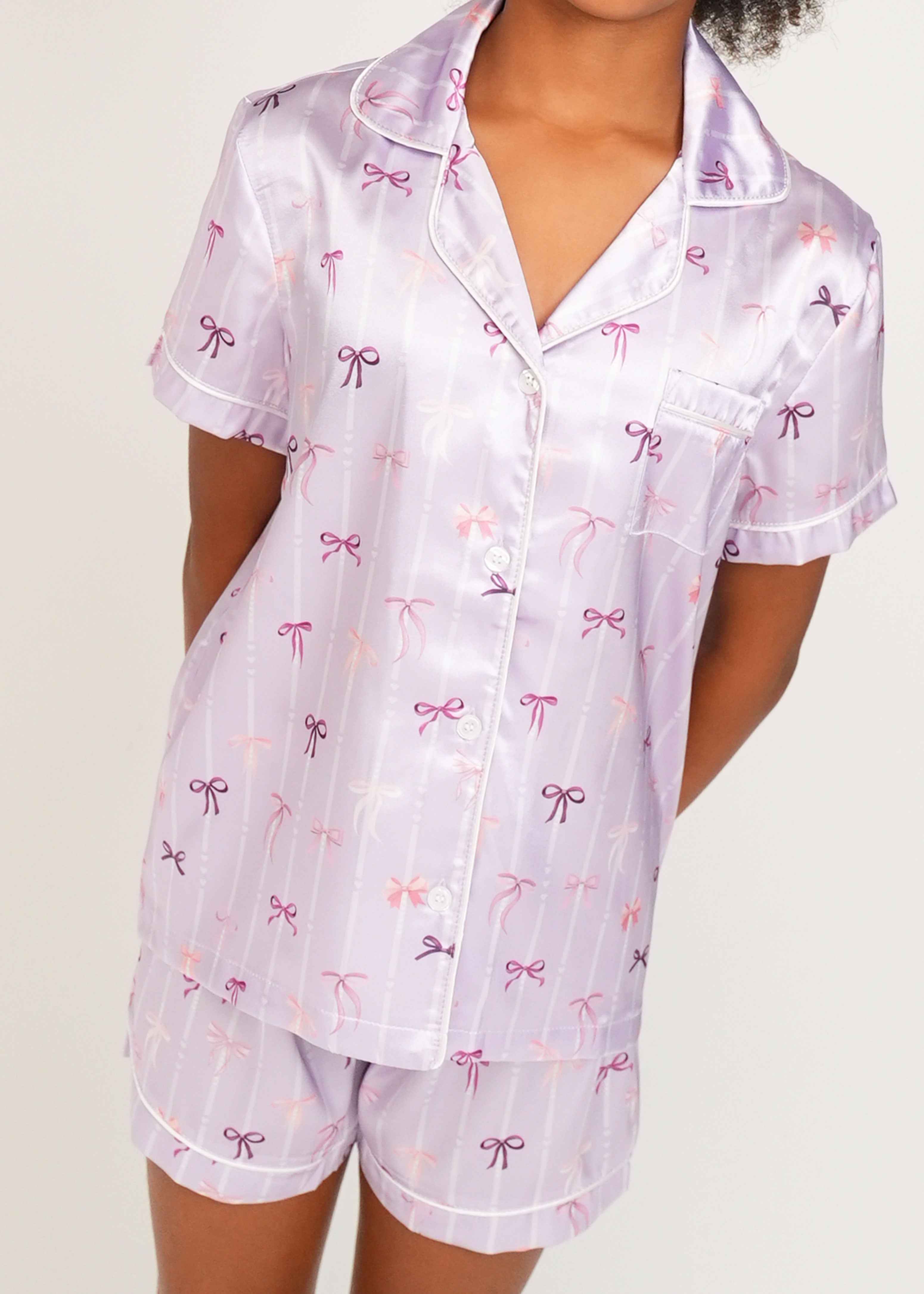 Girls - Lilac Ballet Bows Satin Short Pyjama Set