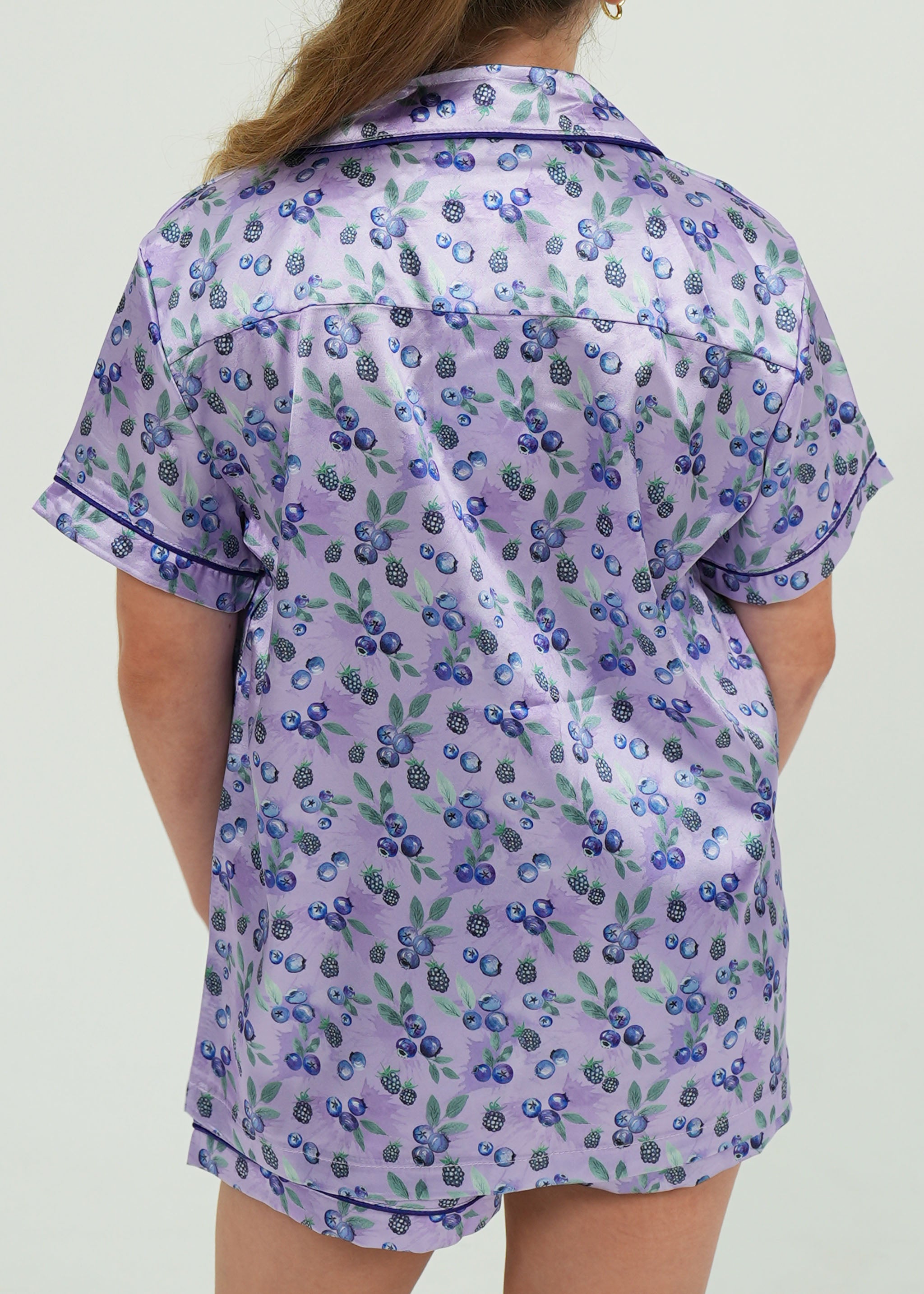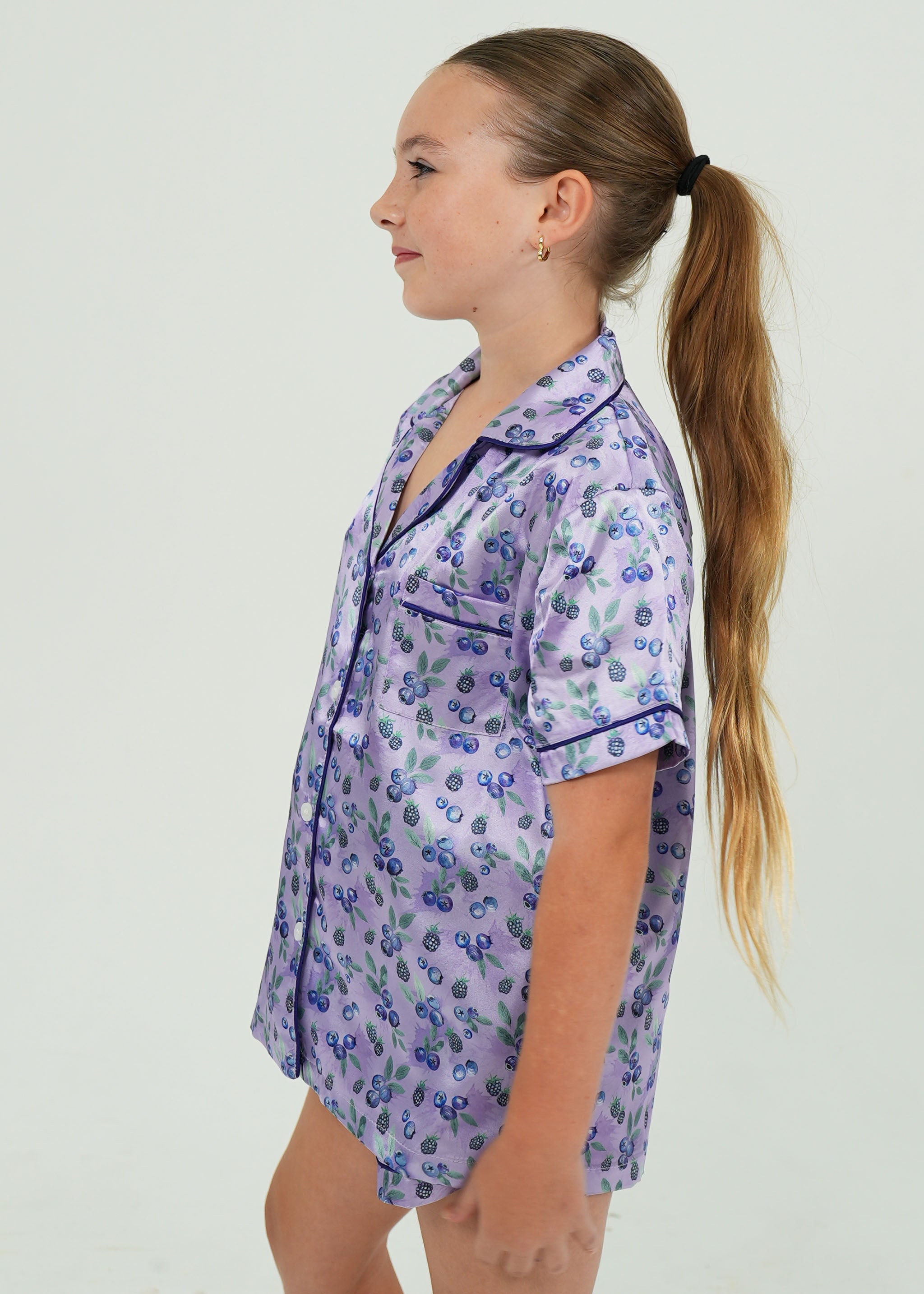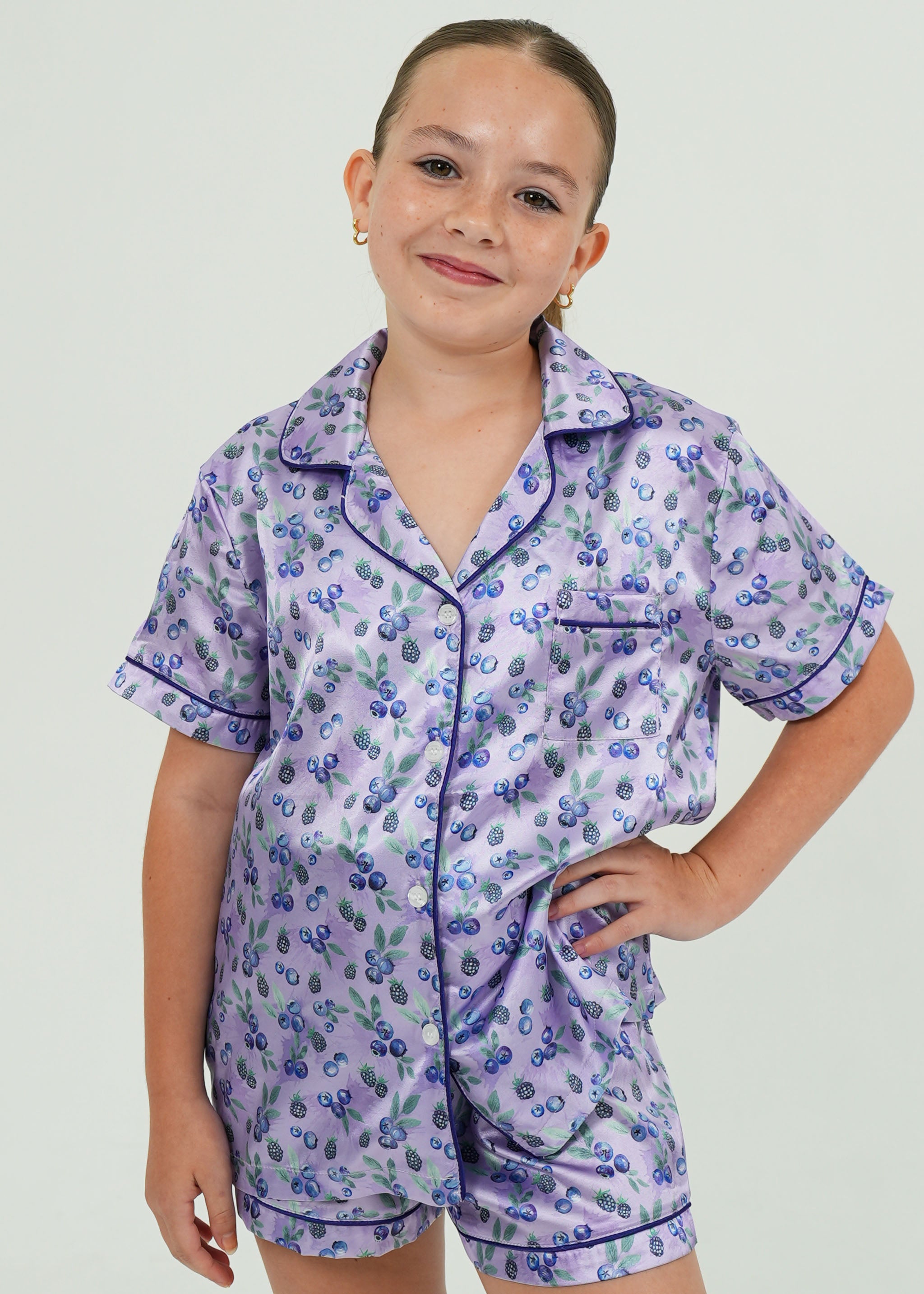 Girls Lilac Blueberries Satin Short Pyjama Set