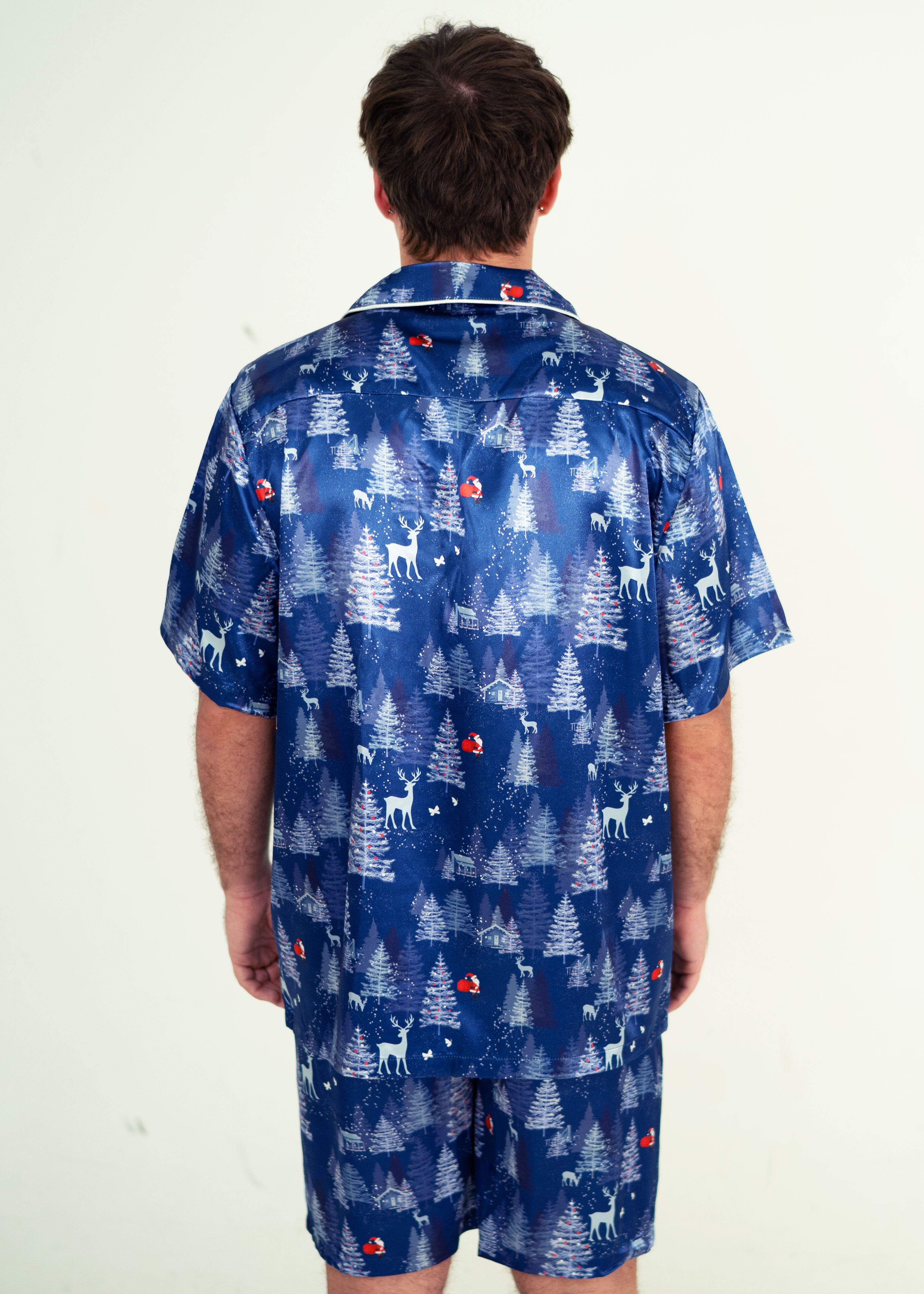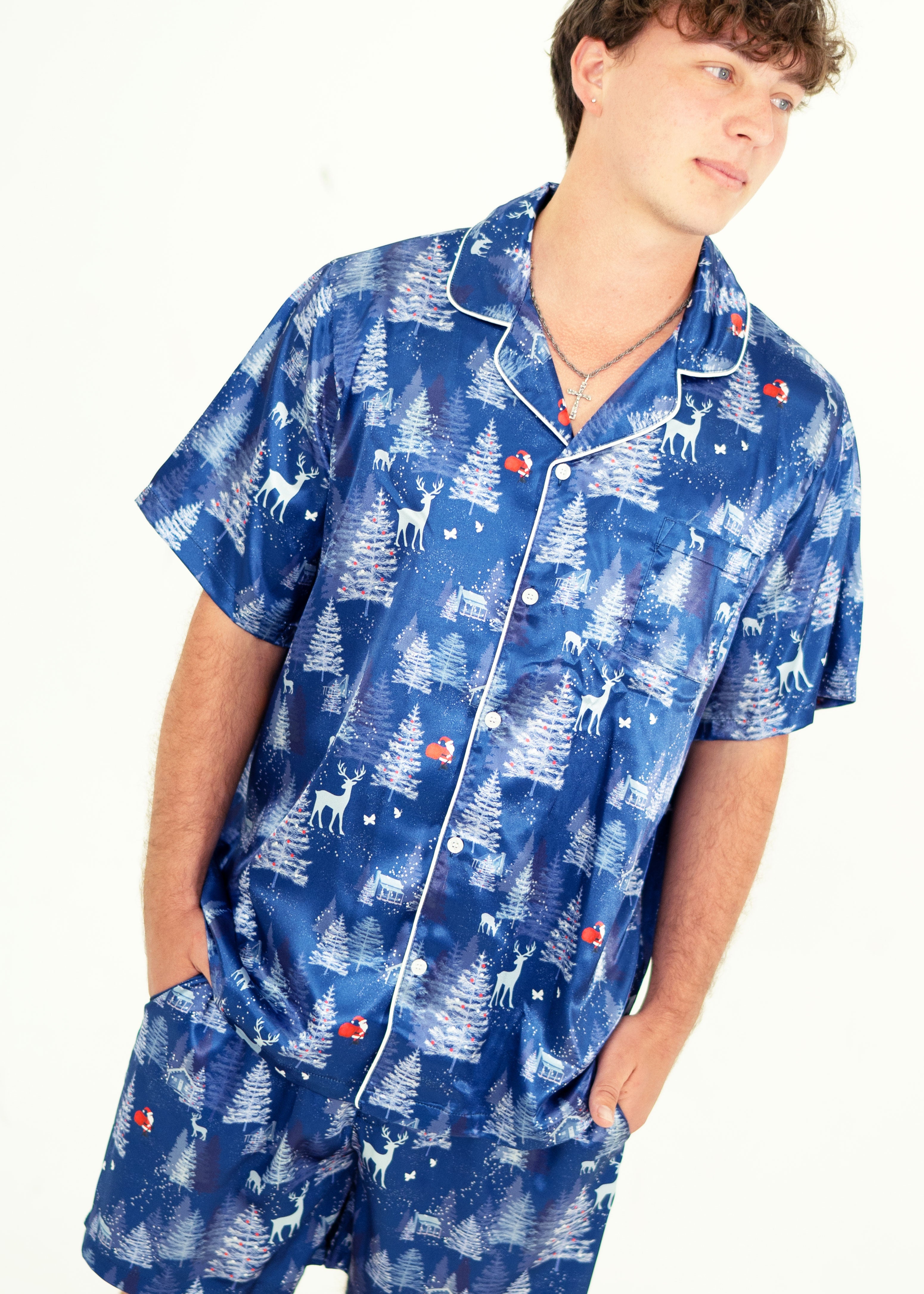 Elevate your sleep game instantly with our cosy Snowy Night Mens Satin Pyjamas. Made with your comfort in mind from buttery soft, breathable fabrics. These tried and true staple pyjamas feature deep pockets and a stretchy drawstring waistband for the ultimate comfort experience.