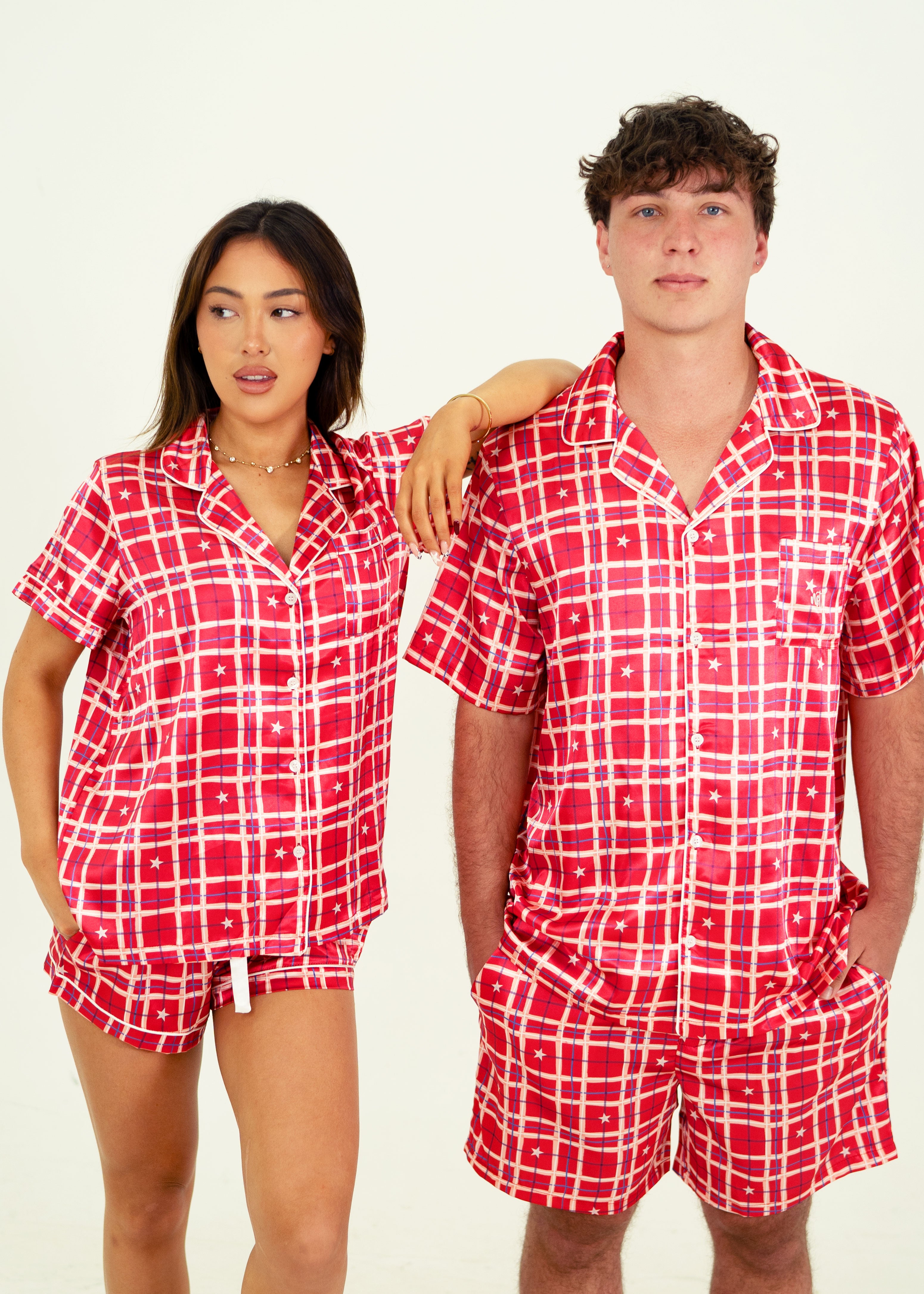 Elevate your sleep game instantly with our cosy Starry Tartan Red Satin Pyjamas. Made with your comfort in mind from buttery soft, breathable fabrics. These tried and true staple pyjamas feature deep pockets and a stretchy drawstring waistband for the ultimate comfort experience.
