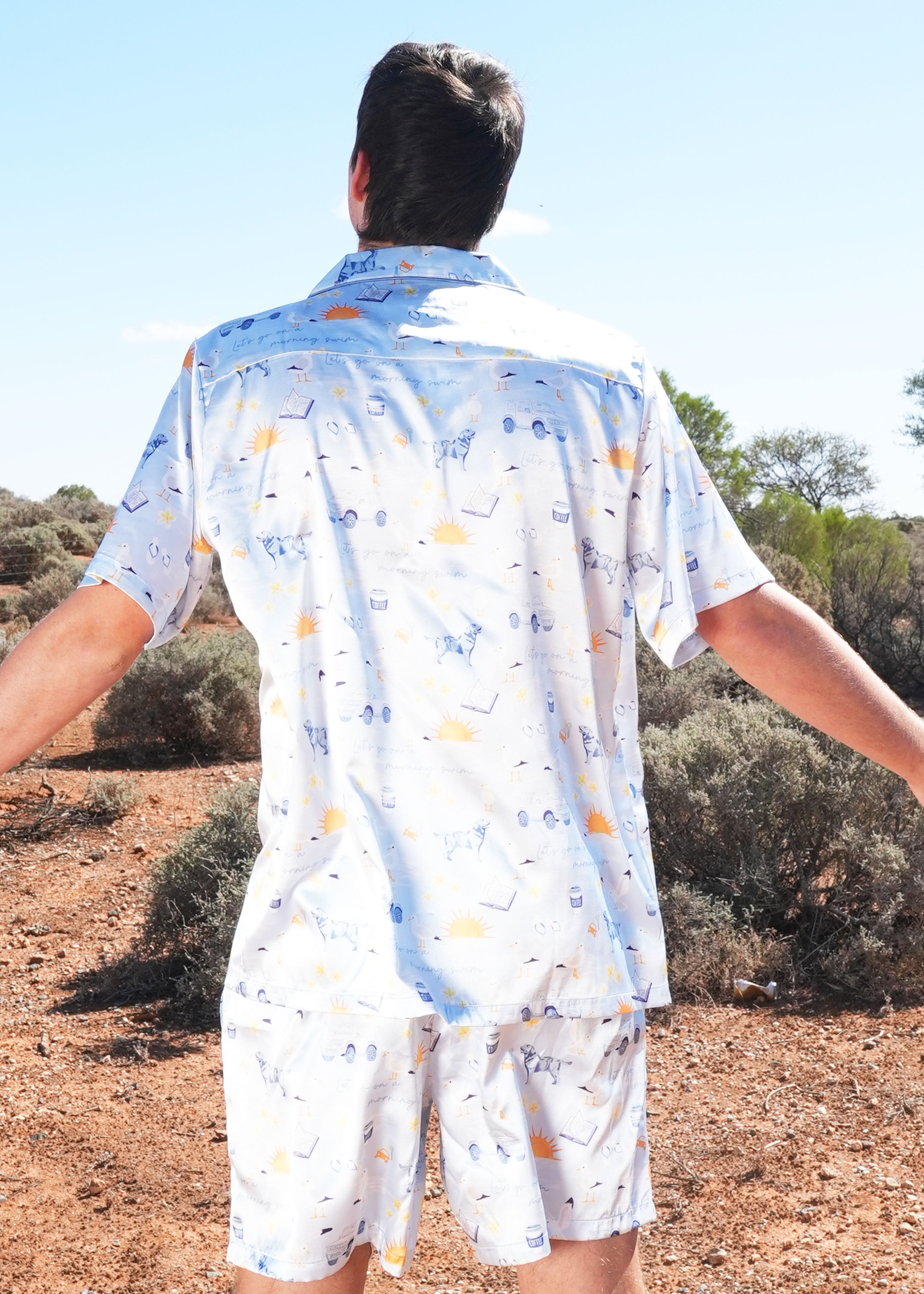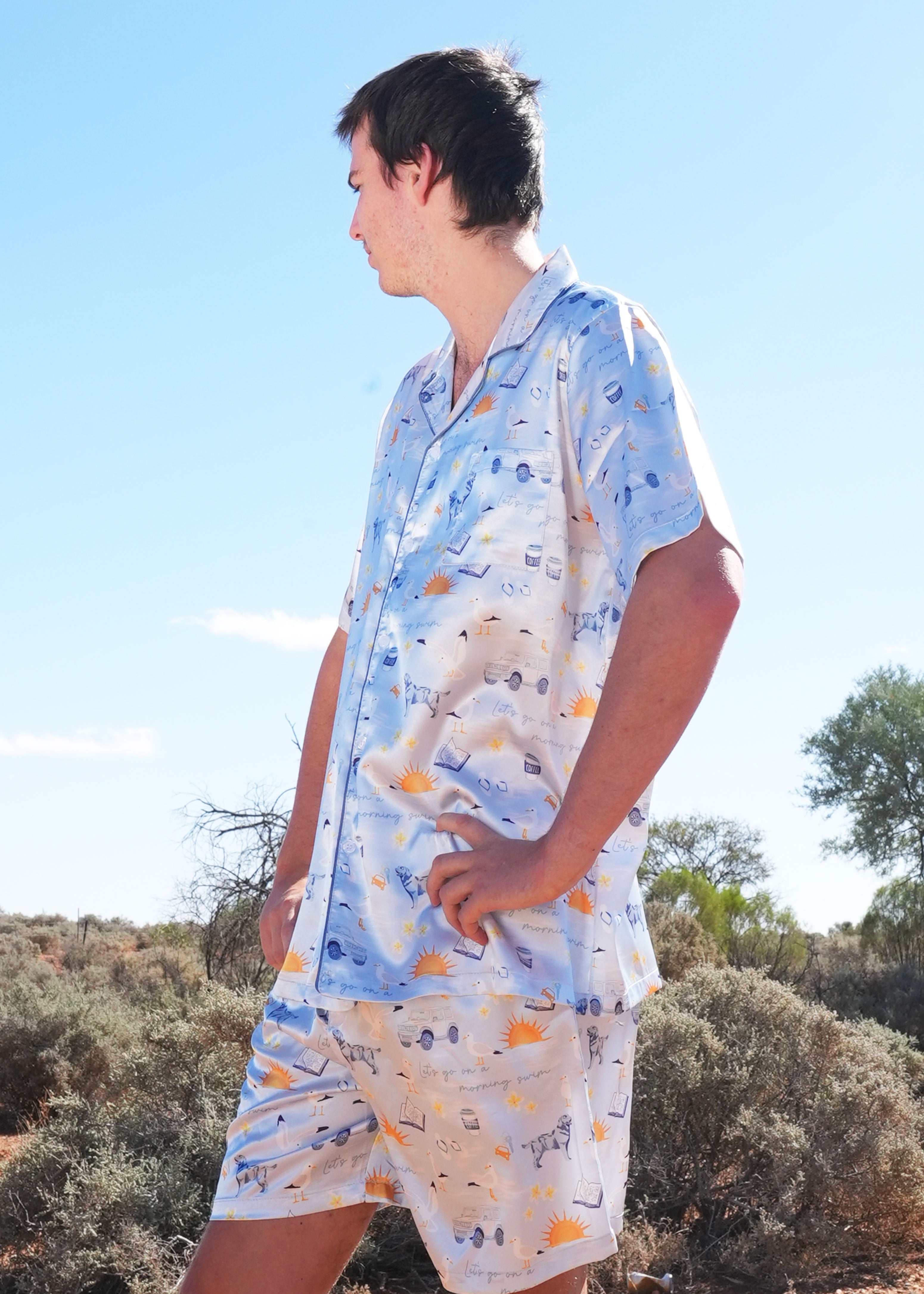 Mens Let's go on a Morning Swim Satin Short PJ Set