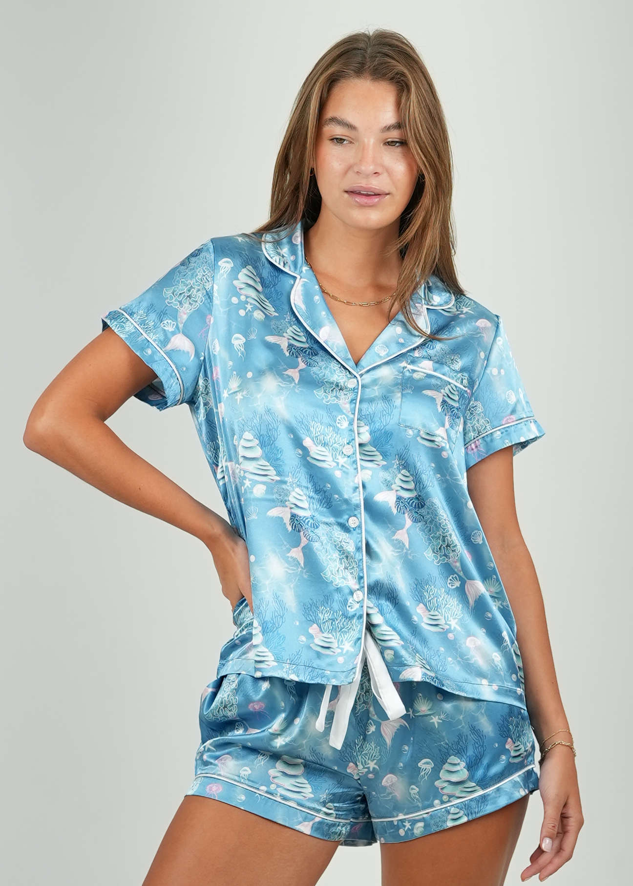 Mermaid Glow Short Satin Pyjama Set