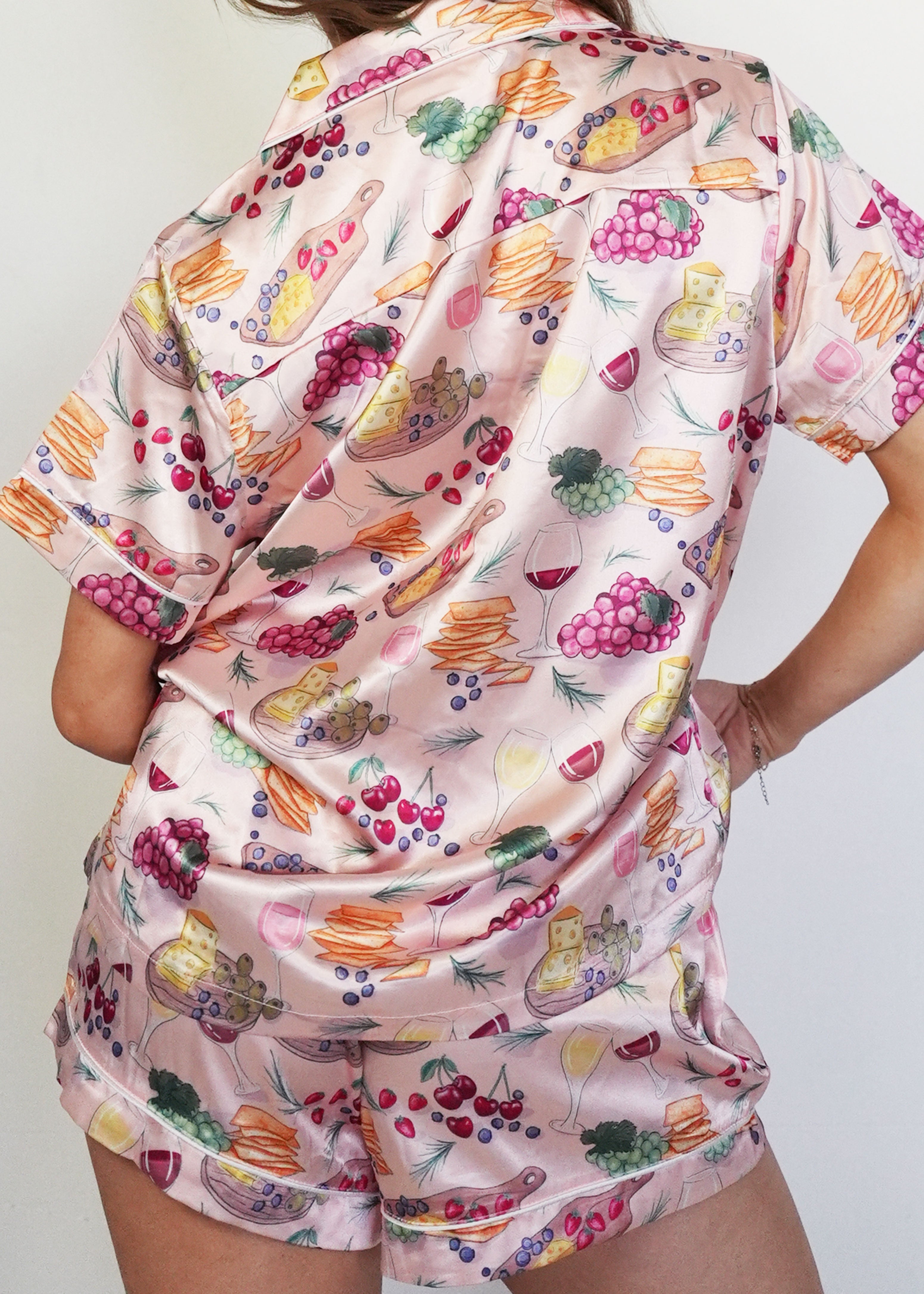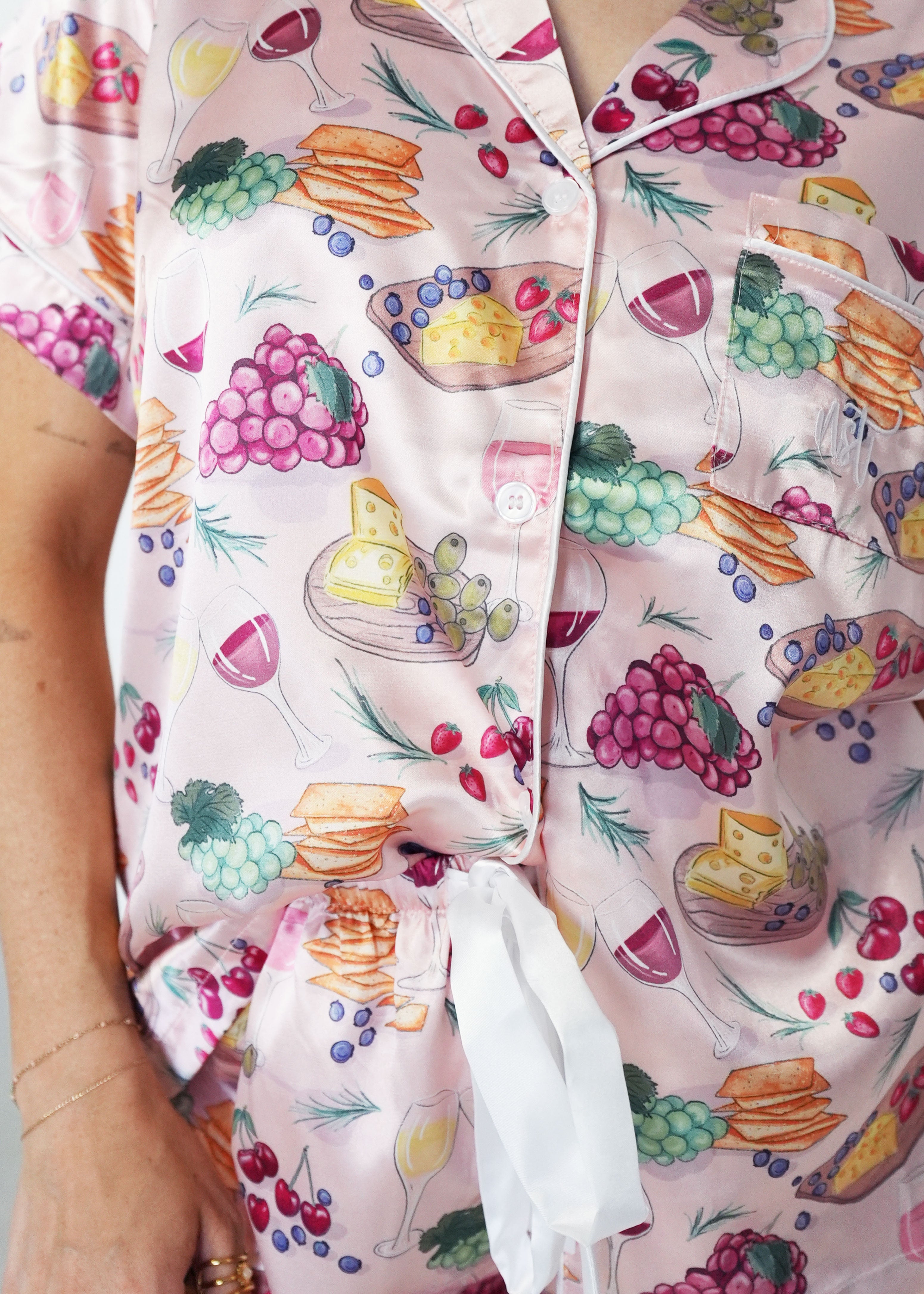 Add the perfect recipe for comfort to your bedtime with these gorgeous Wine & Cheese PJ's. With deep pockets, adorable buttons, and an extra stretchy drawstring waistband for the ultimate comfort experience, you are sure to have the most tranquil sleep.