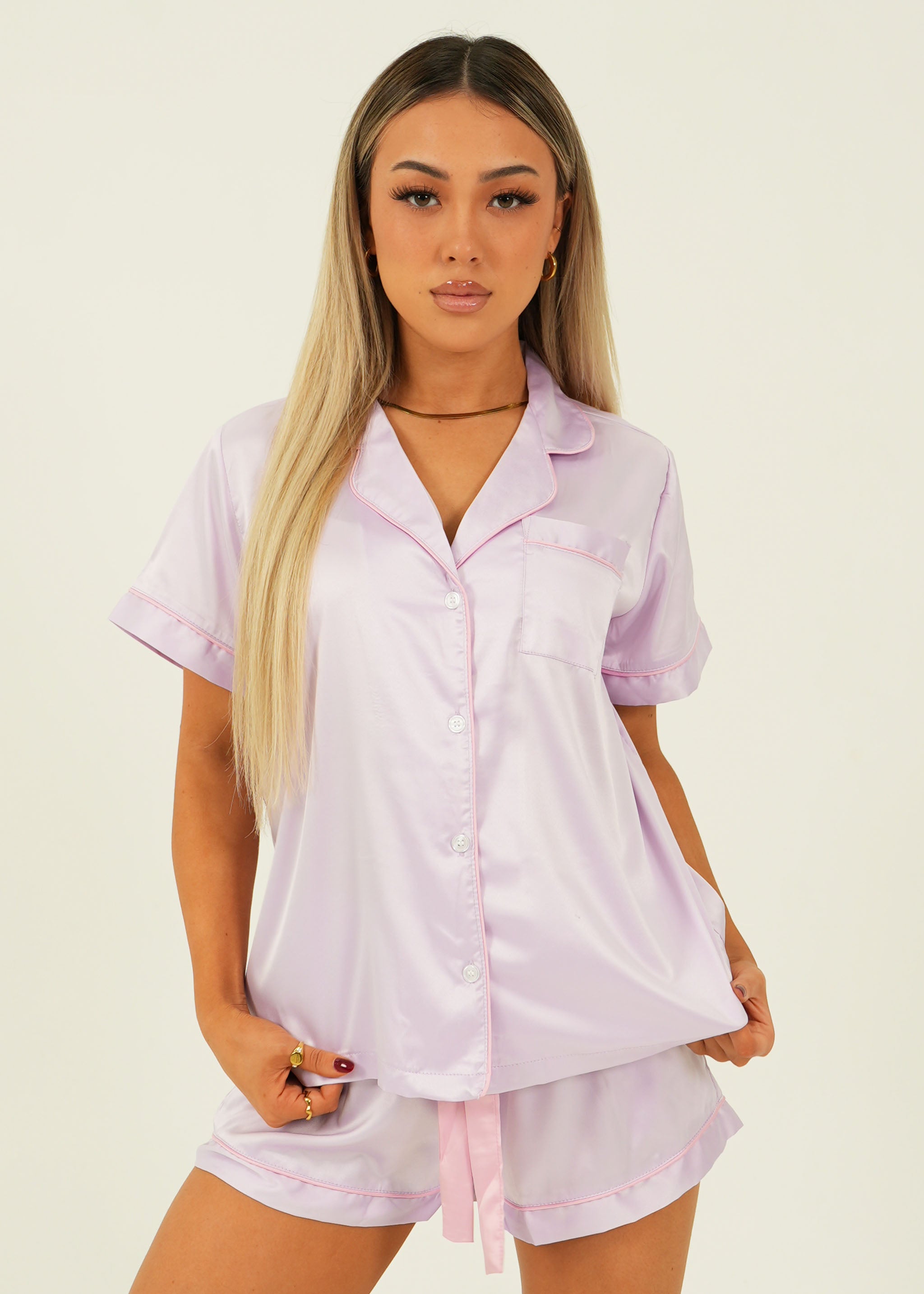 Indulge yourself in our luxuriously silky and oh so buttery soft Lilac Matte Satin Pyjamas. Lovingly detailed with deep pockets, adorable buttons, and an extra stretchy drawstring waistband for the ultimate comfort experience.