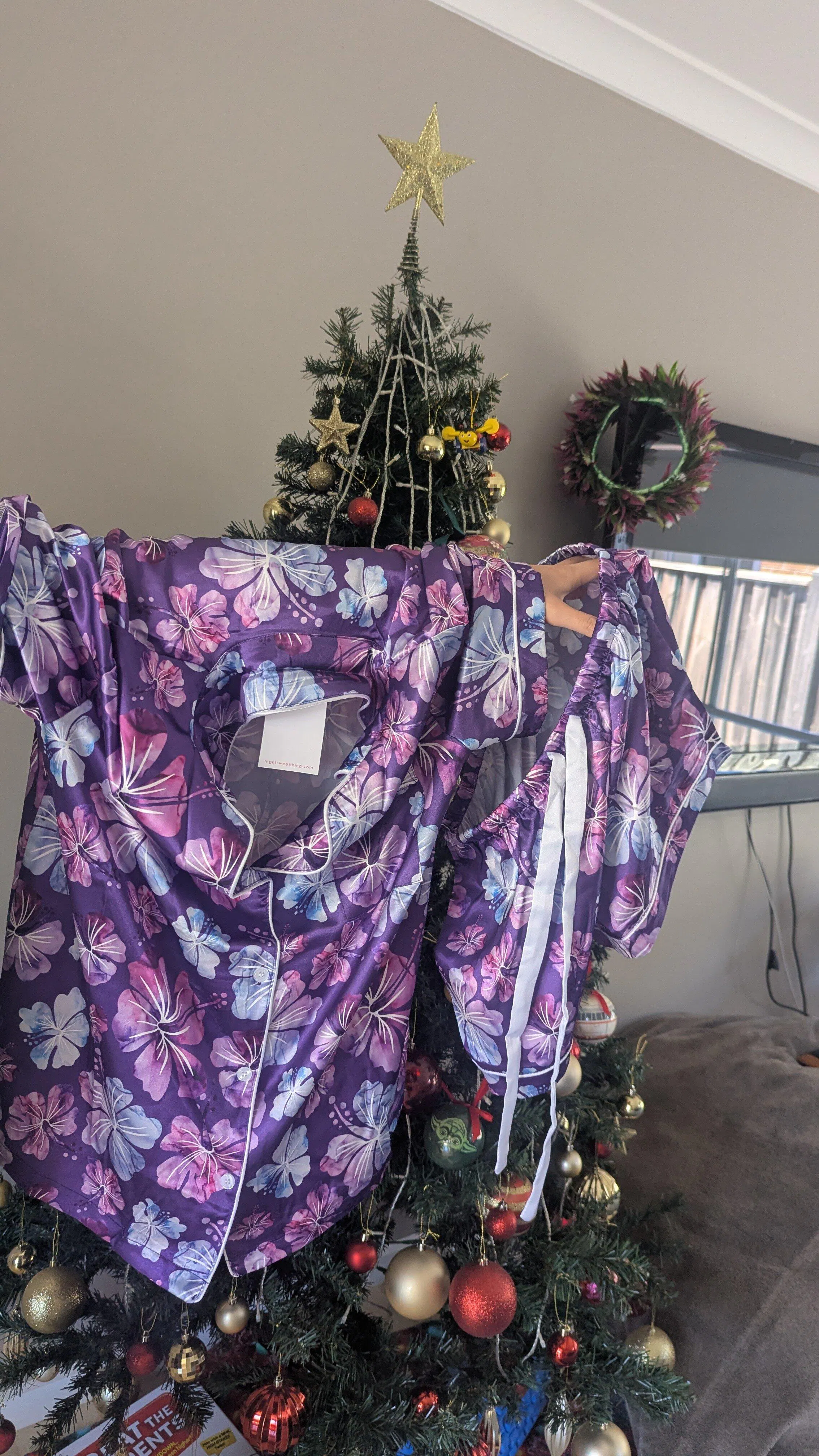 Embrace your inner tropical queen with these gorgeous Purple Hibiscus Satin Pyjamas. With deep pockets, adorable buttons, and an extra stretchy drawstring waistband for the ultimate comfort experience, you are sure to have the most tranquil sleep.