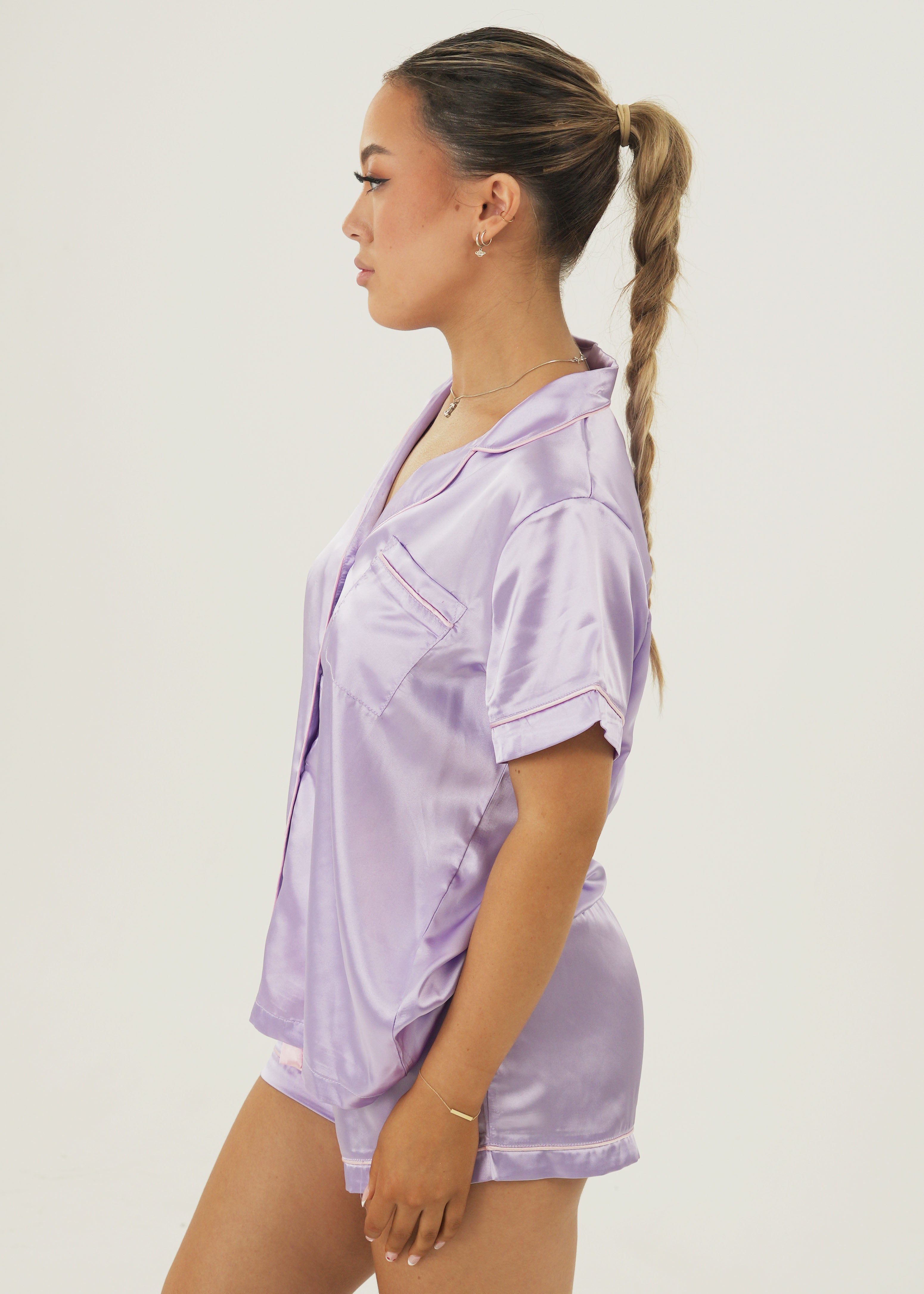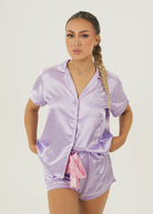 Indulge yourself in our luxuriously silky and oh so buttery soft Lilac Satin Pyjamas. Lovingly detailed with deep pockets, adorable buttons, and an extra stretchy drawstring waistband for the ultimate comfort experience.