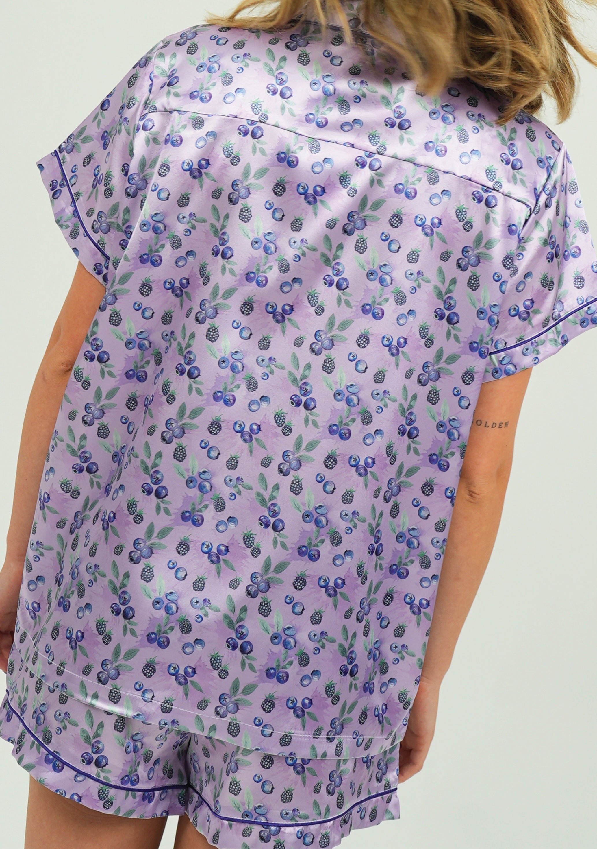 Add a touch of fruity goodness to your bedtime with our gorgeous Lilac Blueberries Satin Pyjamas. Beautifully detailed with deep pockets, adorable buttons, and an extra stretchy drawstring waistband, you are sure to have the sweetest sleep!