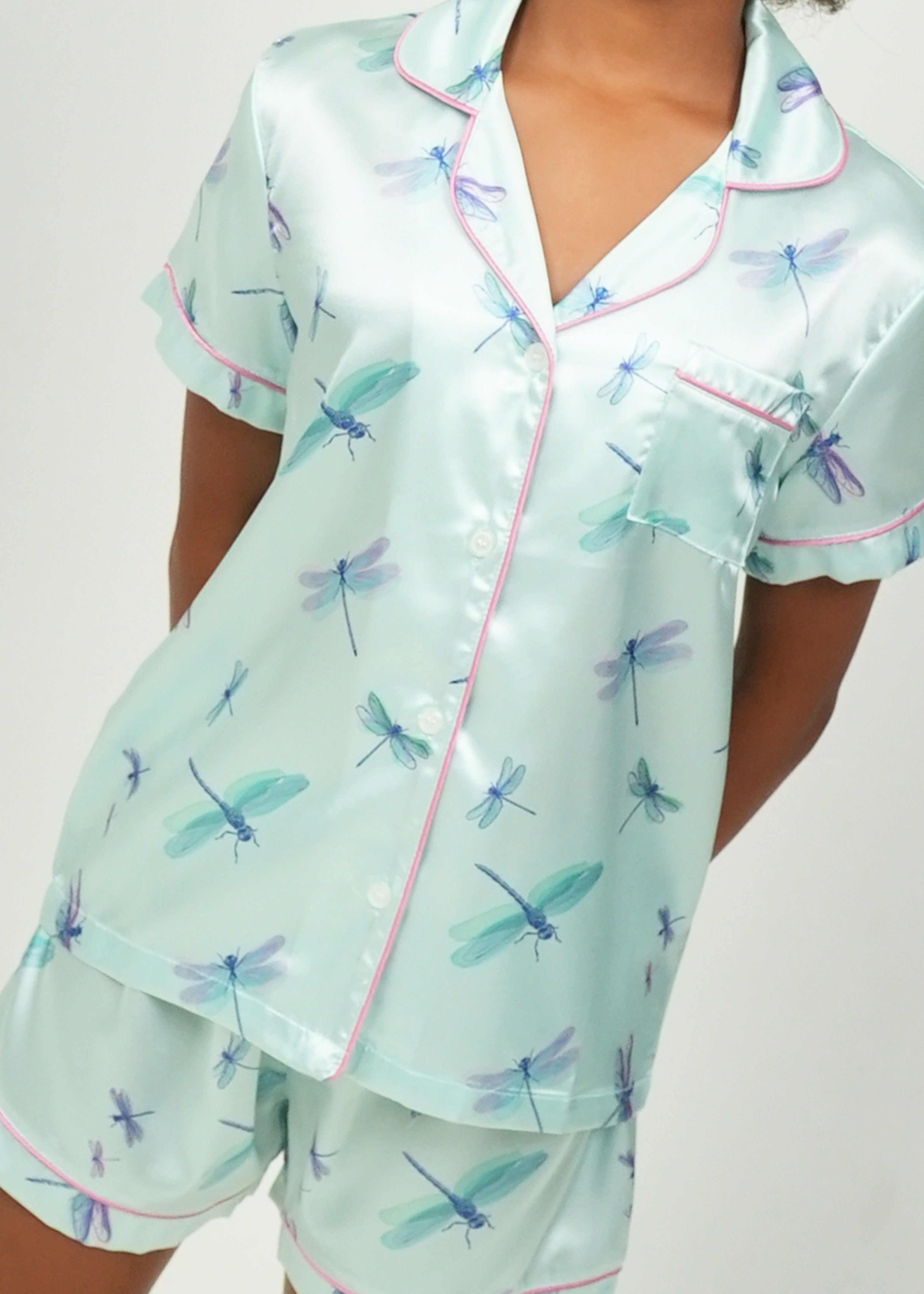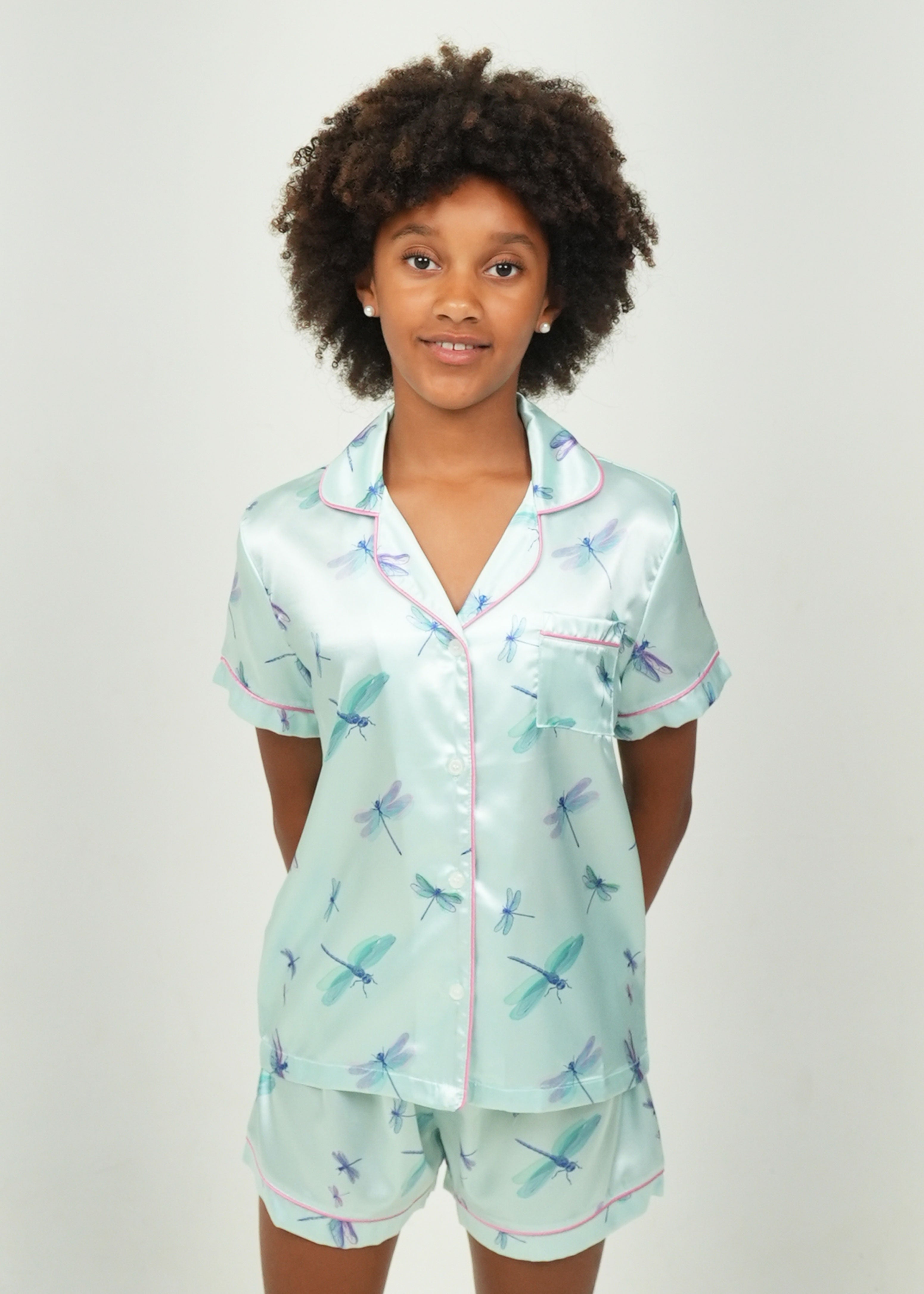 Girls - Aqua Dragonflies Satin Short PJ Set
