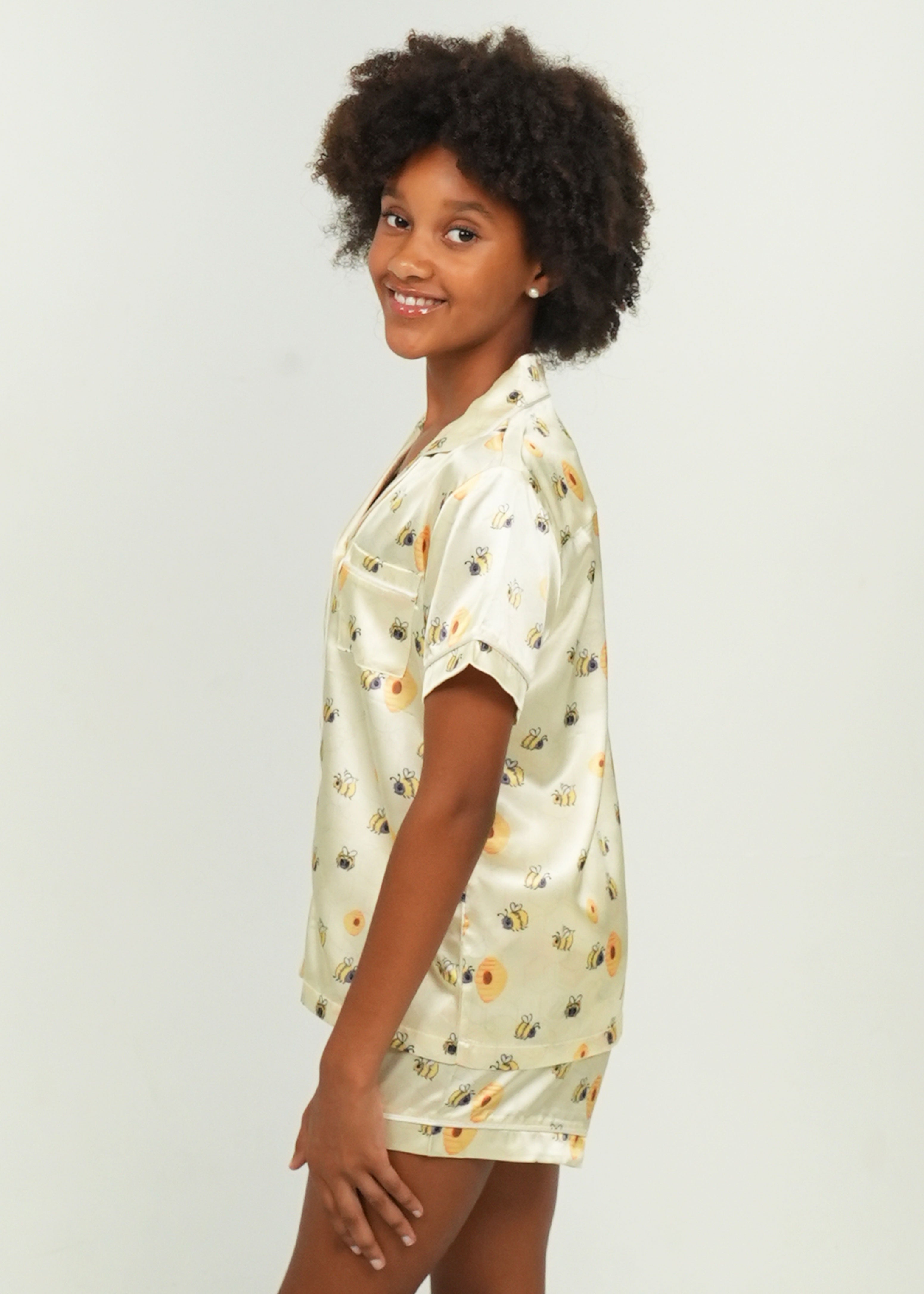 Girls - Yellow Bumble Bees Satin Short PJ Set