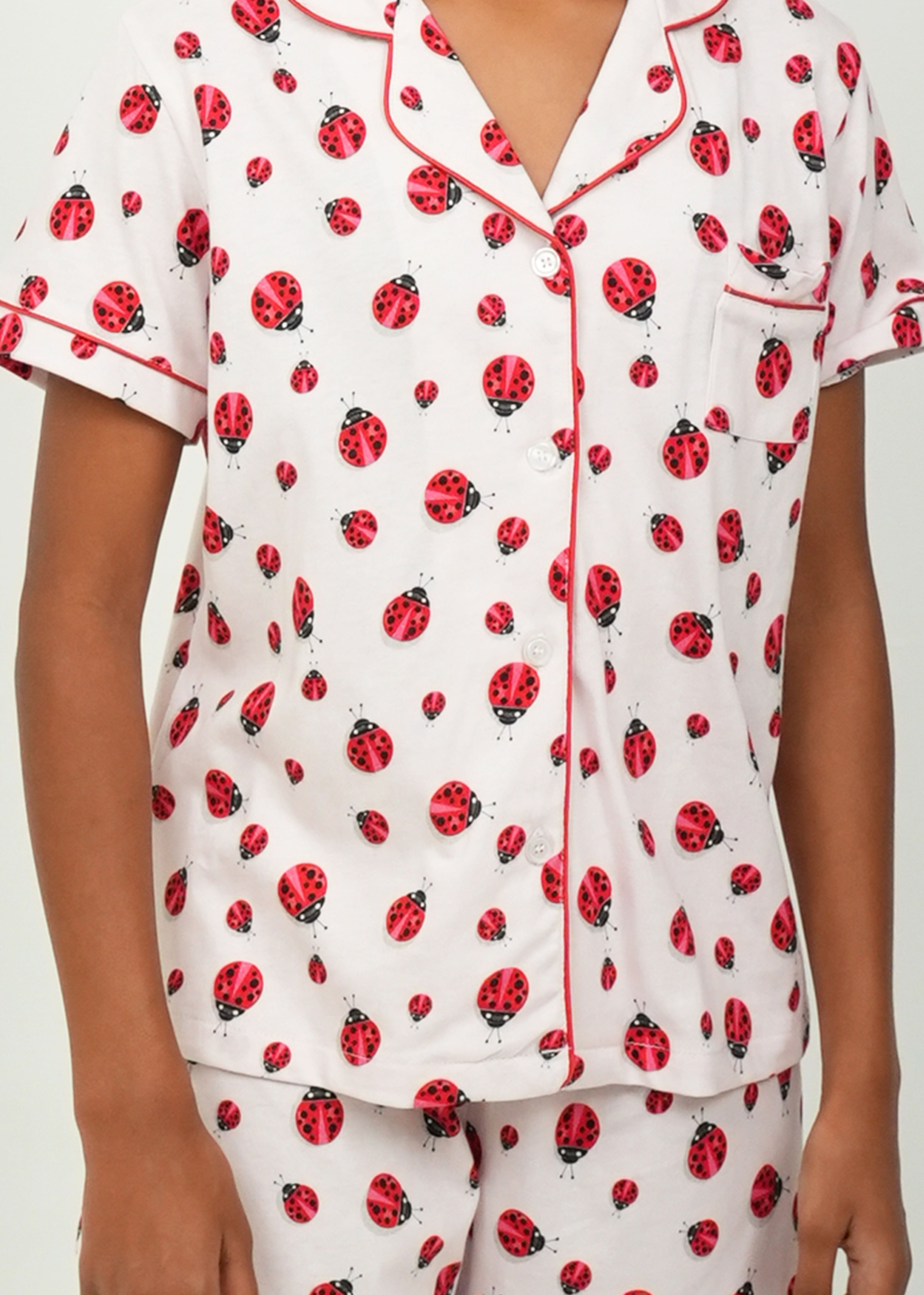 Girls - Red Lady Bugs Jersey Knit Cotton Short PJ Set