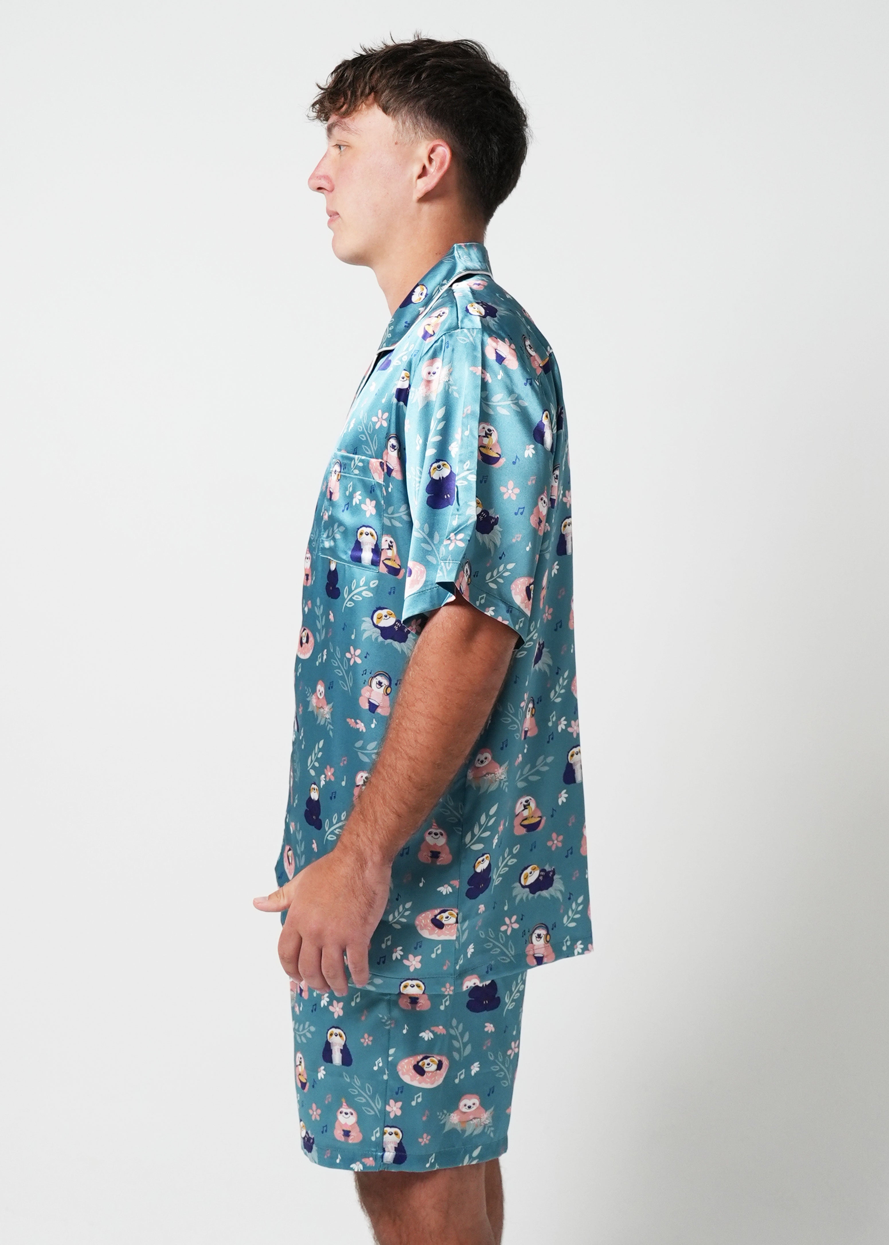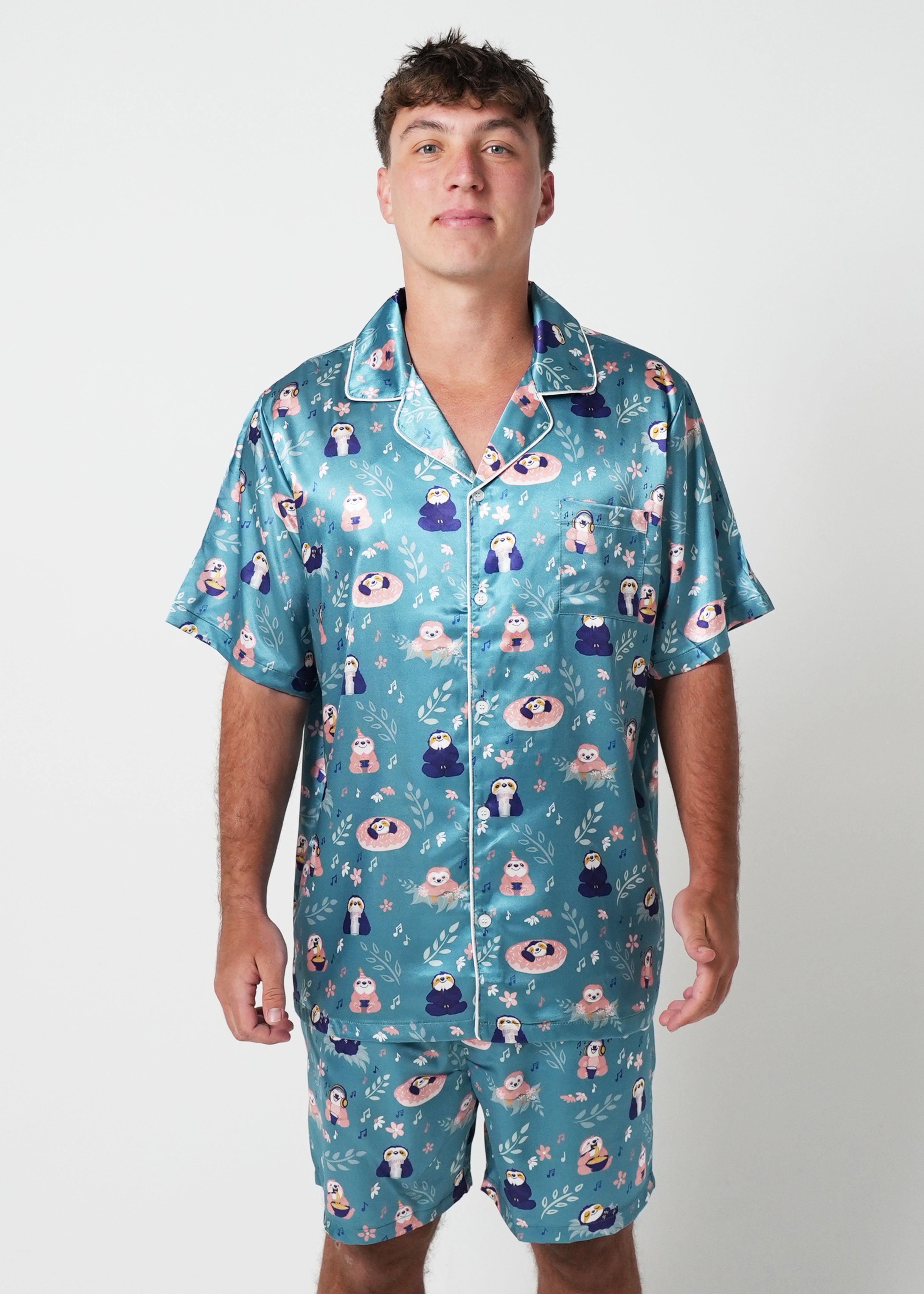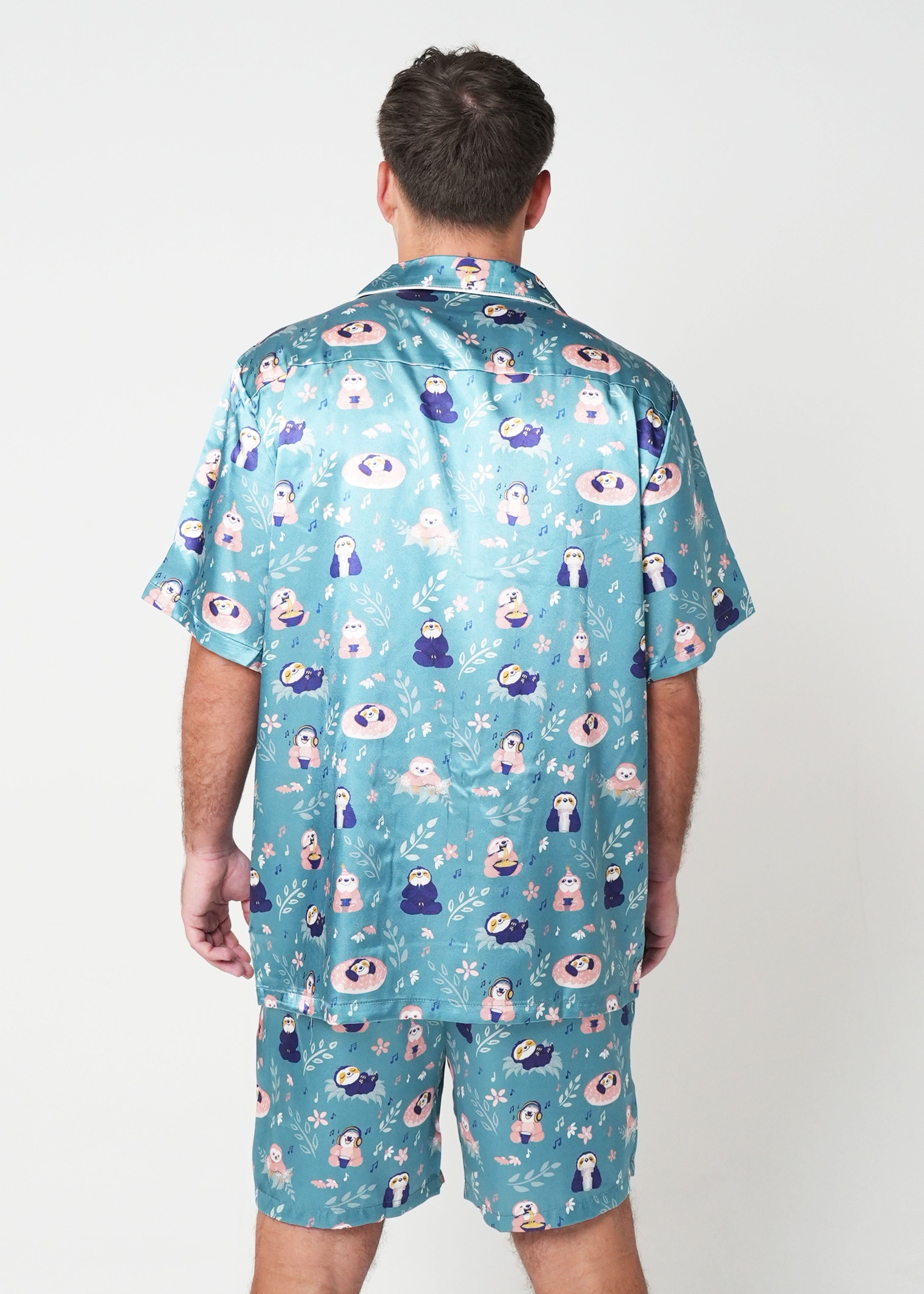 Elevate your sleep game instantly with our cosy Slothee Satin Pyjamas. Made with your comfort in mind from buttery soft, breathable fabrics. These adorable pyjamas feature deep pockets, knee length shorts, and a stretchy drawstring waistband for the ultimate comfort experience.