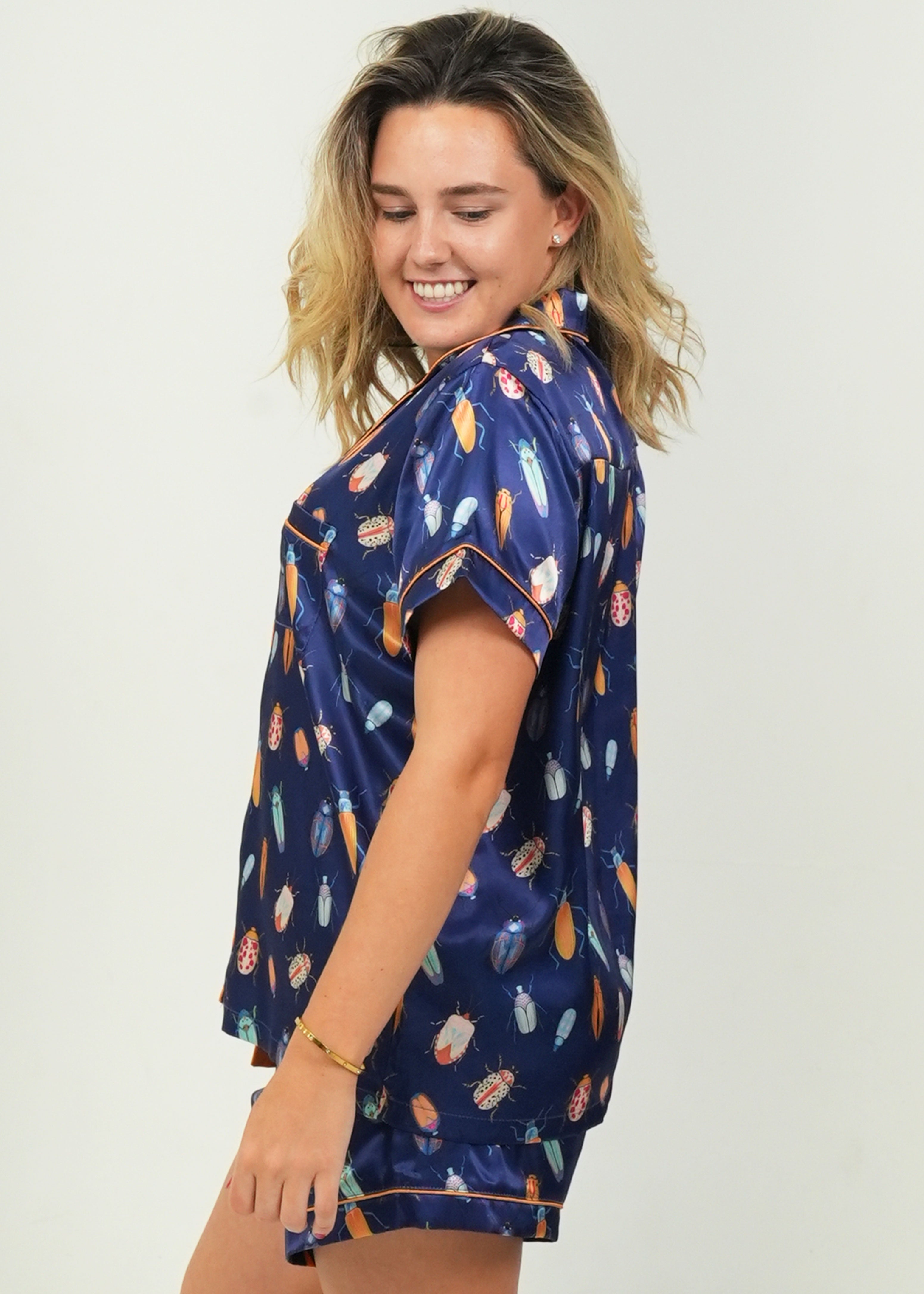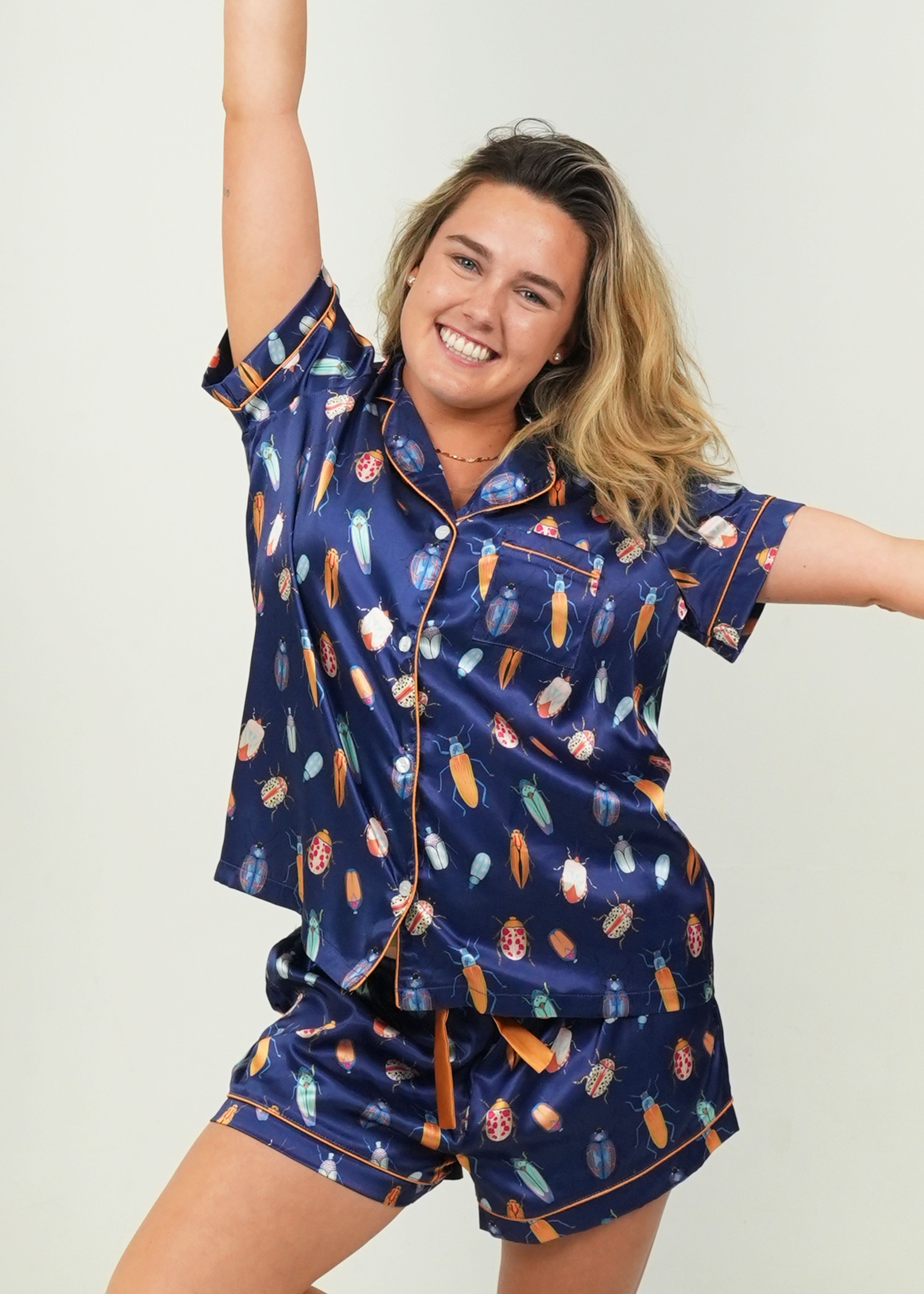 Add a touch of goodness to your bedtime with these gorgeous Beetles Navy Pyjamas. With deep pockets, adorable buttons, and an extra stretchy drawstring waistband for the ultimate comfort experience, you are sure to have the most tranquil sleep.
