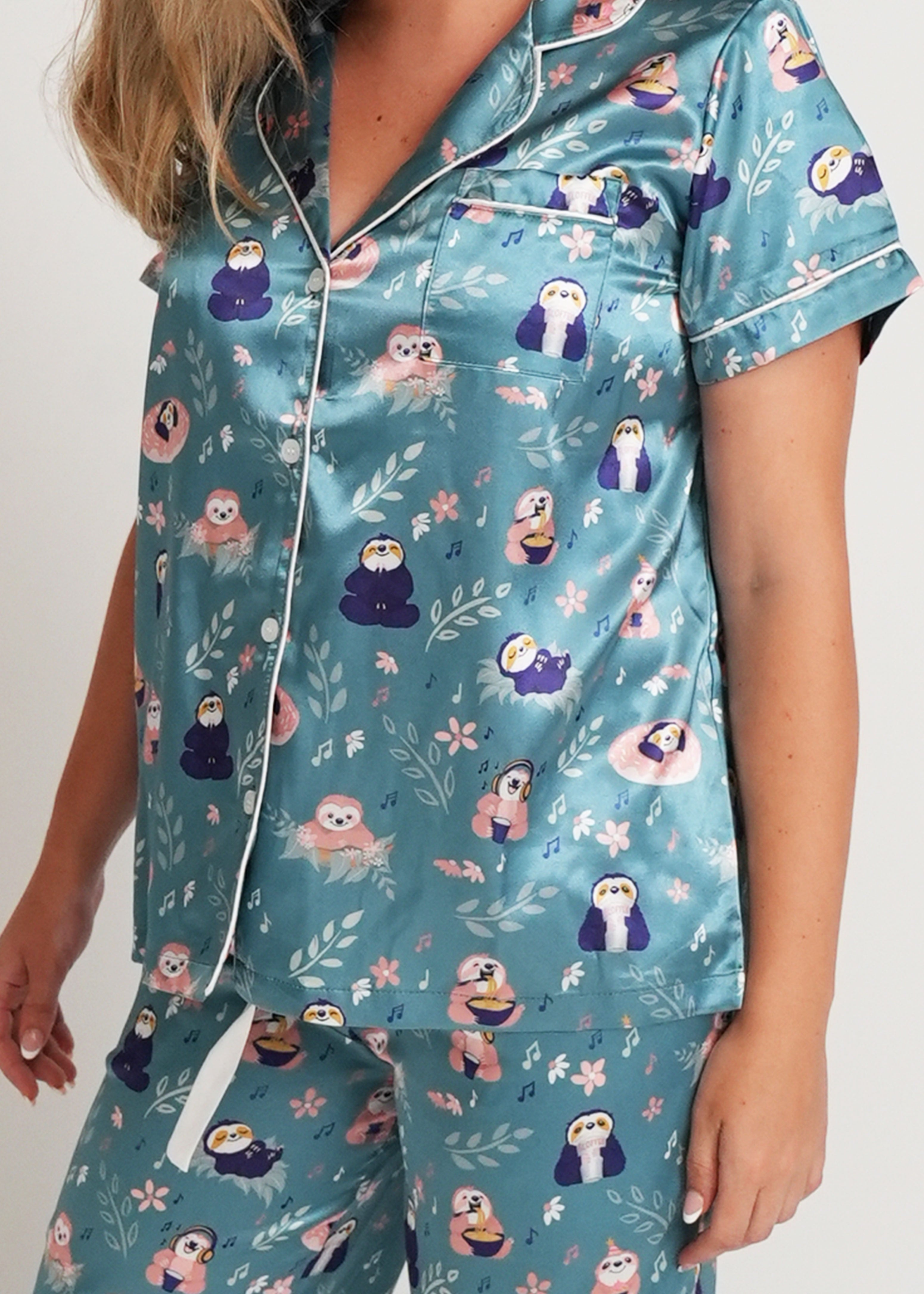Indulge yourself in our luxuriously silky and oh so buttery soft Slothee Pyjamas. Lovingly detailed with deep pockets, adorable buttons, and an extra stretchy drawstring waistband for the ultimate comfort experience.