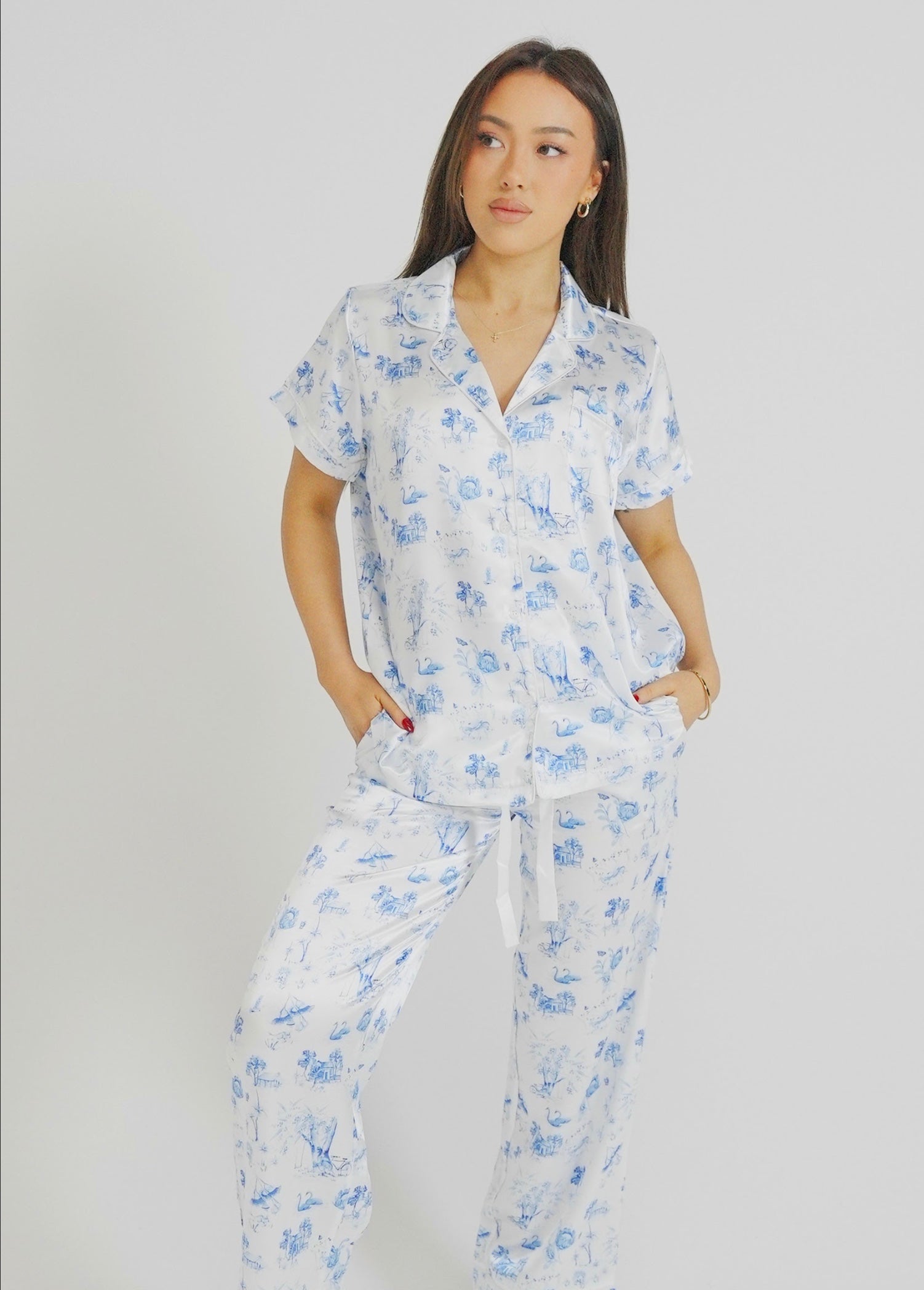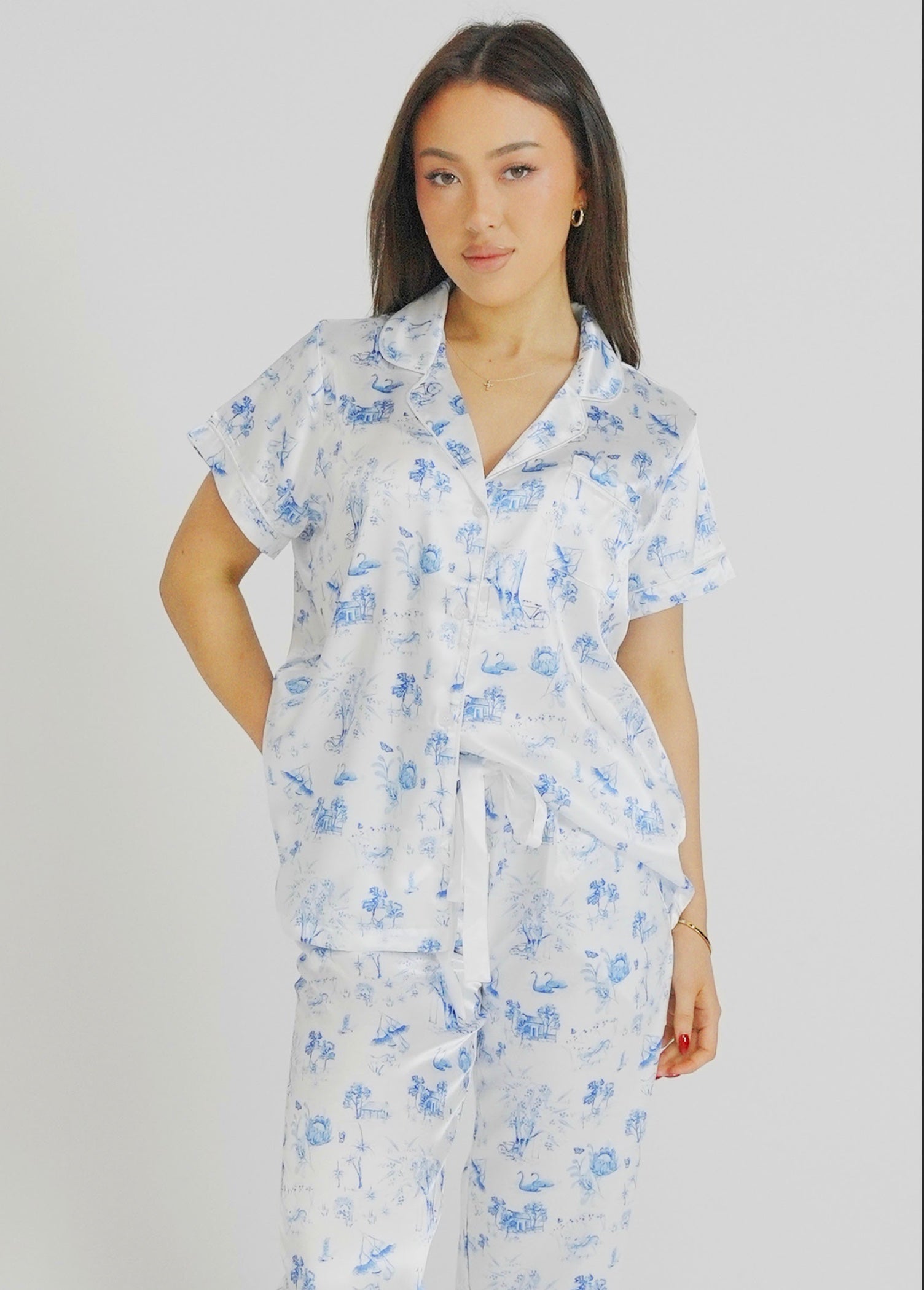Tune into those coastal vibes with our diving Coming Home Satin Pyjamas. Embellished with dainty watercolour treasures, embrace the subtlety of simple things. Crafted with deep pockets, a stretchy drawstring waistband, and light, breathable fabric, you are sure to have the most luxurious sleep.