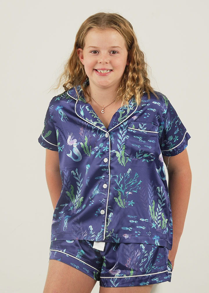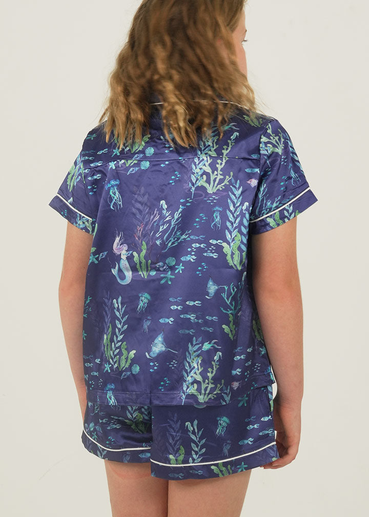 Be captivated by the magic of the underwater world with our Deep Sea Satin Pyjamas. Lovingly detailed with deep pockets, adorable buttons, and an extra stretchy drawstring waistband for the ultimate comfort experience.