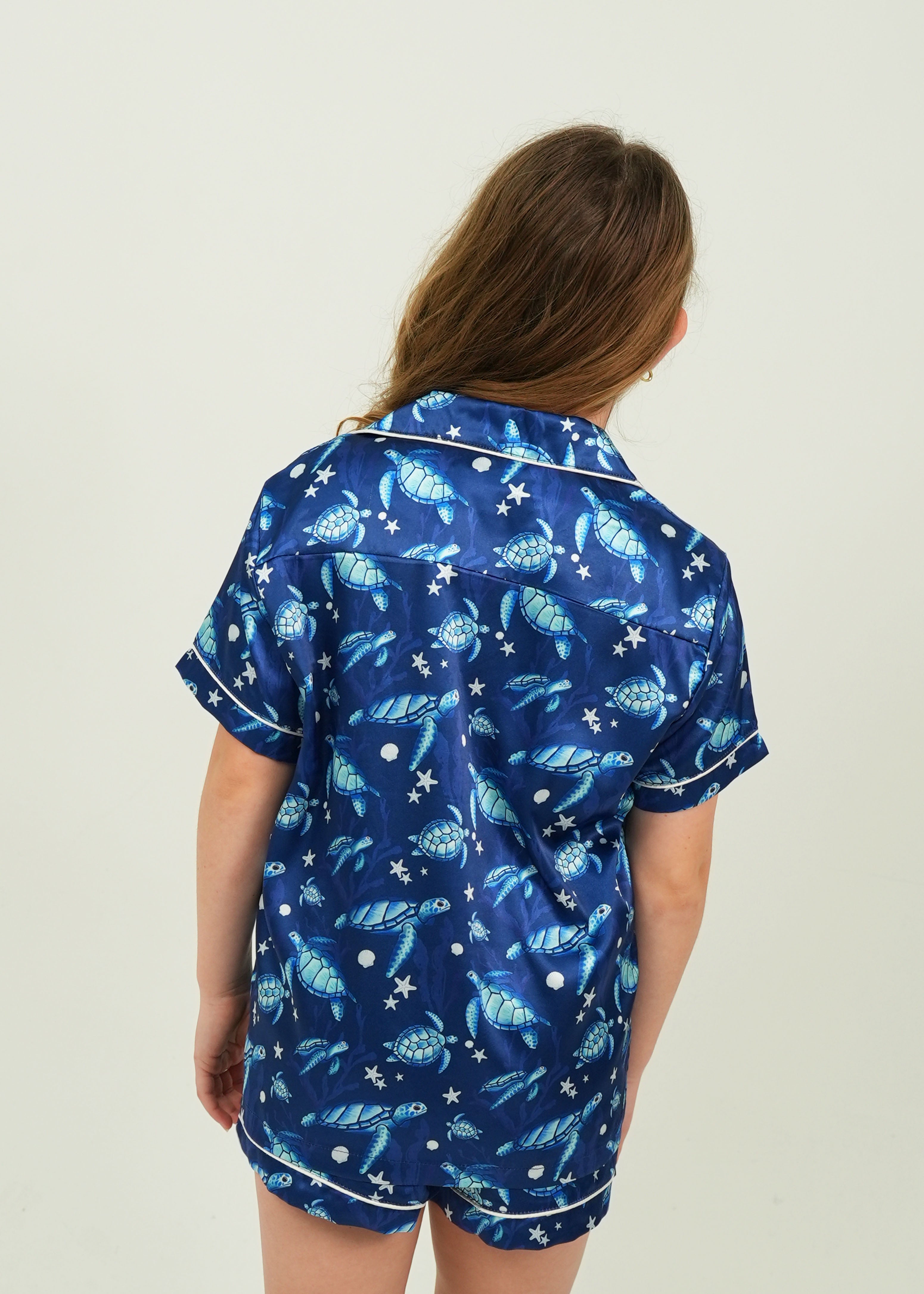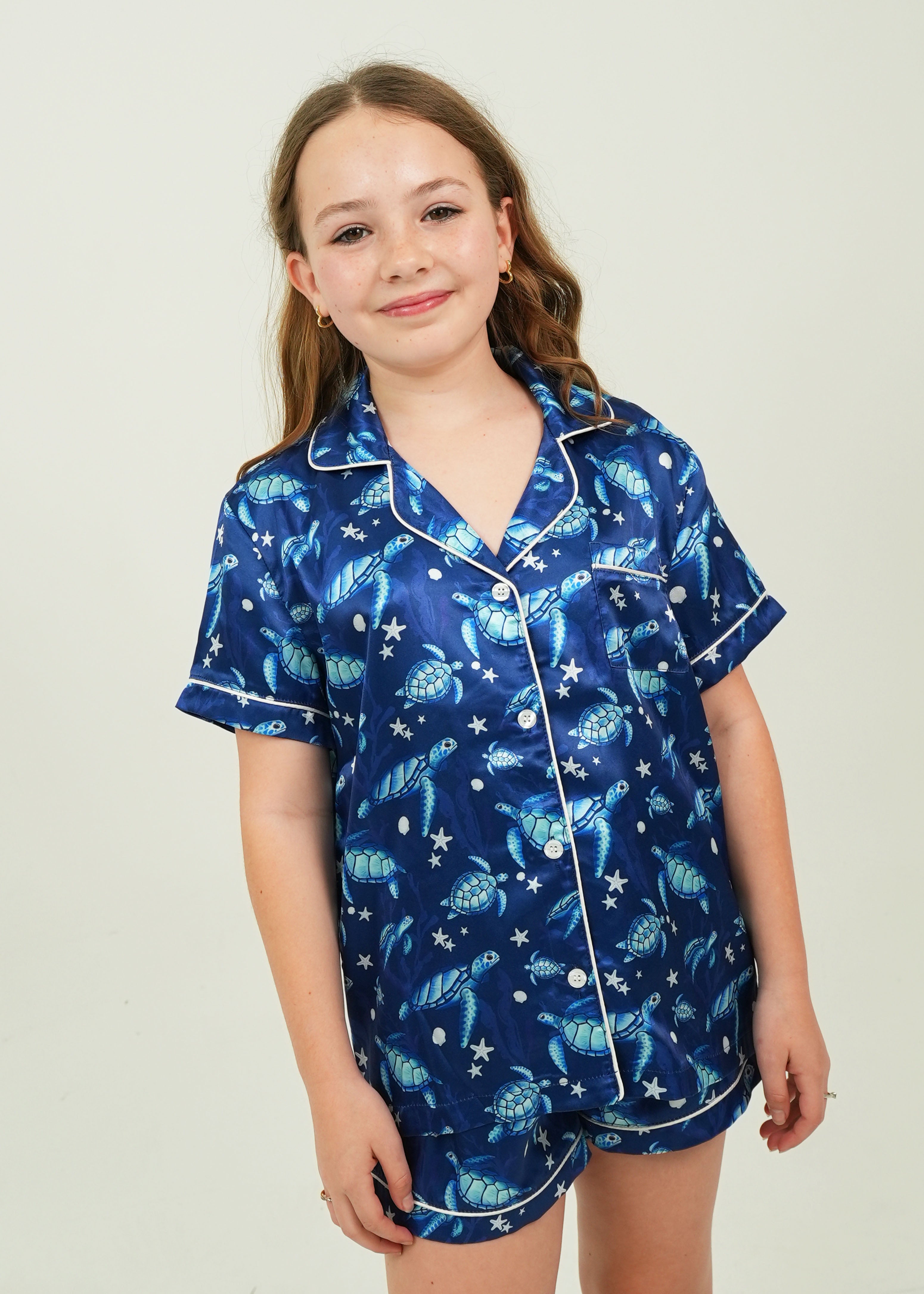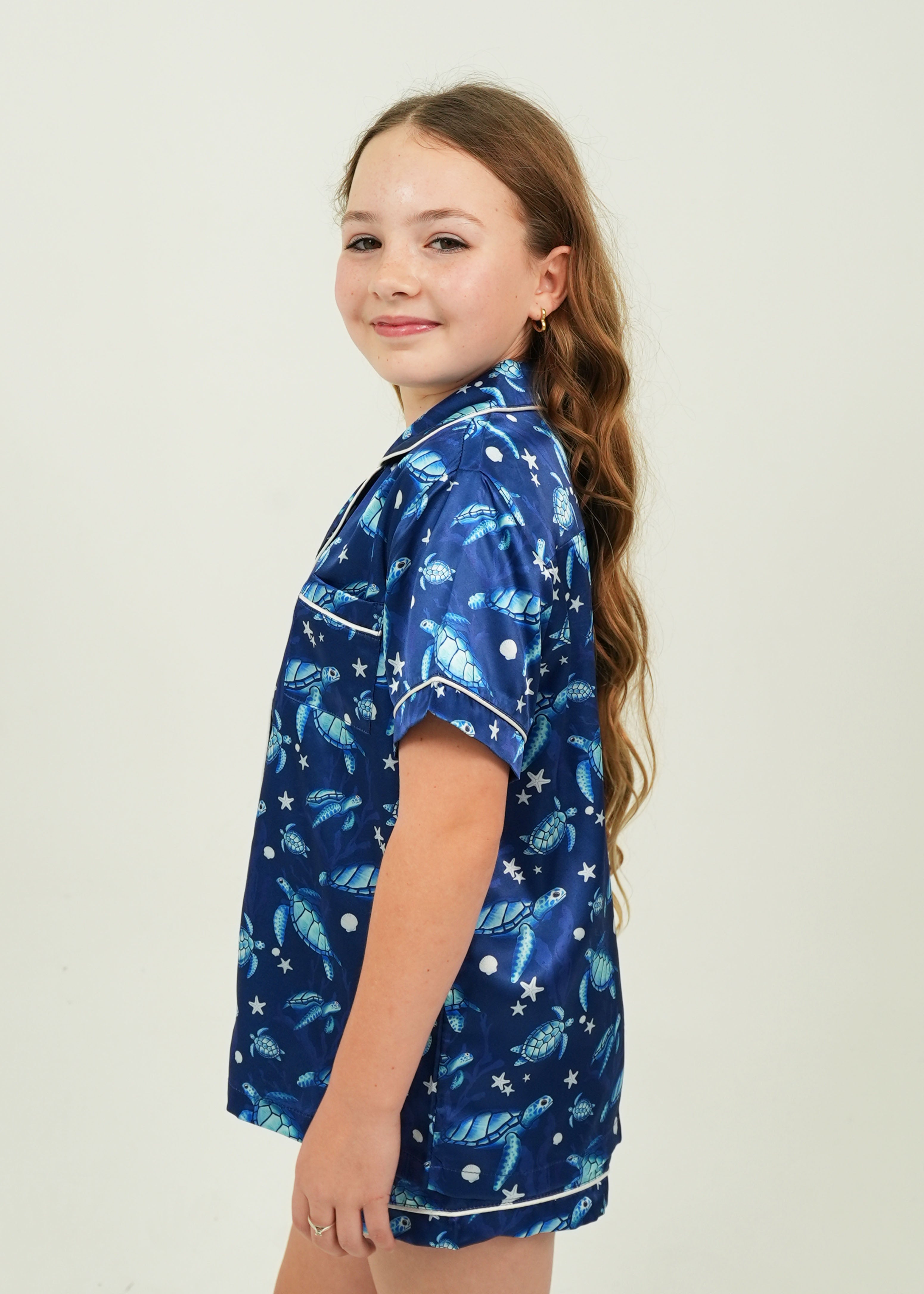Embrace your inner tropical queen with these gorgeous Find the Current Navy Satin Pyjamas. With adorable buttons, and an extra stretchy drawstring waistband for the ultimate comfort experience, you are sure to have the most tranquil sleep.