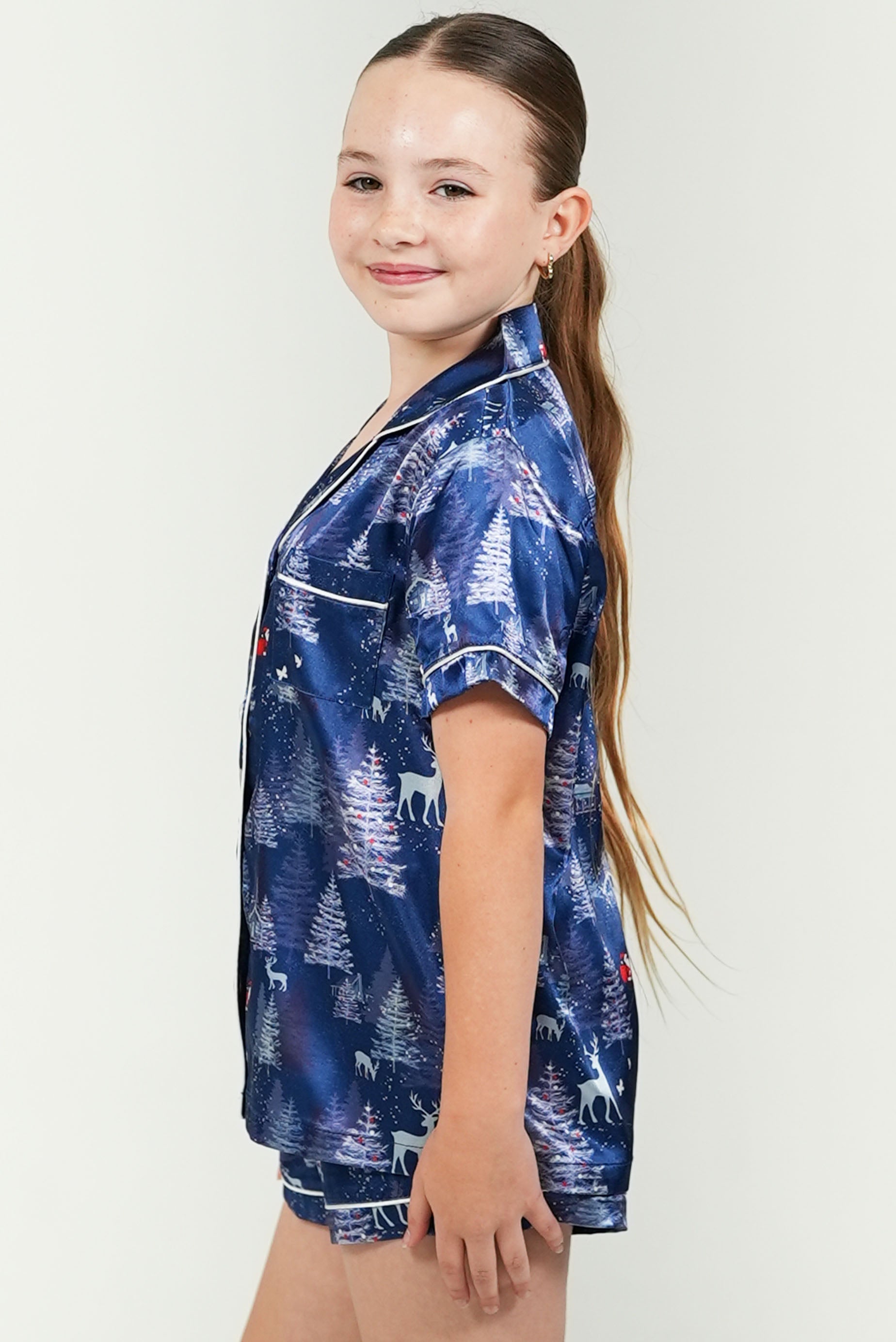 Girls Snowy Night Christmas Satin Short Pyjama Set