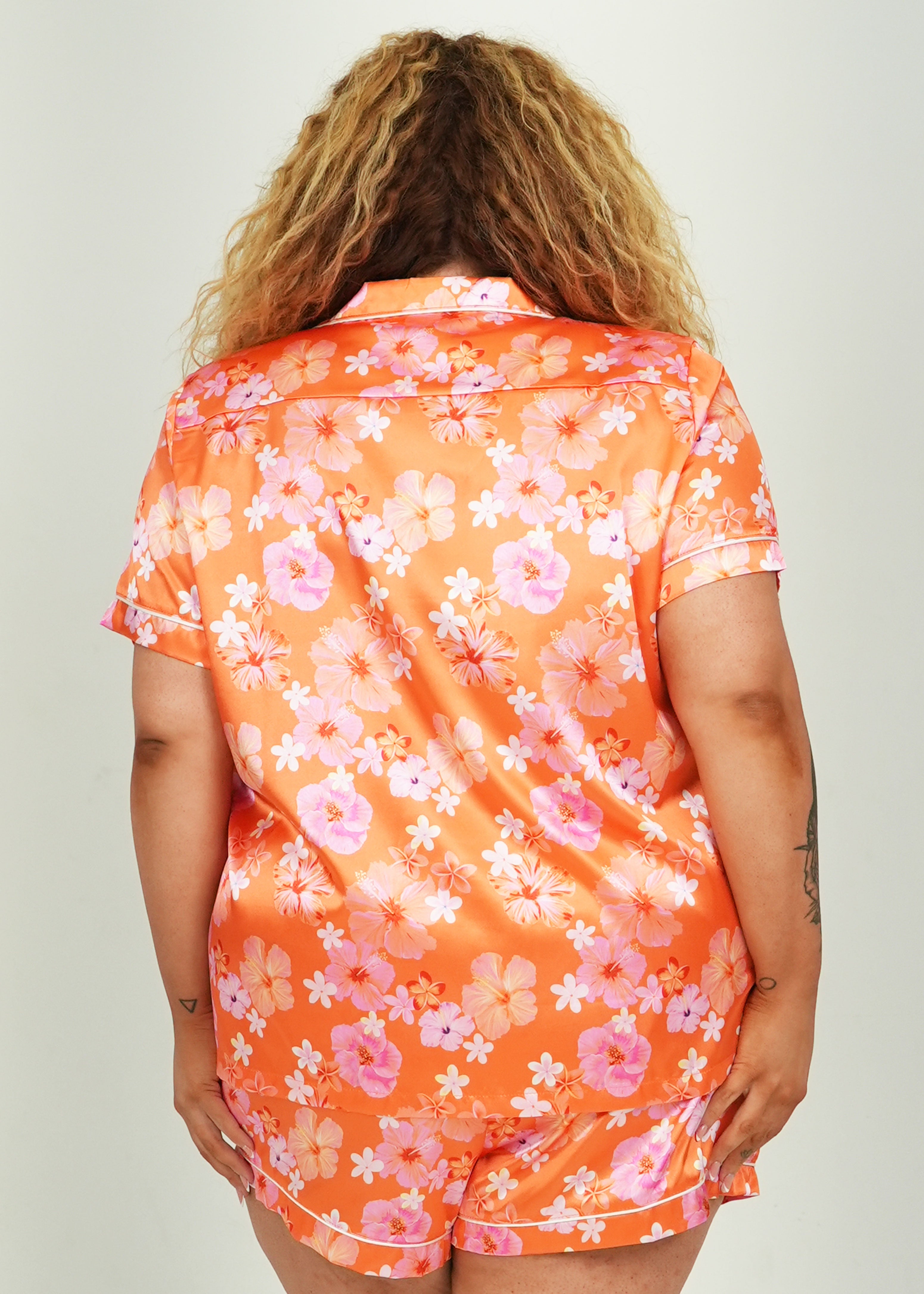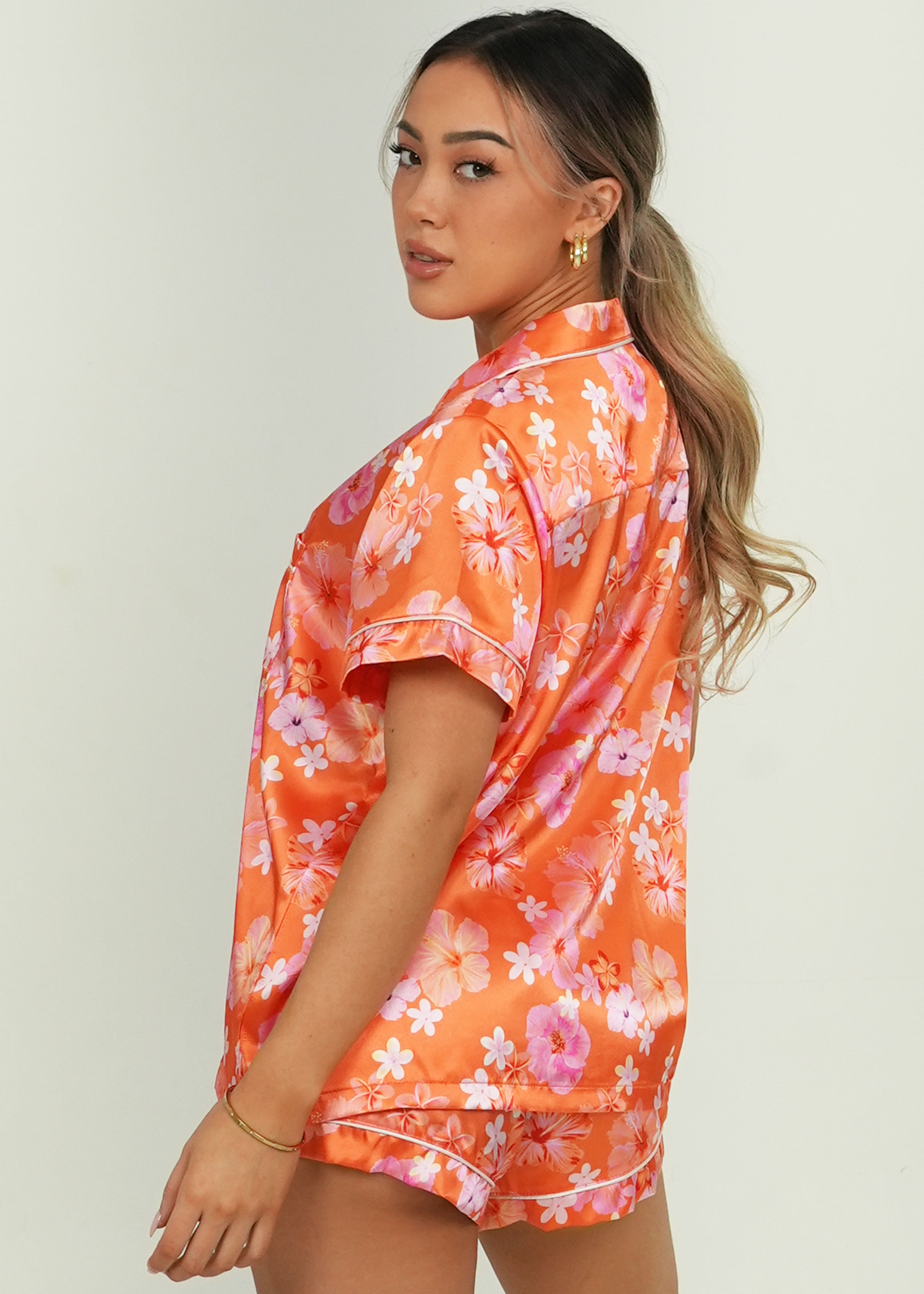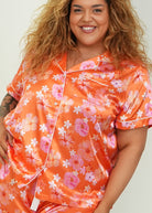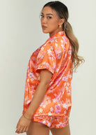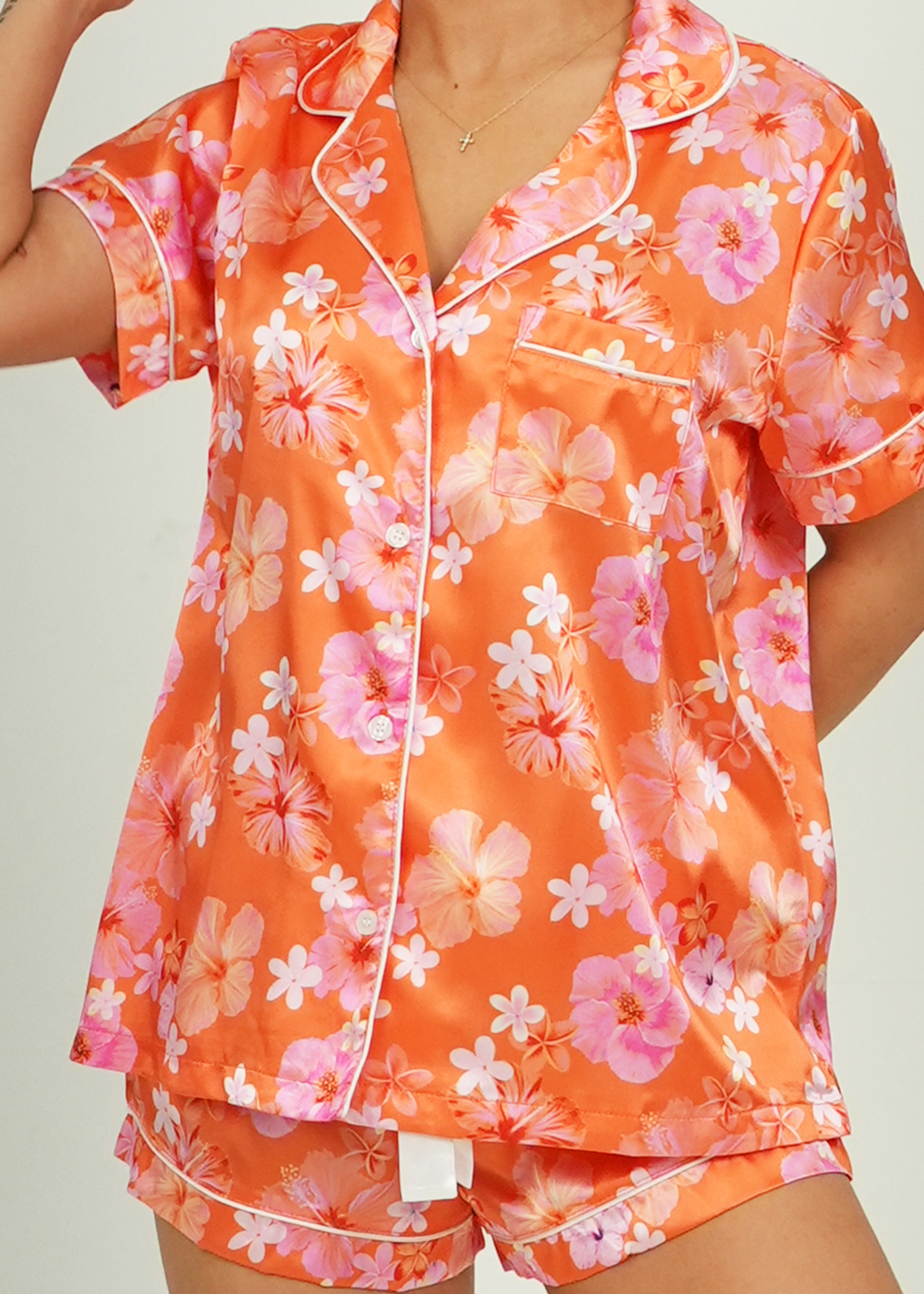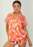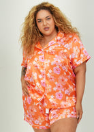 Hawaiian Daze - Orange Short Satin PJ Set