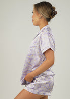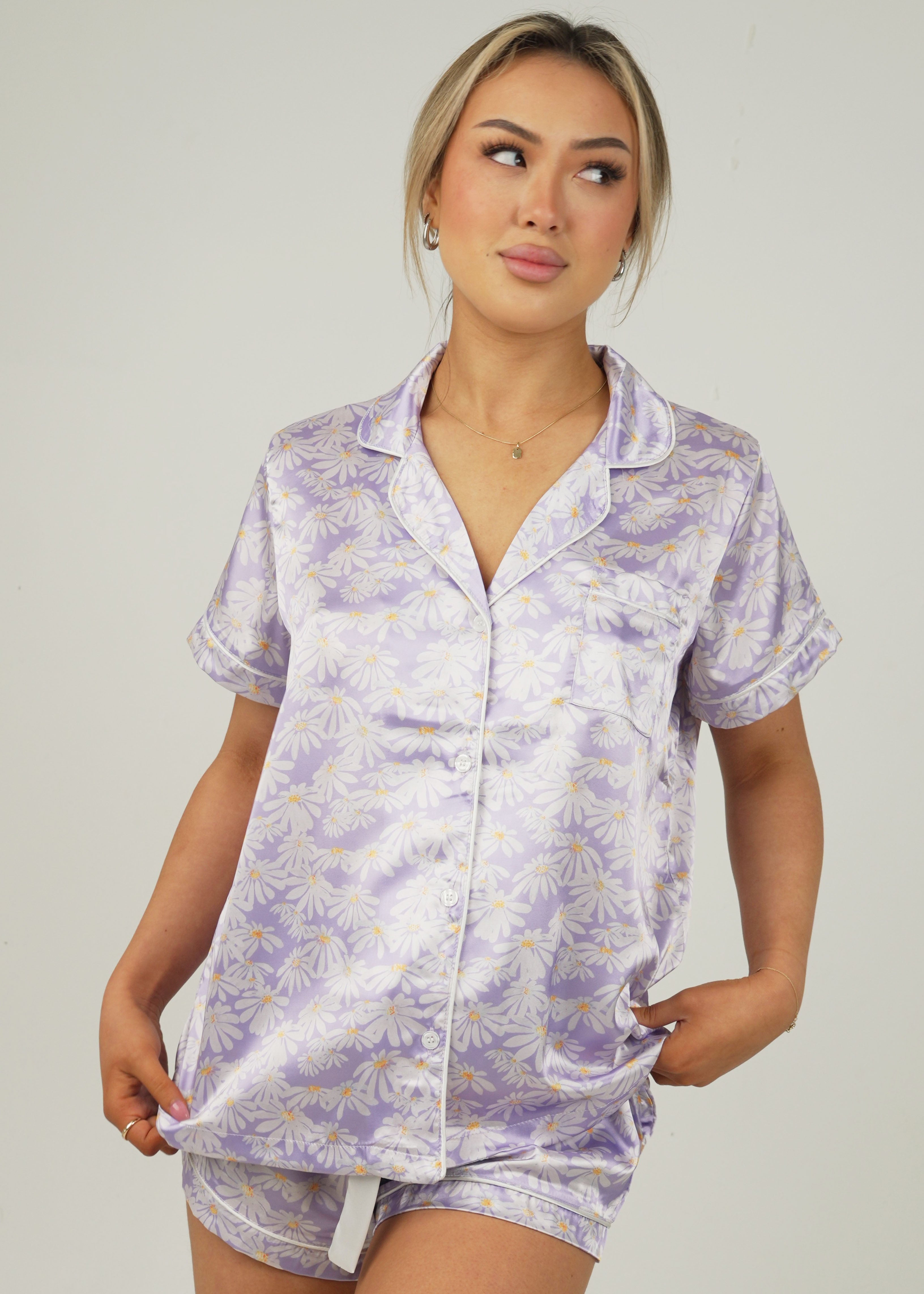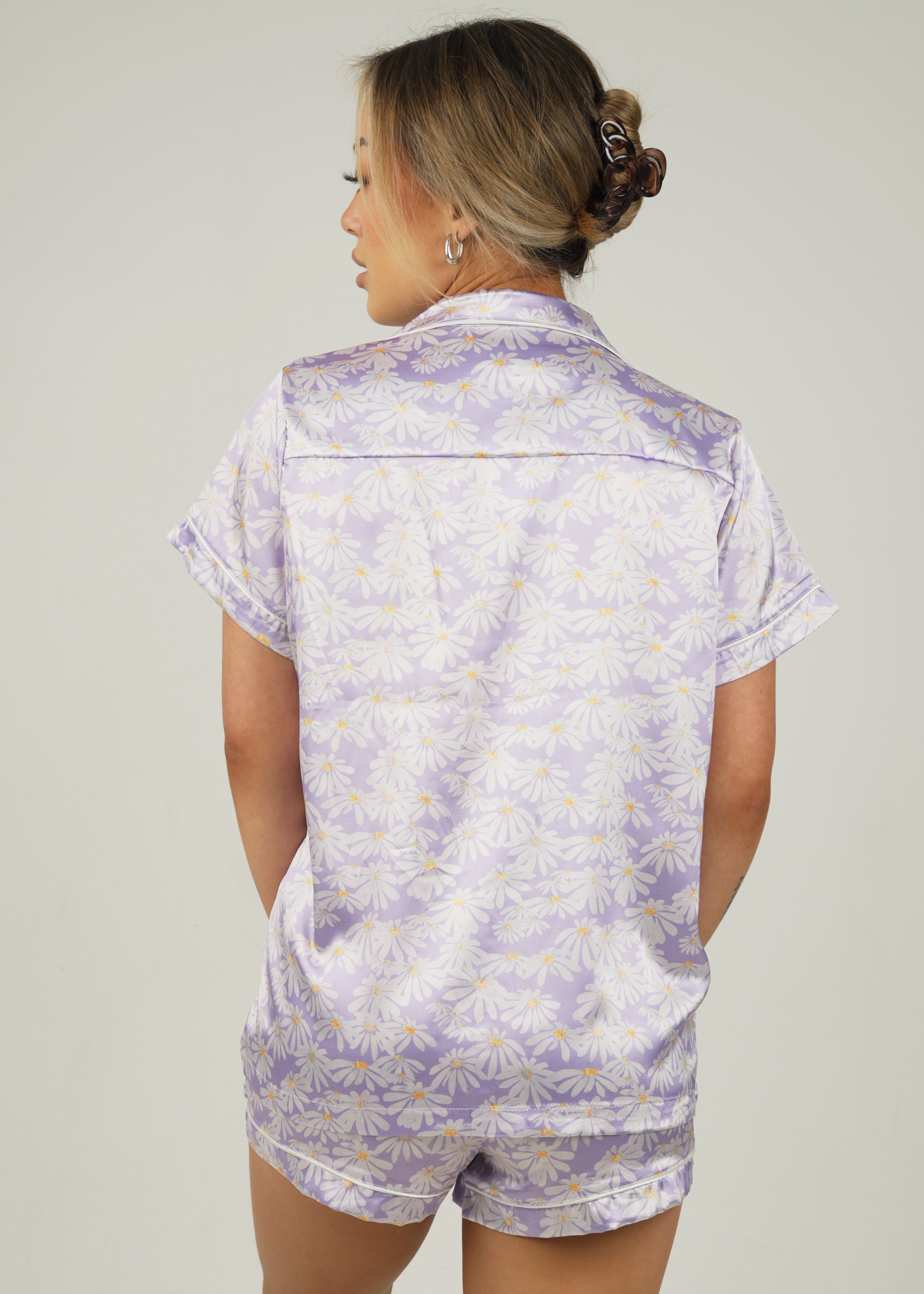 Frolic through the fields of endless daisies in our Purple Daisy Satin Pyjamas. With deep pockets, adorable buttons, and an extra stretchy drawstring waistband for the ultimate comfort experience, you are sure to have the most luxurious sleep.