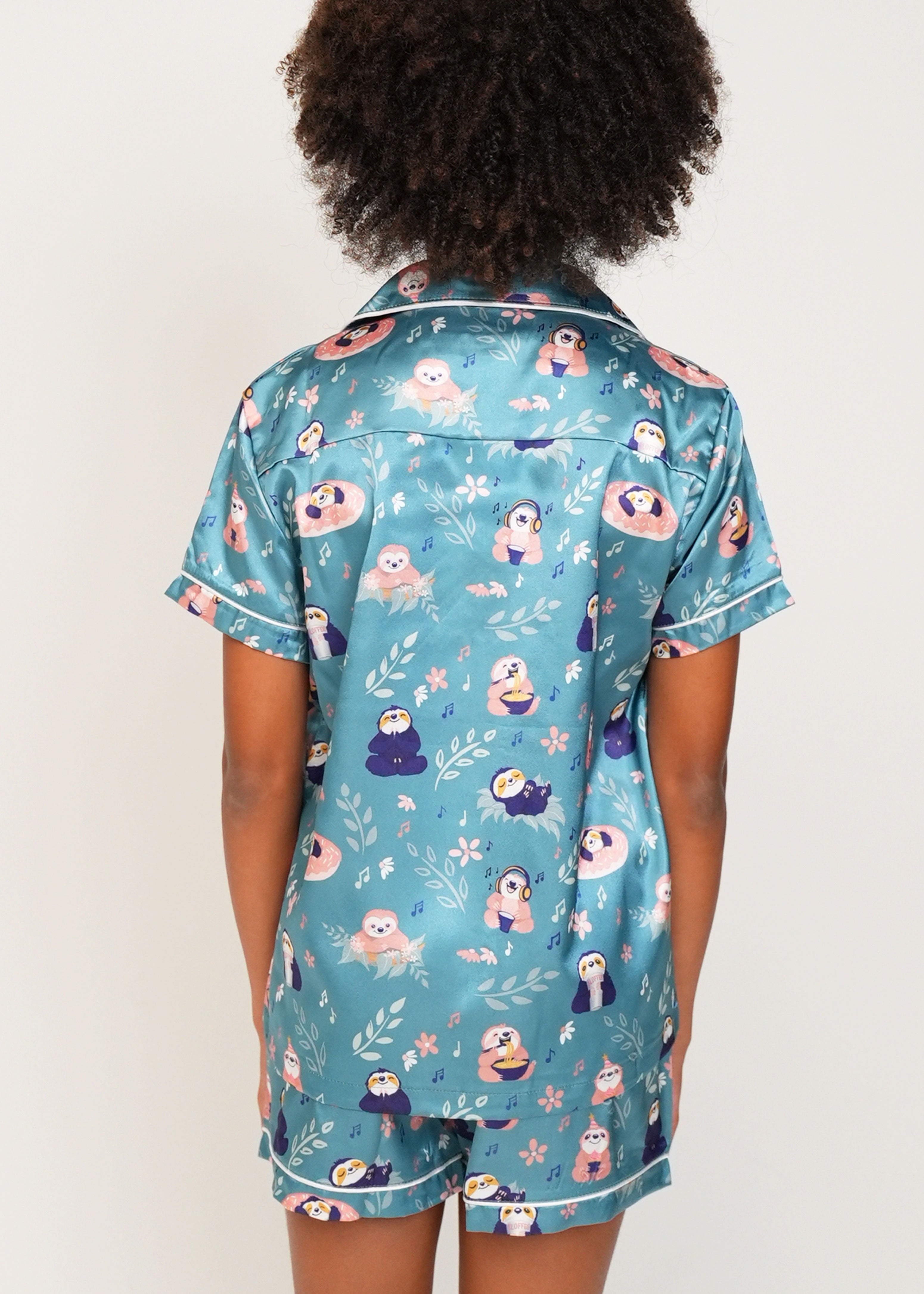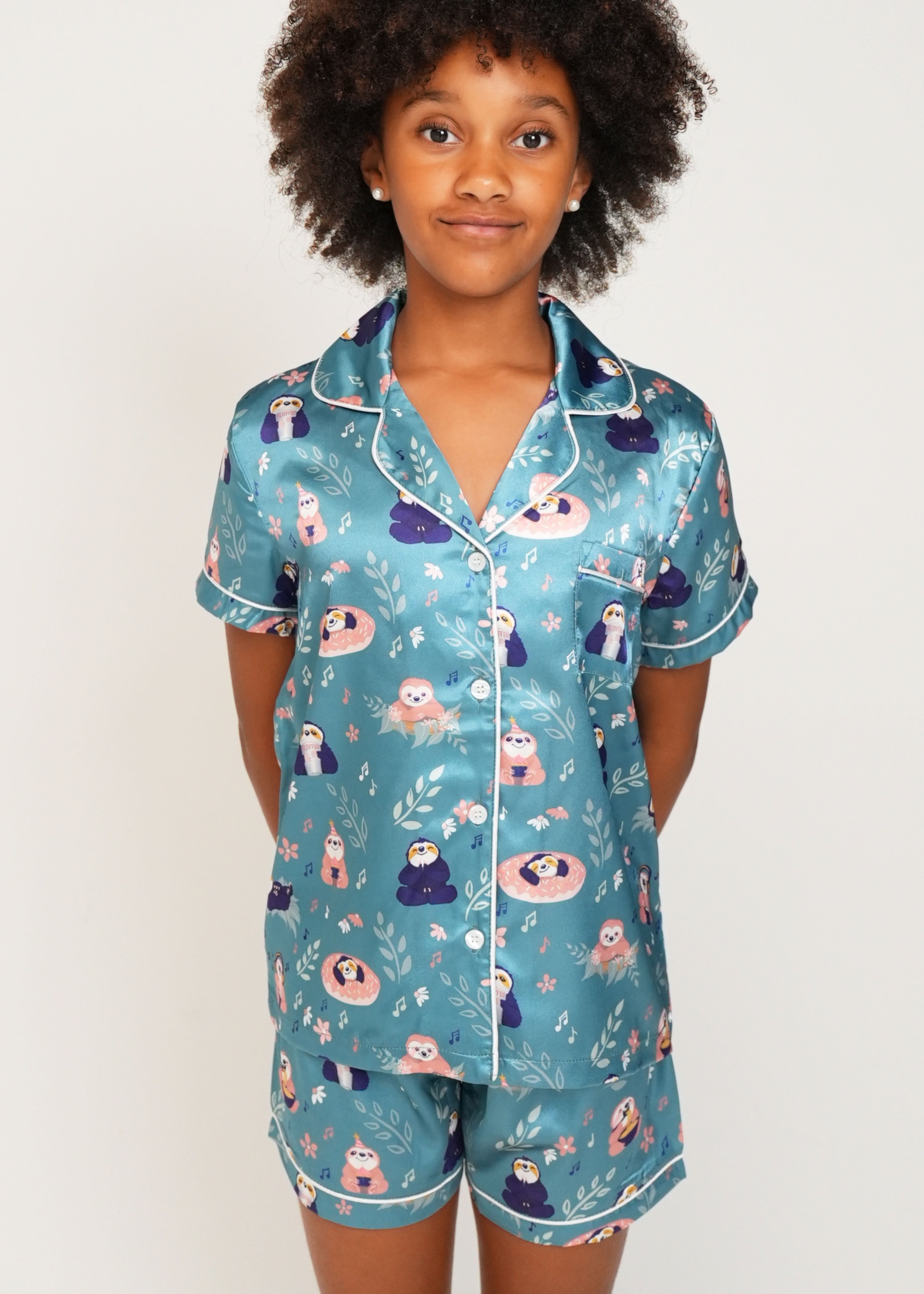 Relax and embrace your inner contentment with these gorgeous Slothee Satin Pyjamas. With deep pockets, adorable buttons, and an extra stretchy drawstring waistband for the ultimate comfort experience, you are sure to have the most tranquil sleep.