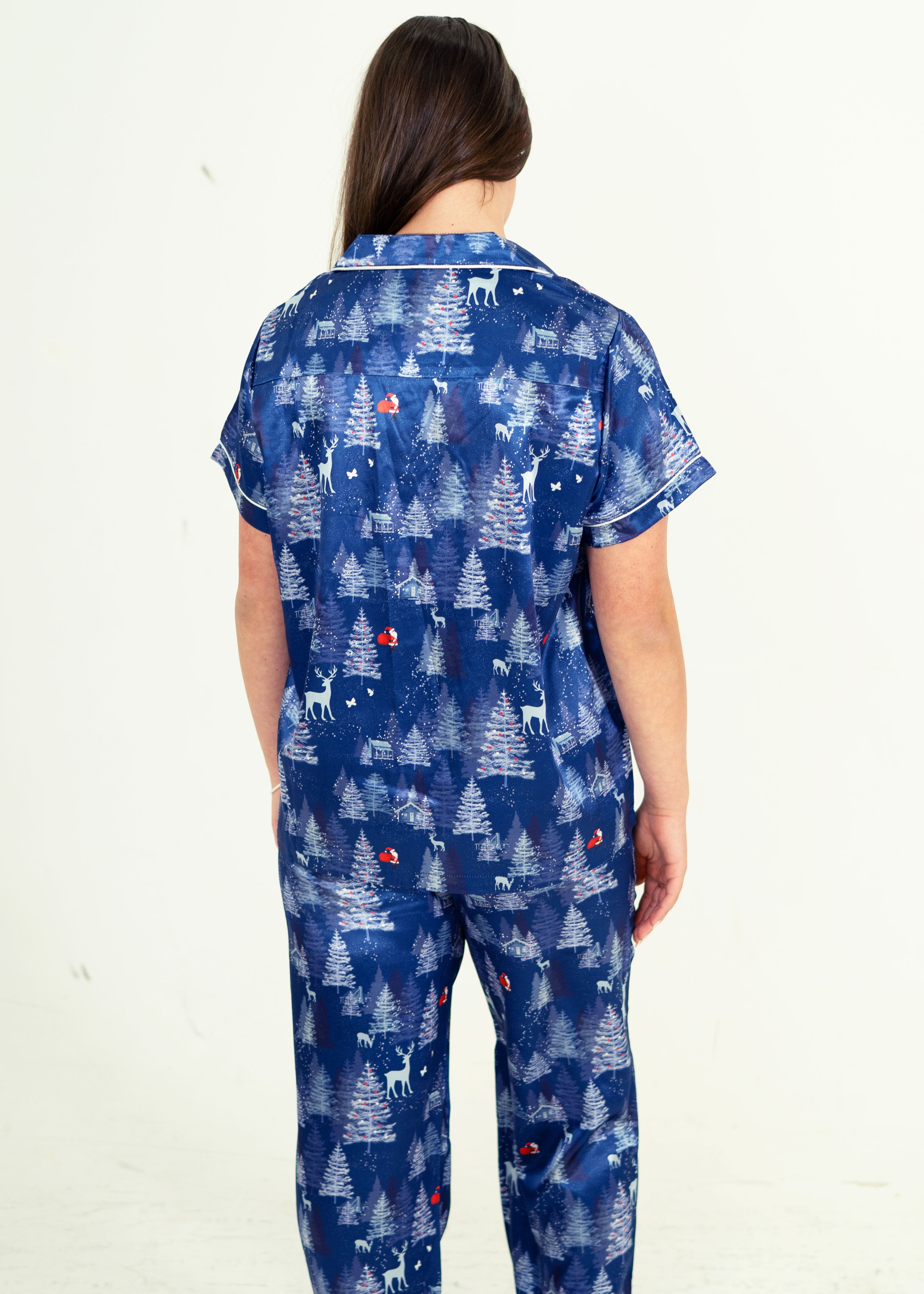 Snowy Night Satin Short Top/ Long Pants Pyjama Set