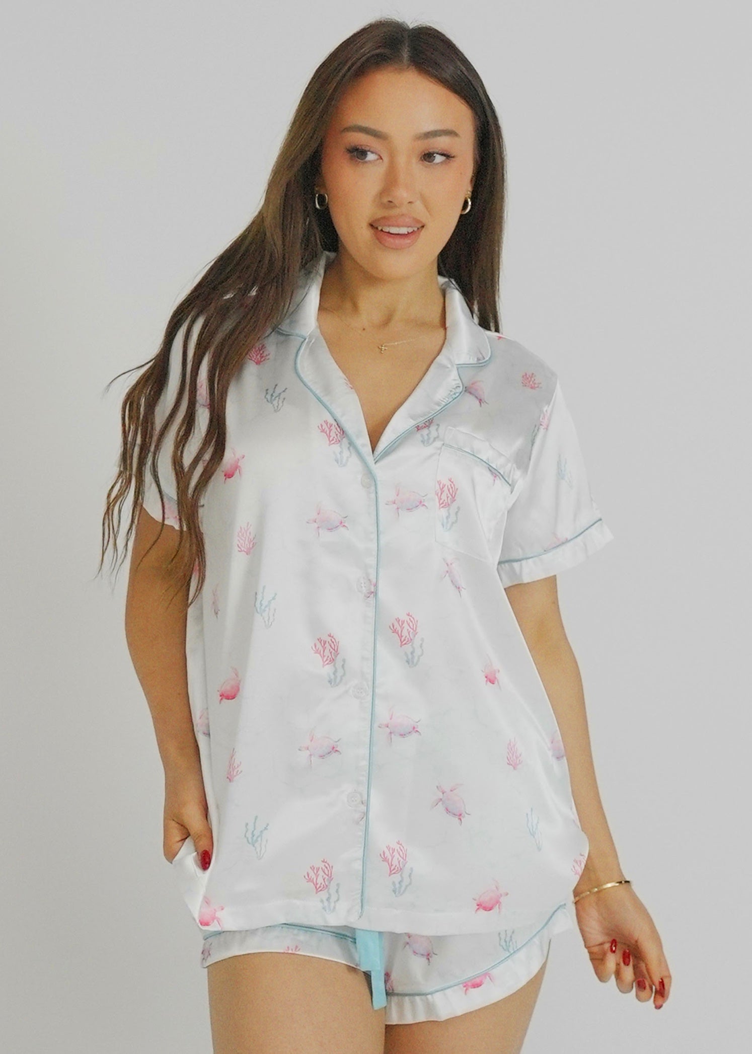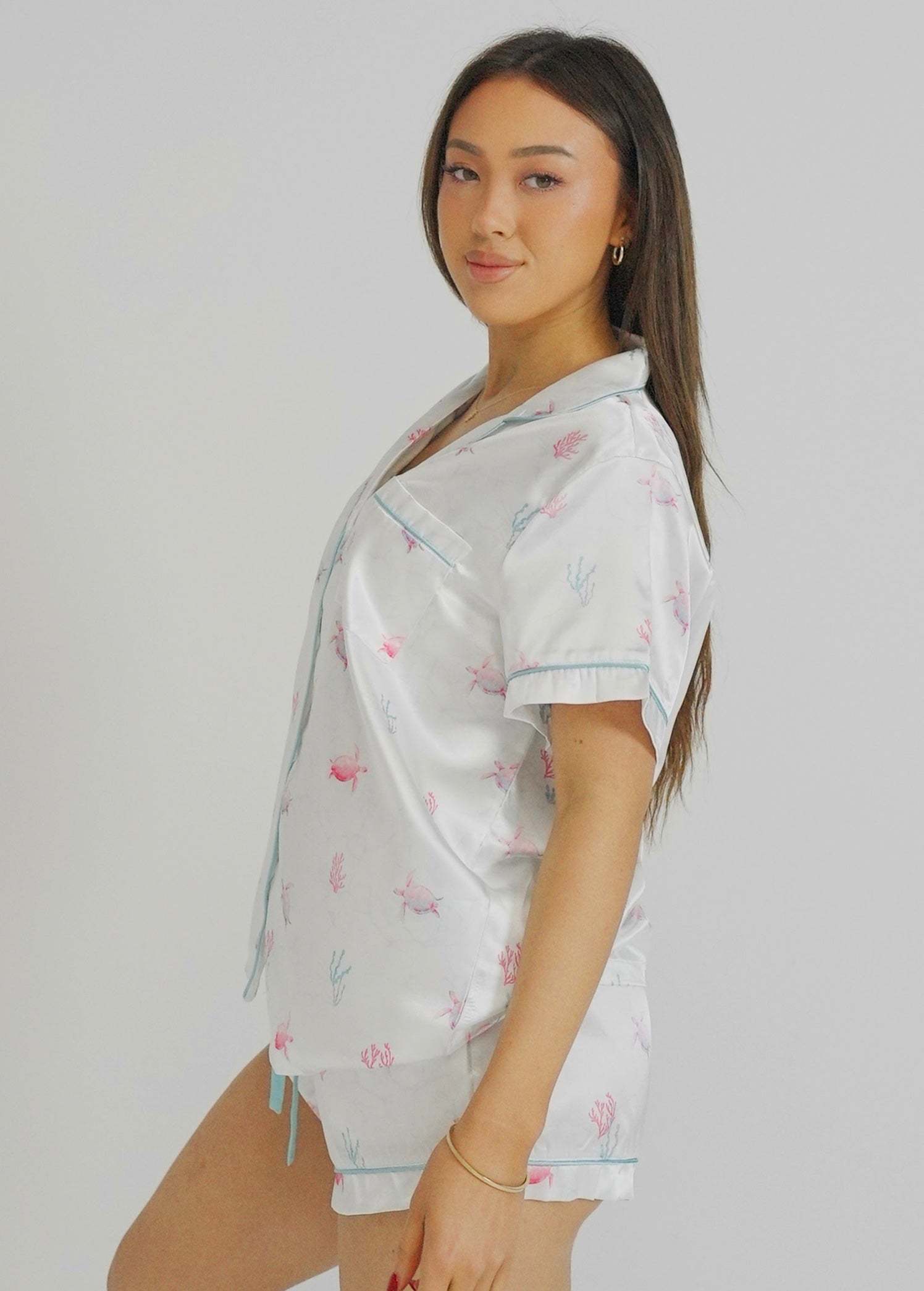 Add a touch of adventure to your bedtime with these gorgeous White Turtle Pjs. With deep pockets, adorable buttons, and an extra stretchy drawstring waistband for the ultimate comfort experience, you are sure to have the most tranquil sleep.