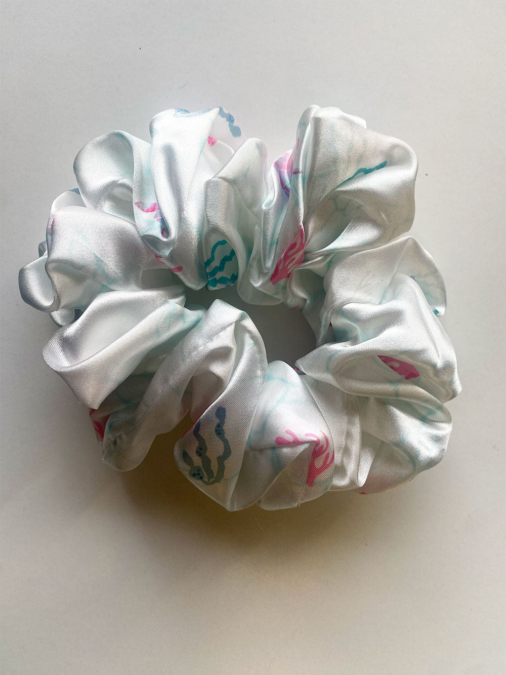 White Turtles Swim Satin Scrunchie